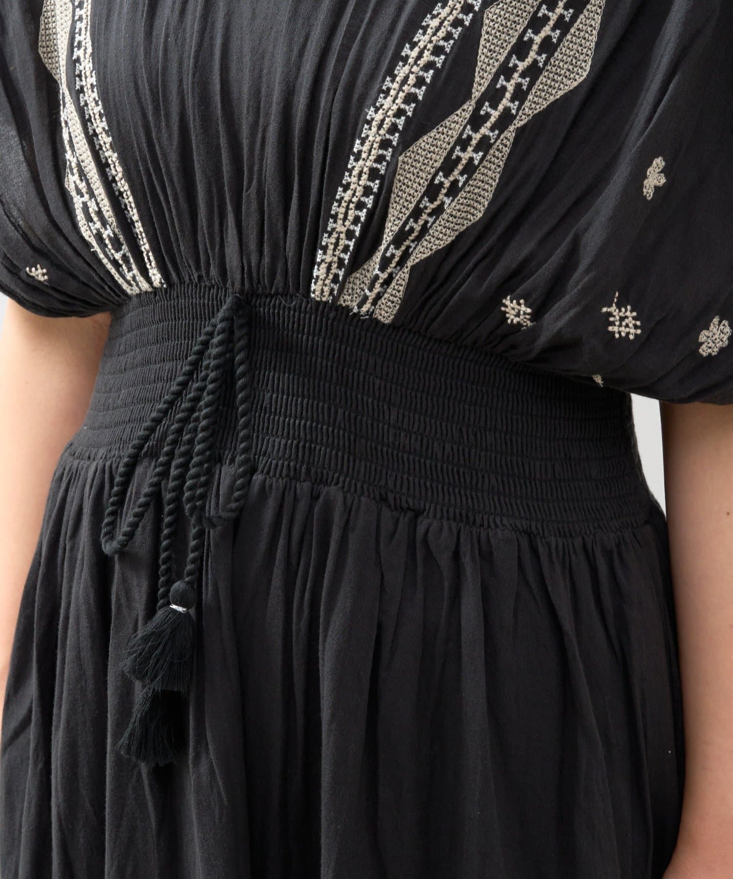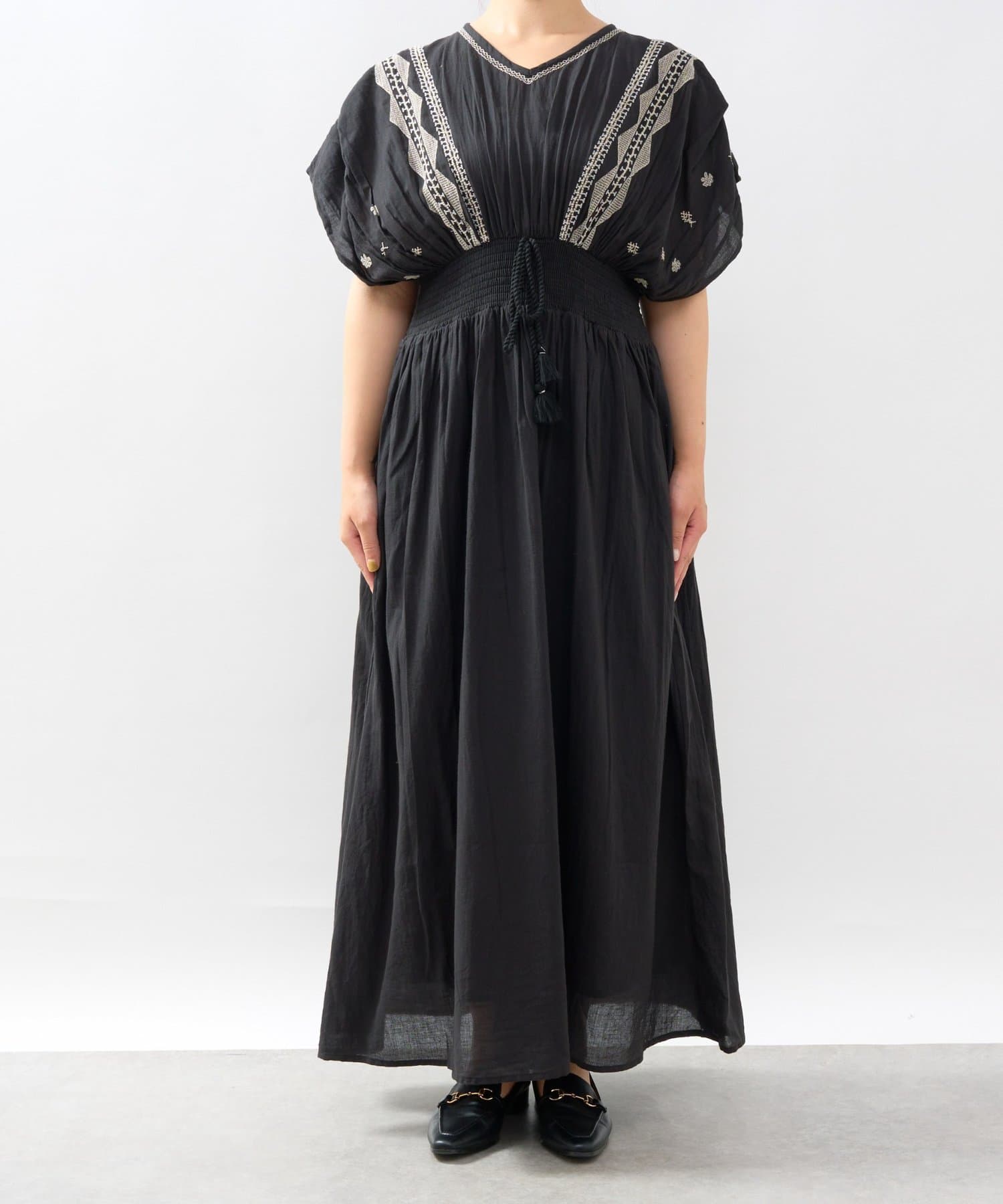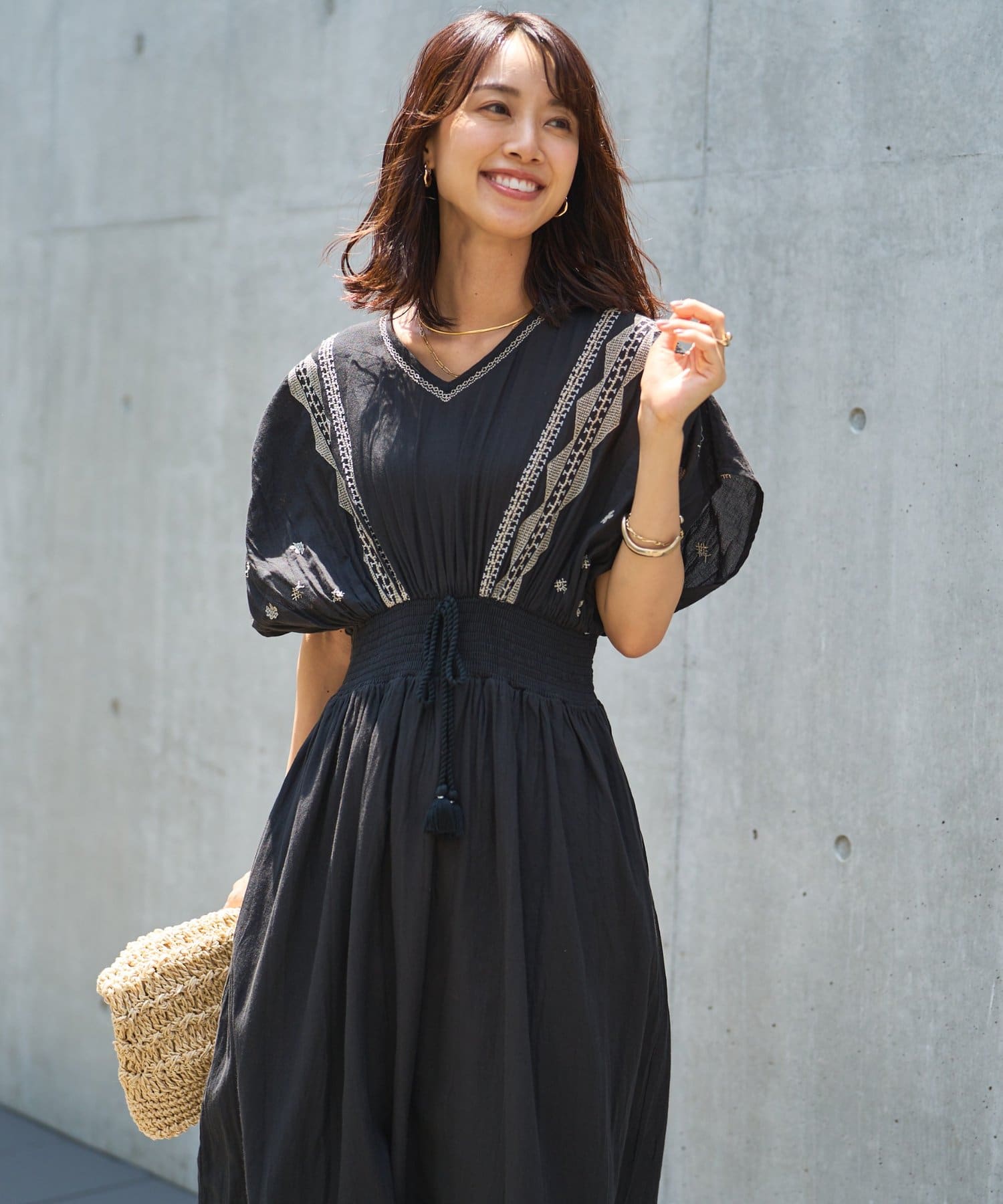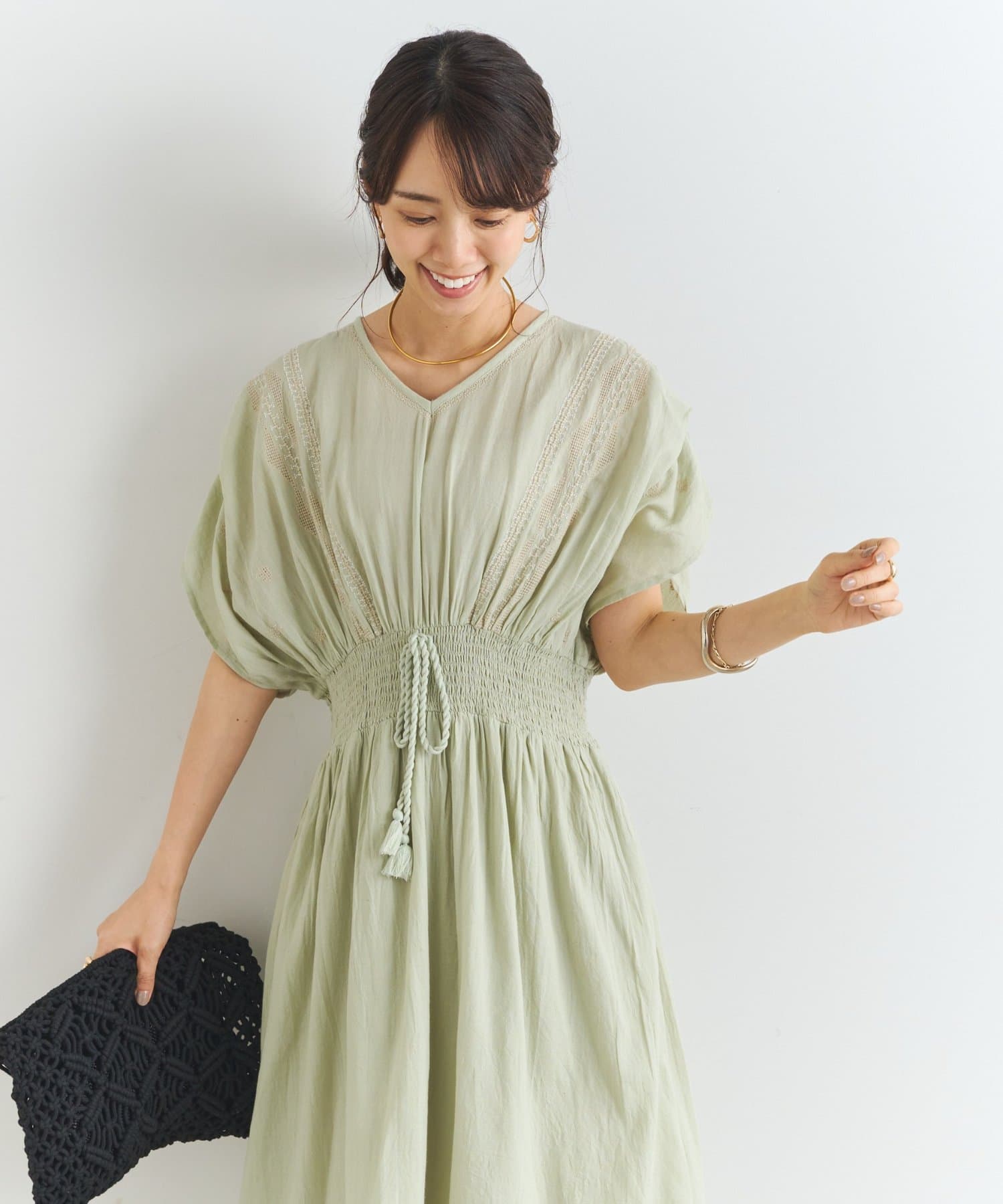 《綿100%・一枚で着映え》刺繍ウエストシャーリングワンピース