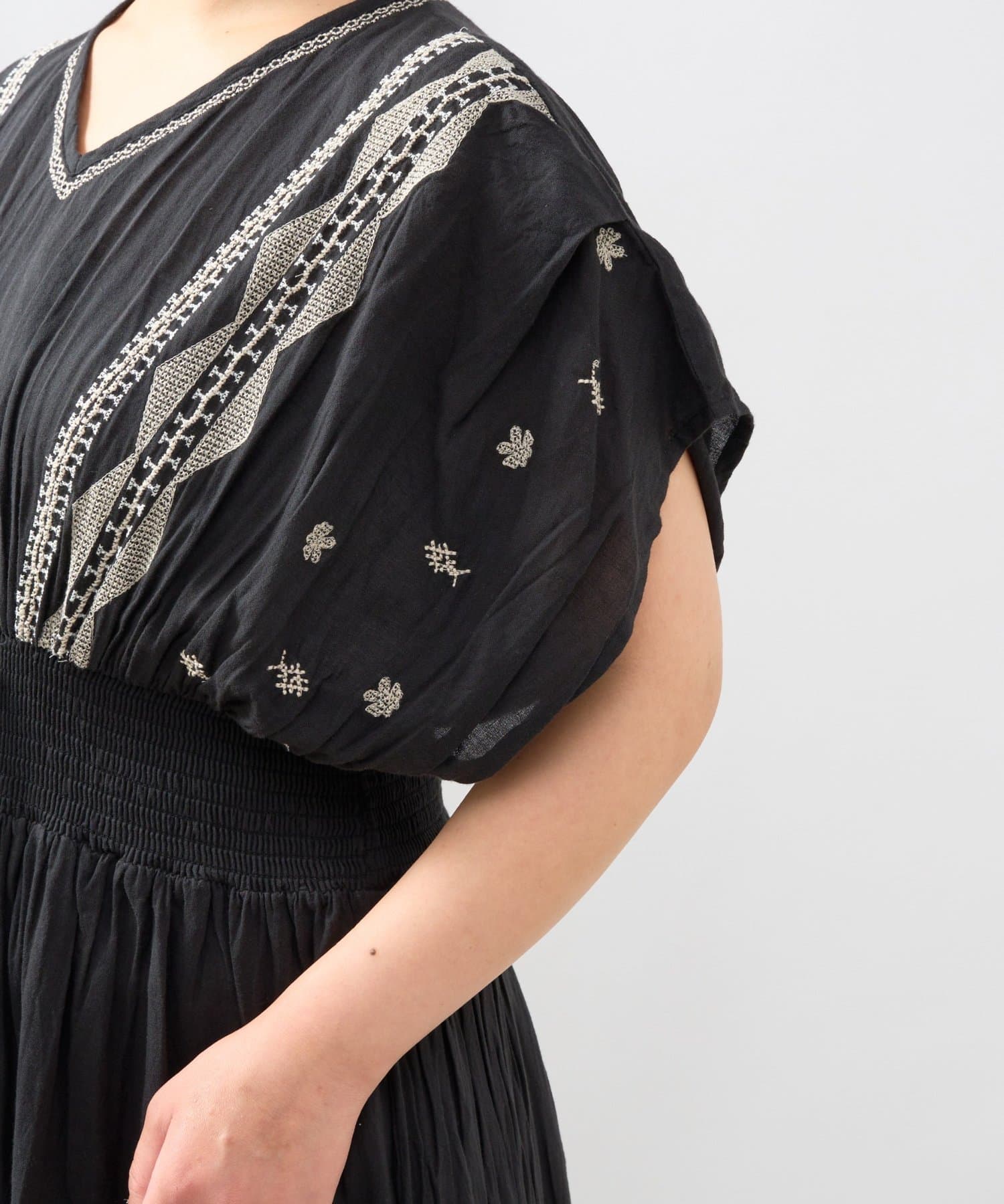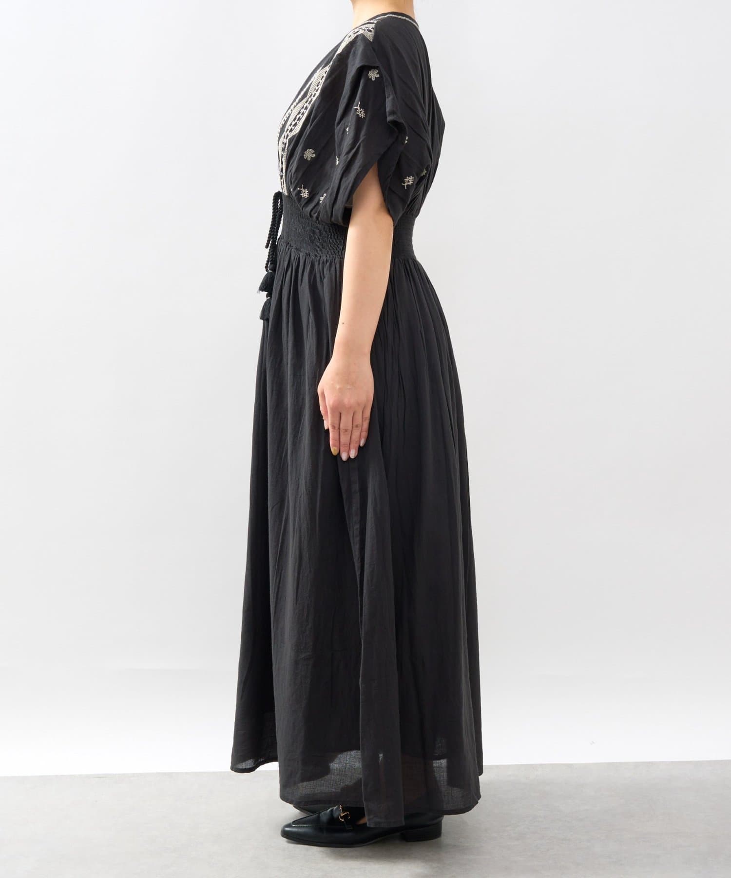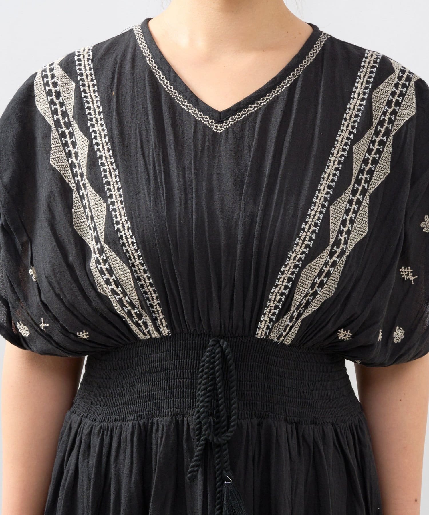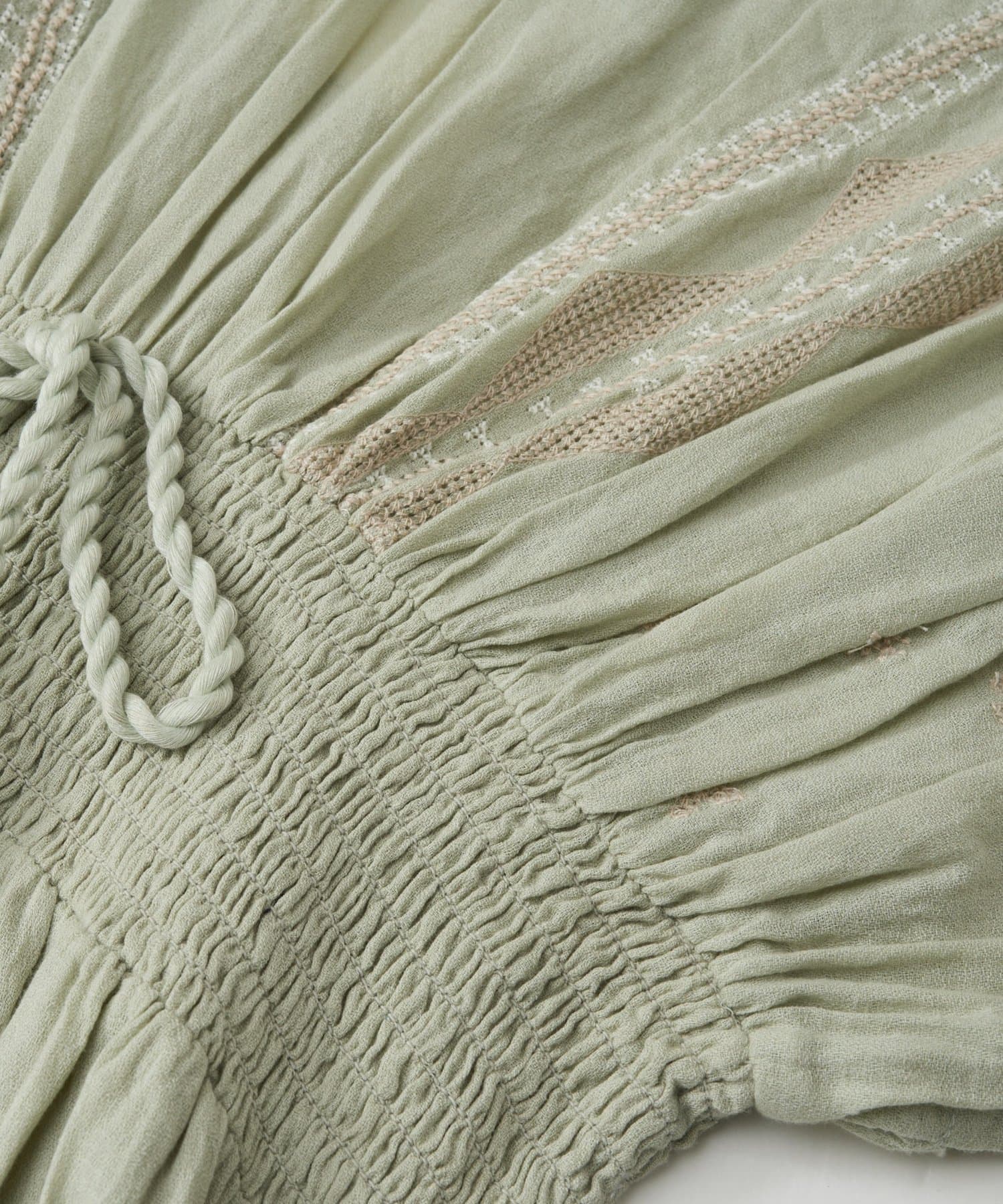 《綿100%・一枚で着映え》刺繍ウエストシャーリングワンピース