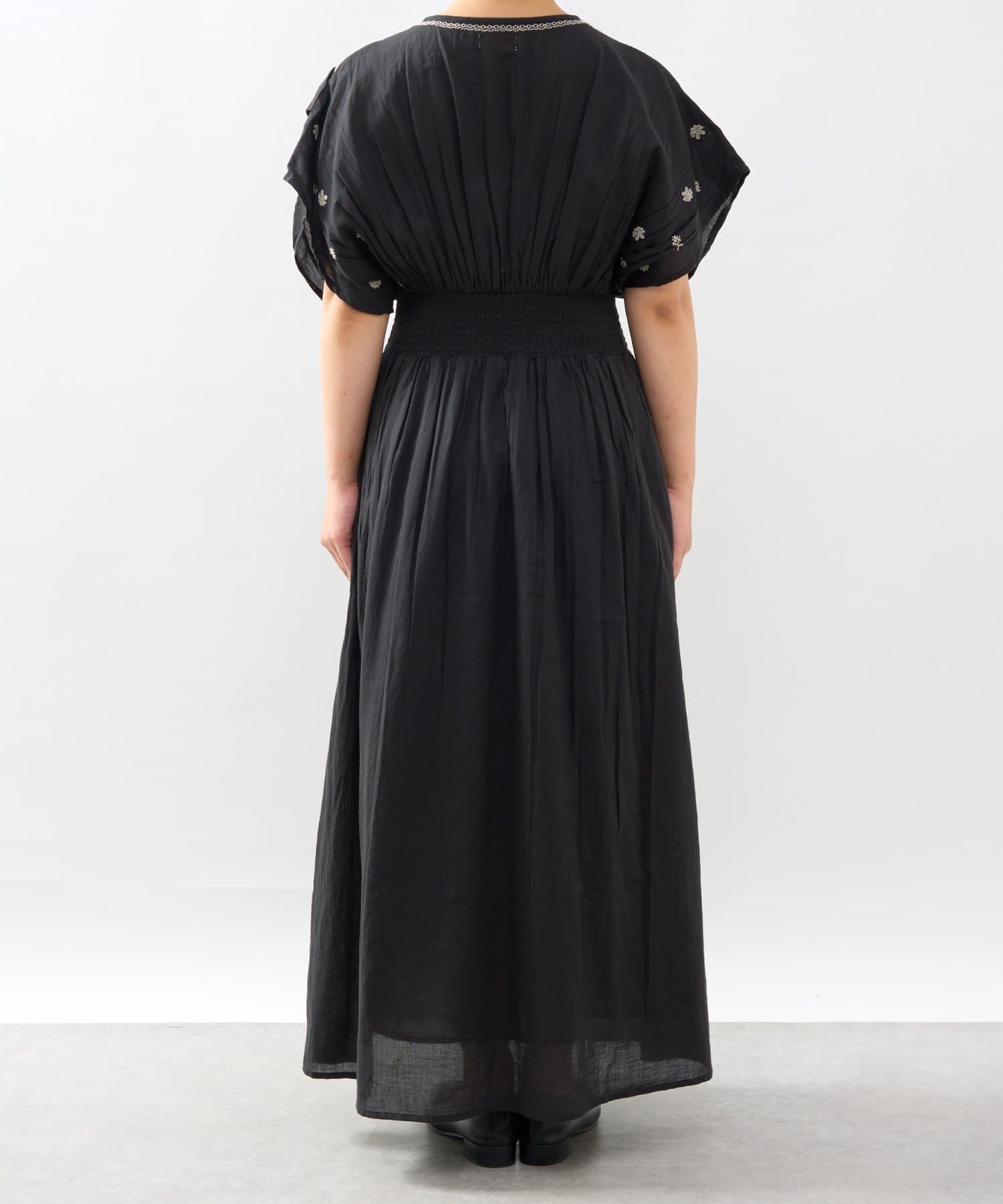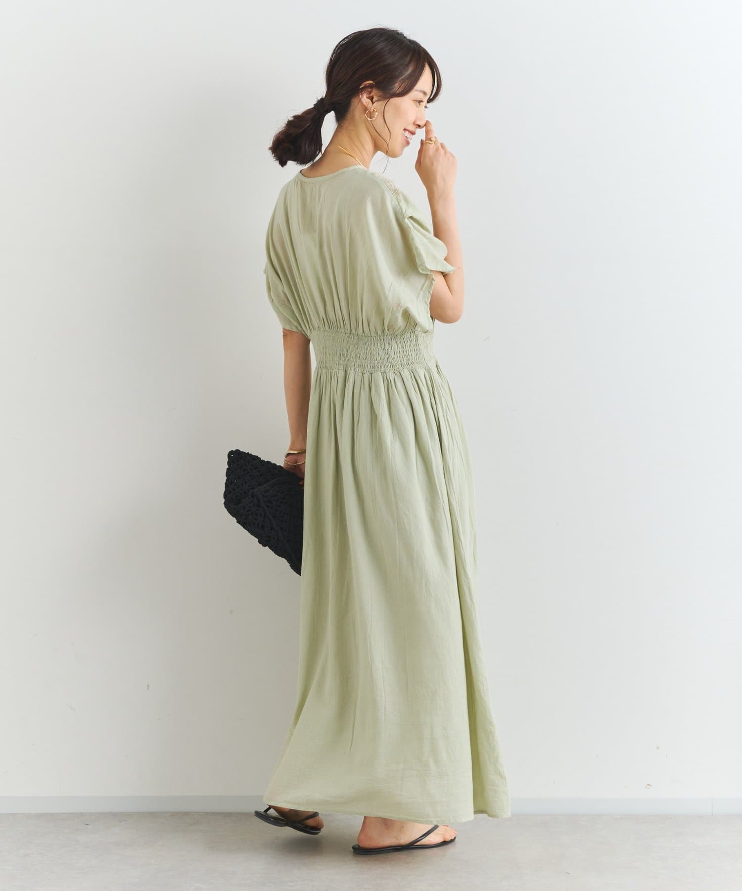 スカート部分も袖もふわりとフレアーに広がりのあるシルエットですのでボディーラインを程よくカバーします◎