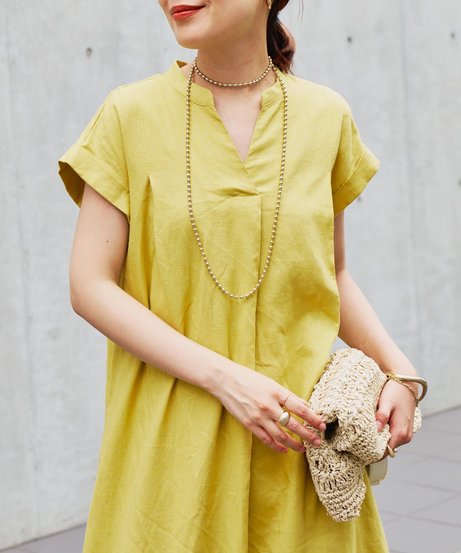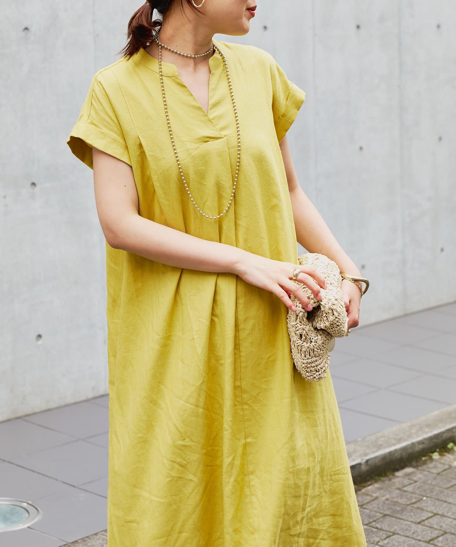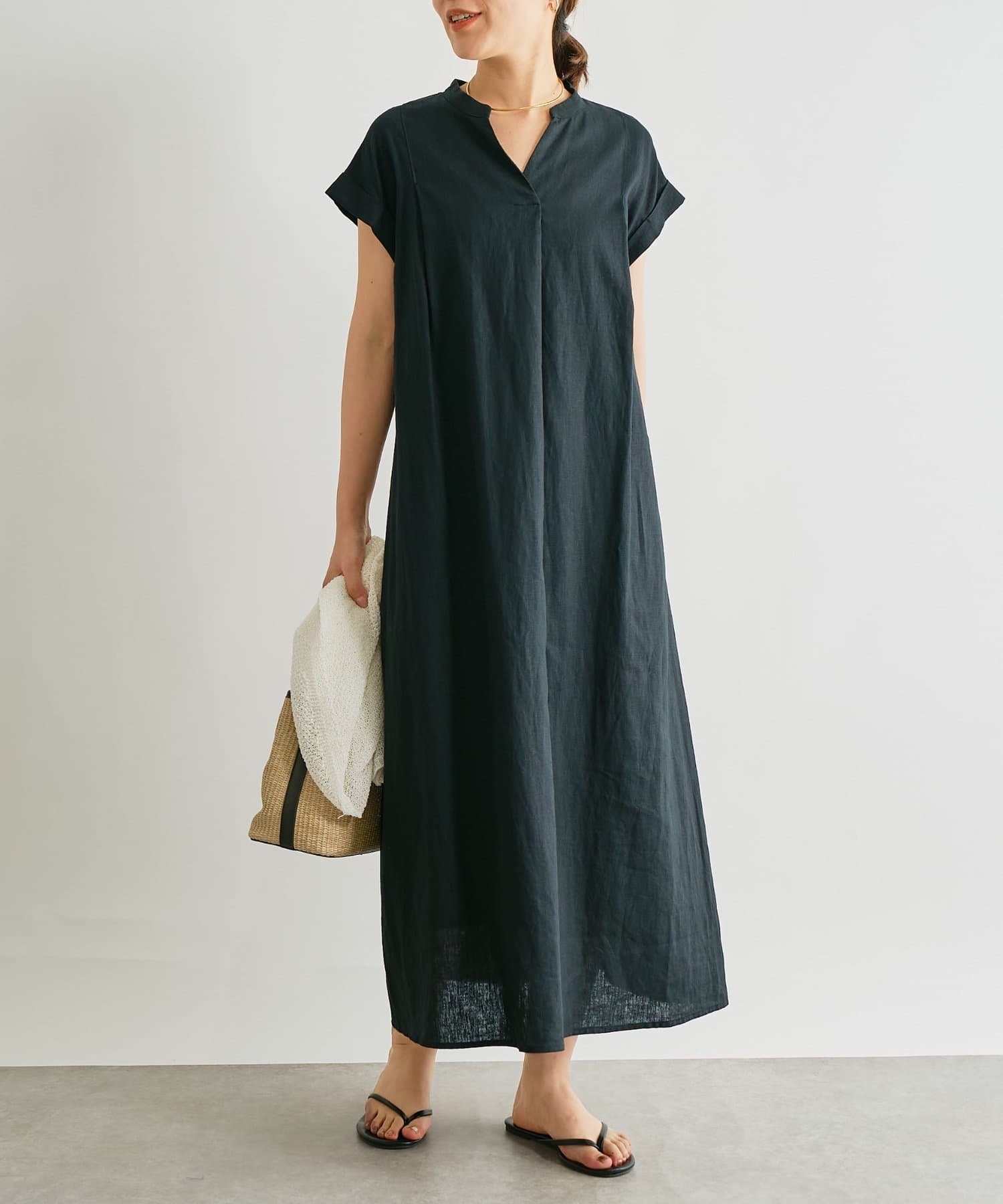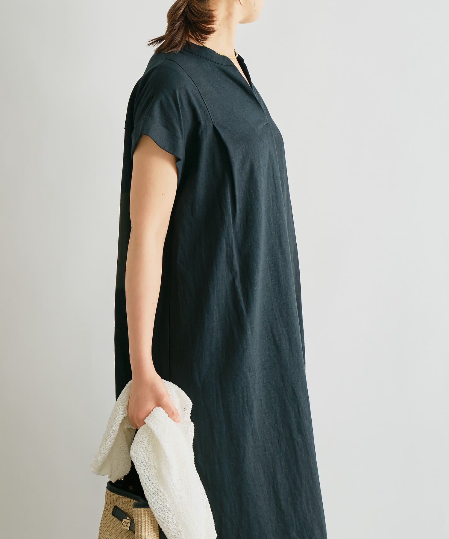 《1枚で涼しく》レーヨン麻ポプリンワンピース