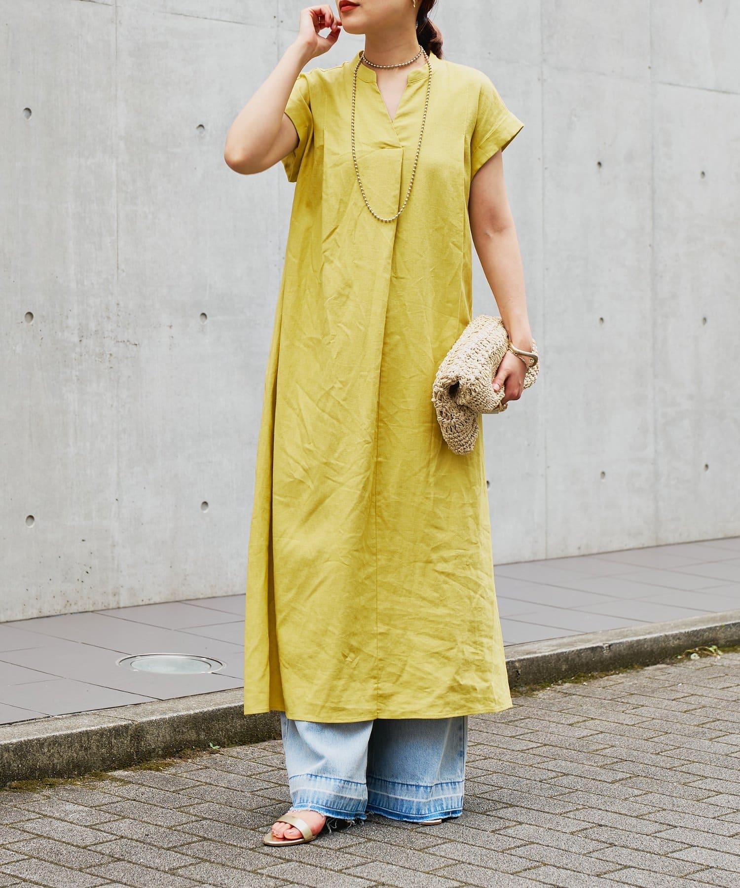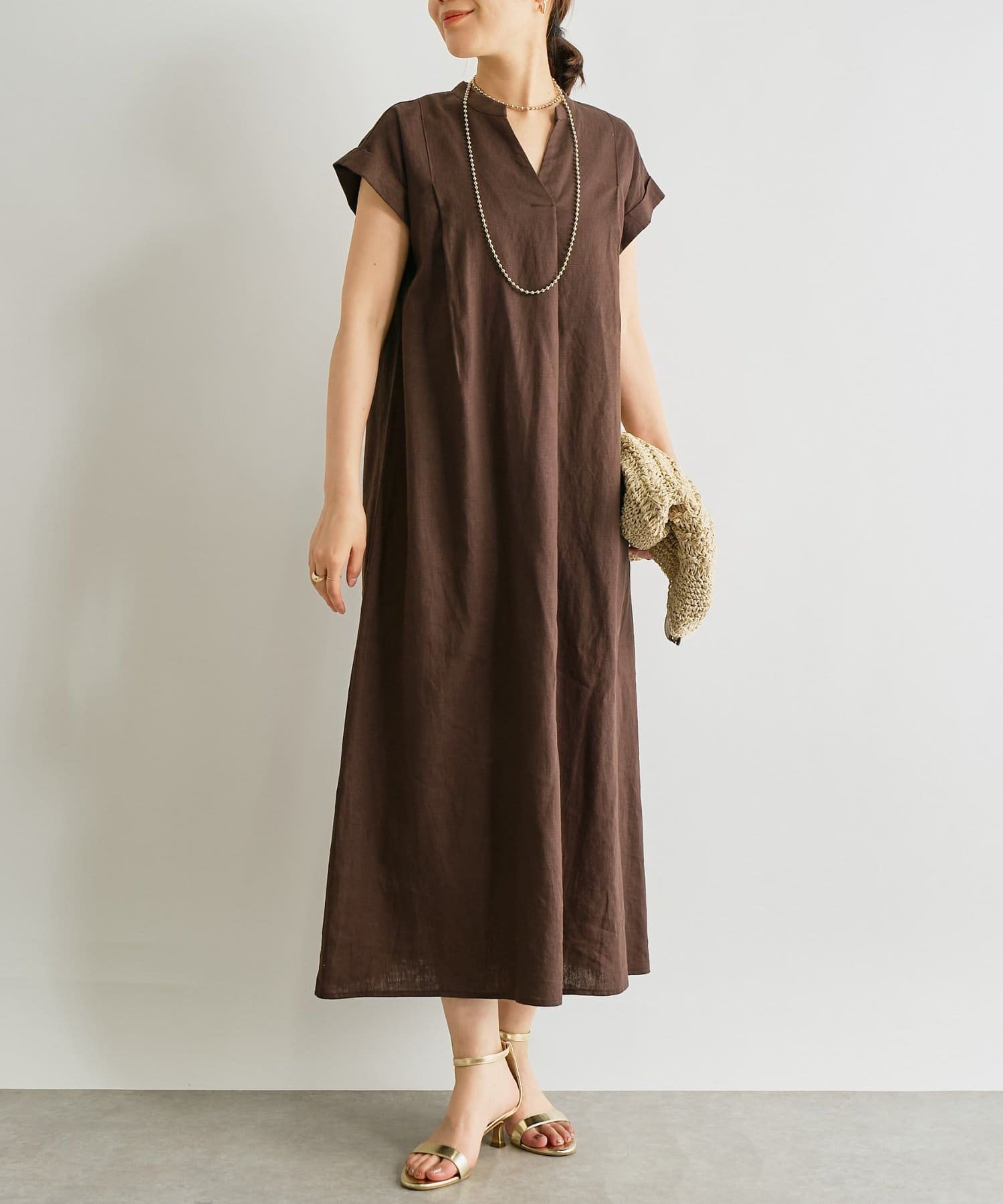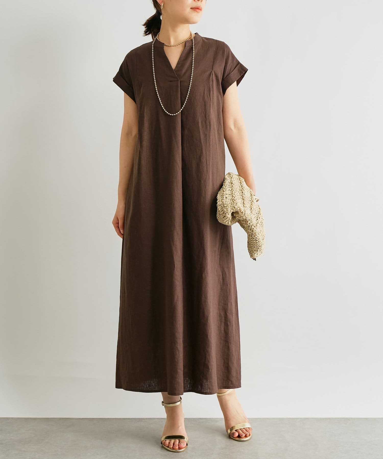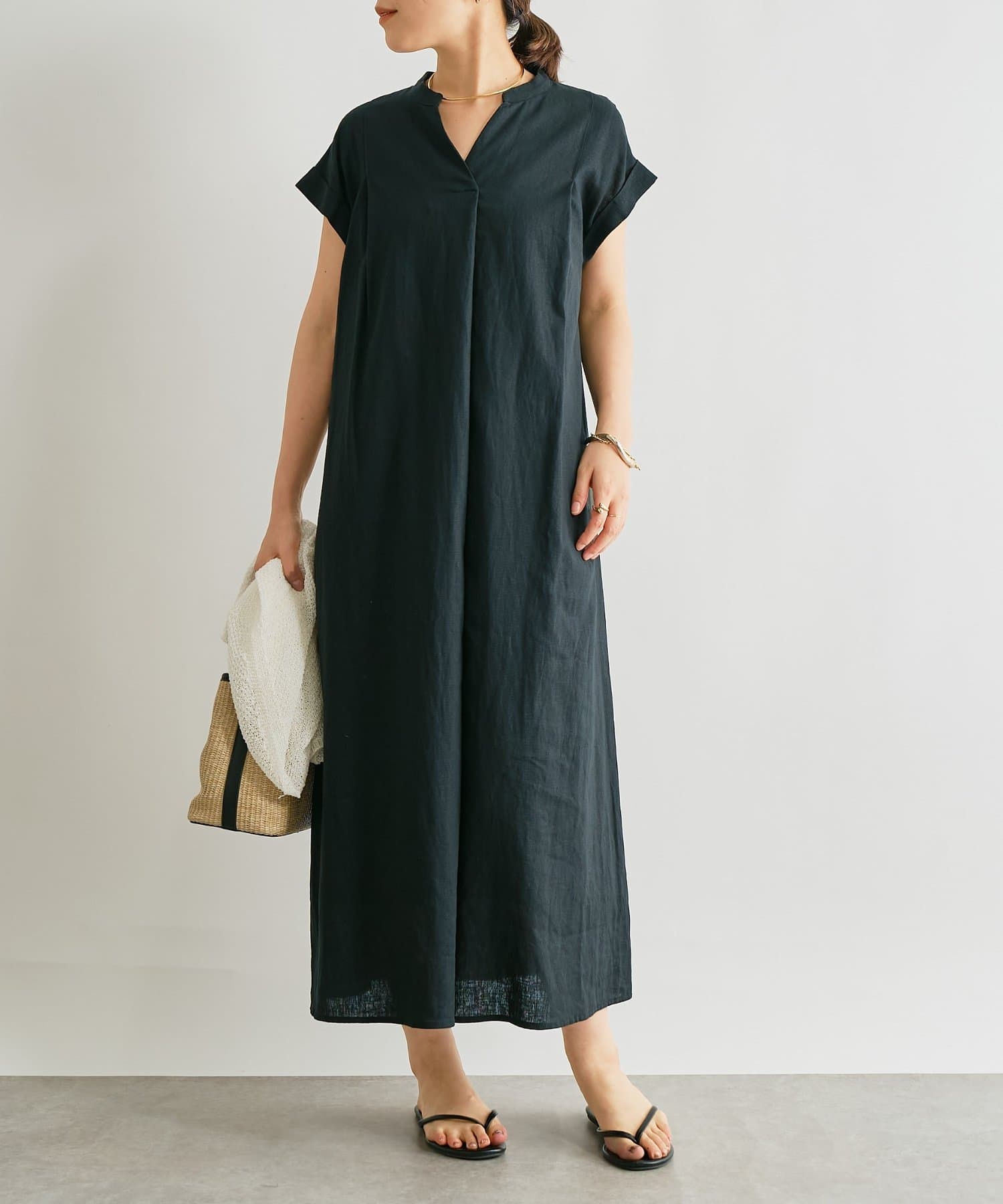 《1枚で涼しく》レーヨン麻ポプリンワンピース