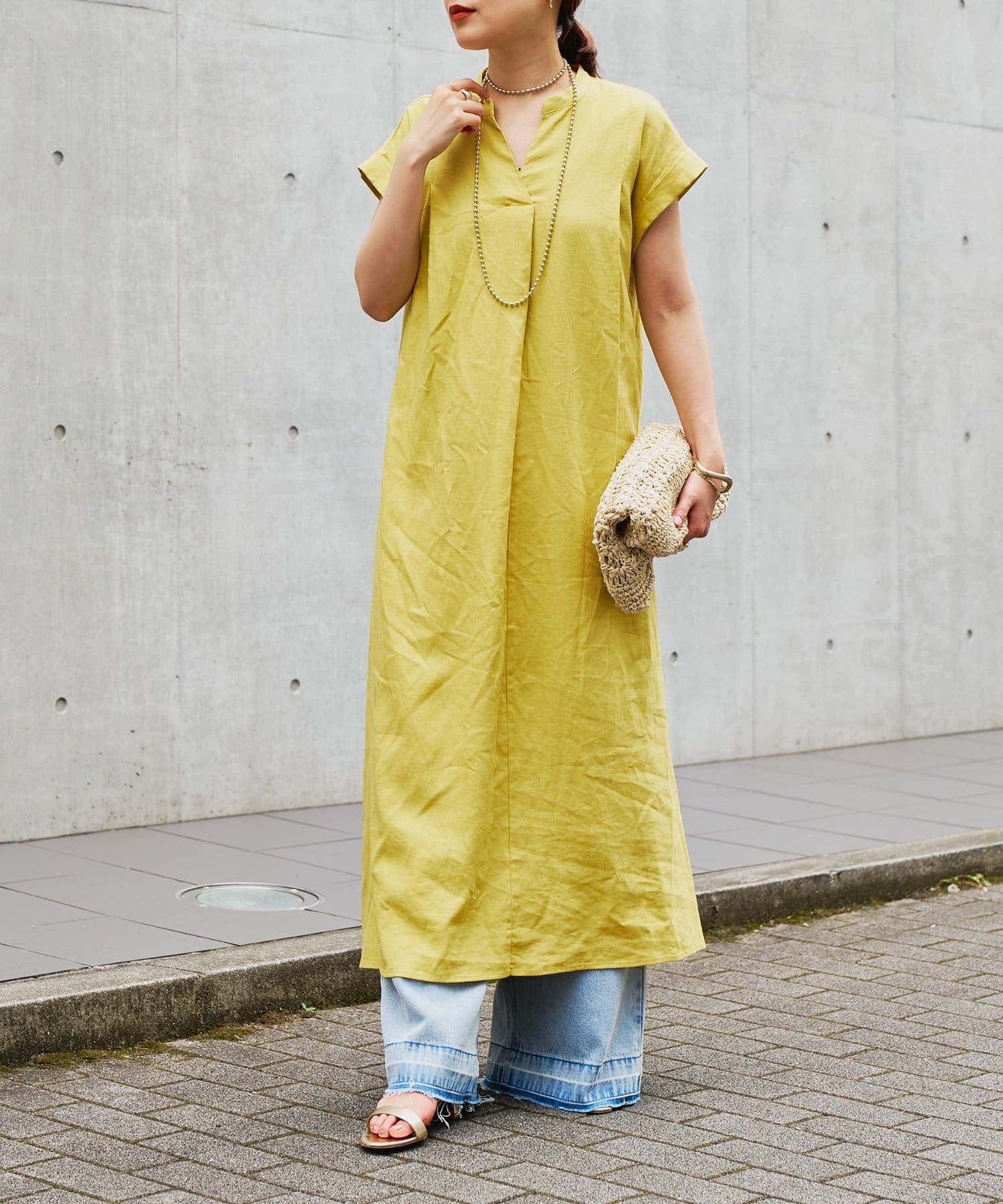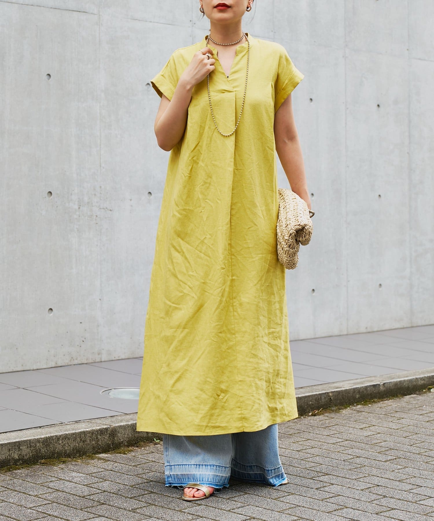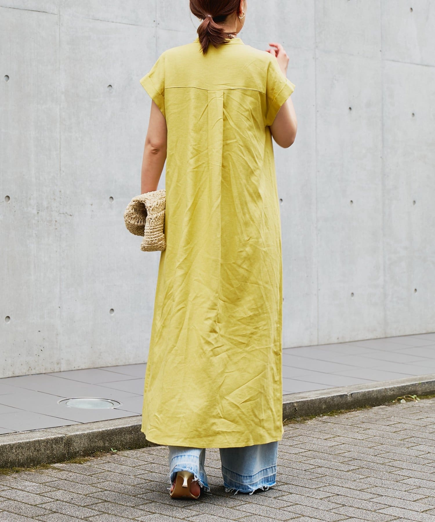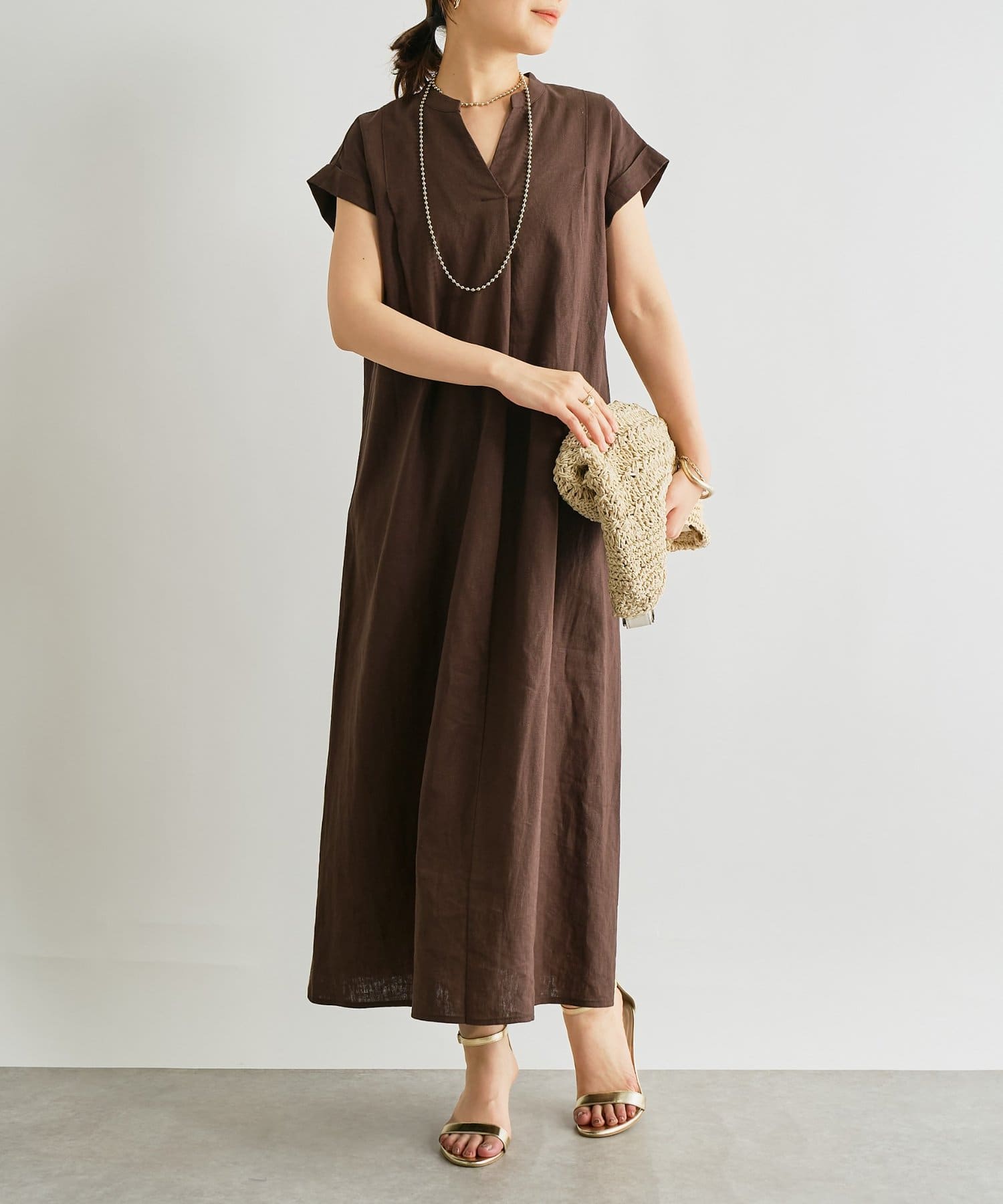 《1枚で涼しく》レーヨン麻ポプリンワンピース