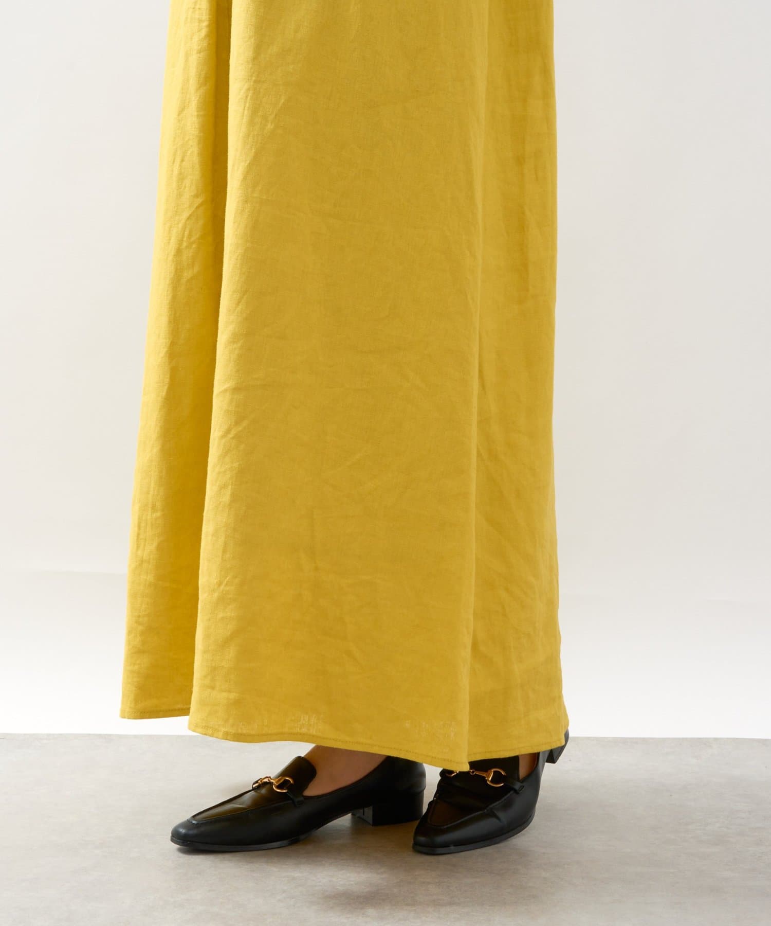 ブラックは少しモードな雰囲気だったり、きちんと感もプラスしてくれるカラーリングです。また、レーヨン麻の素材感によって重たくなり過ぎない印象にまとめてくれます。