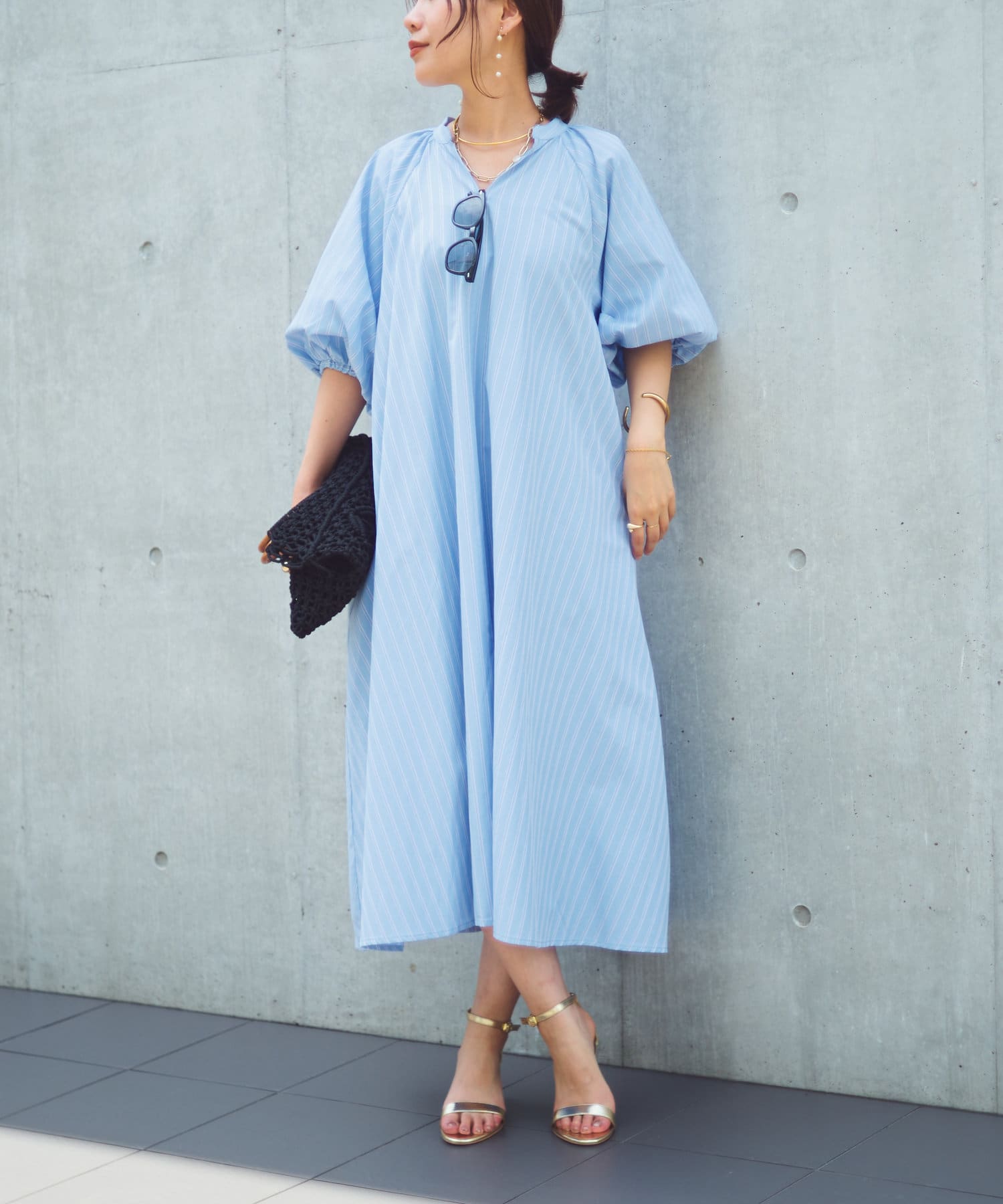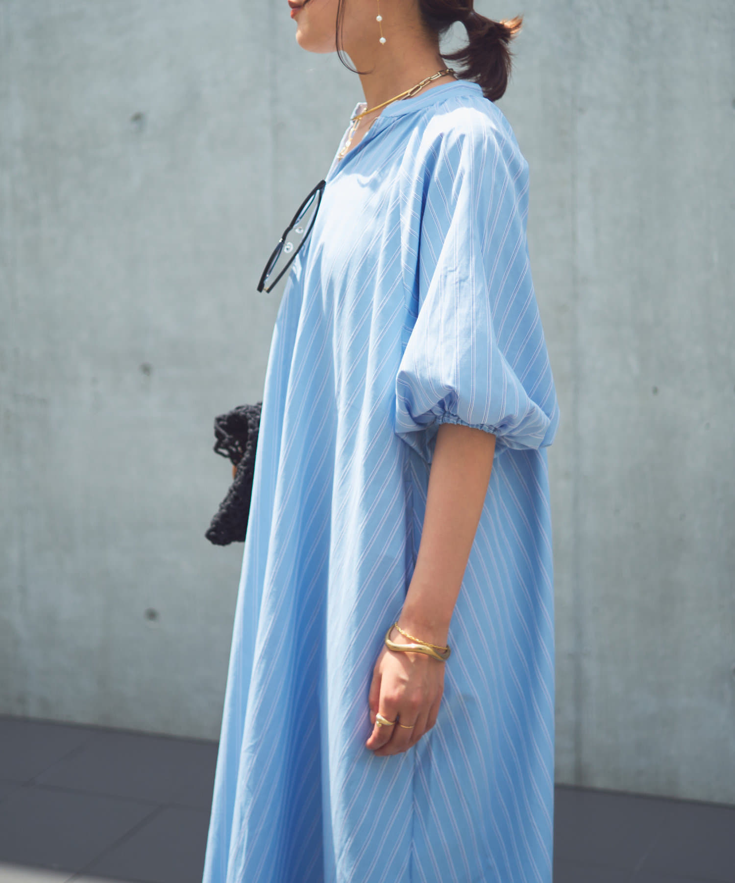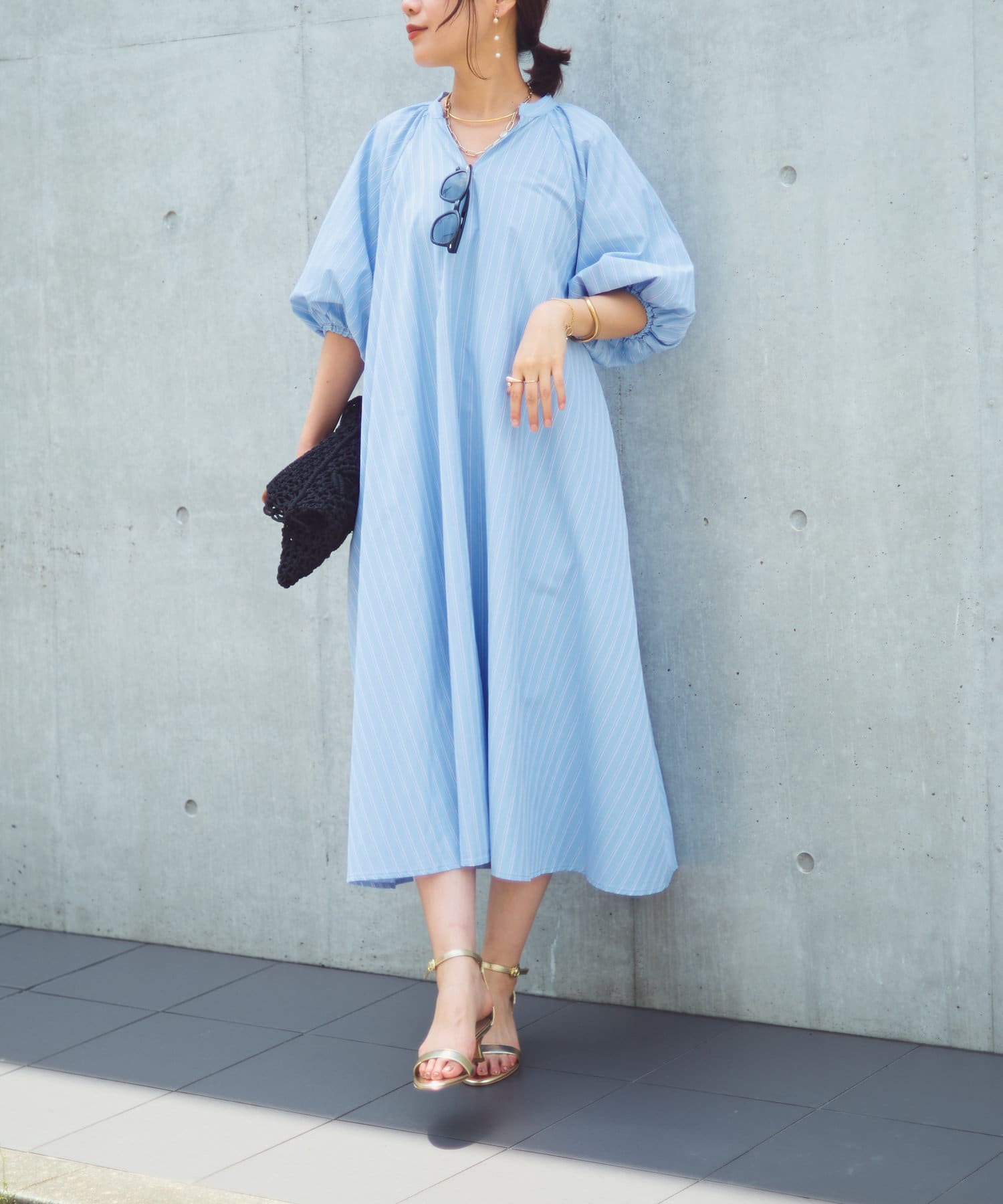 ・ボリューミーなスリーブデザインもアクセントになっており、一枚で着映えするワンピースです◎