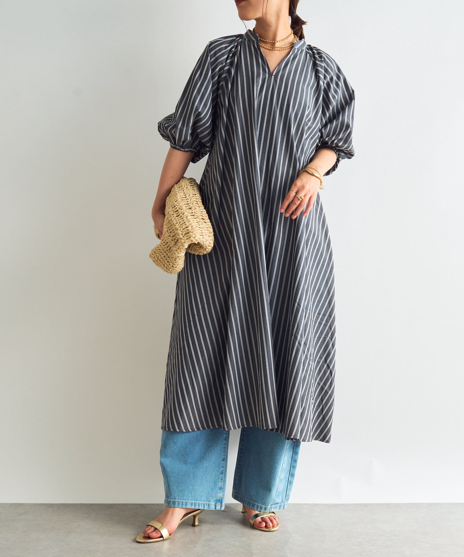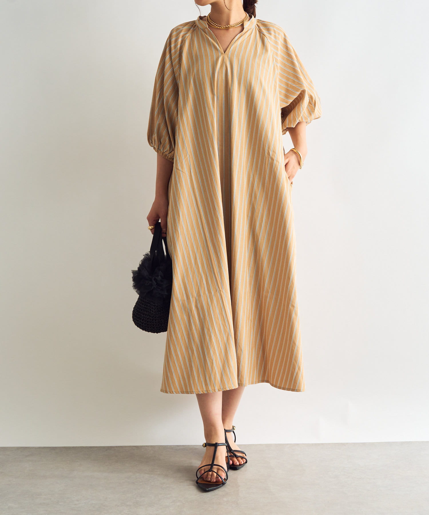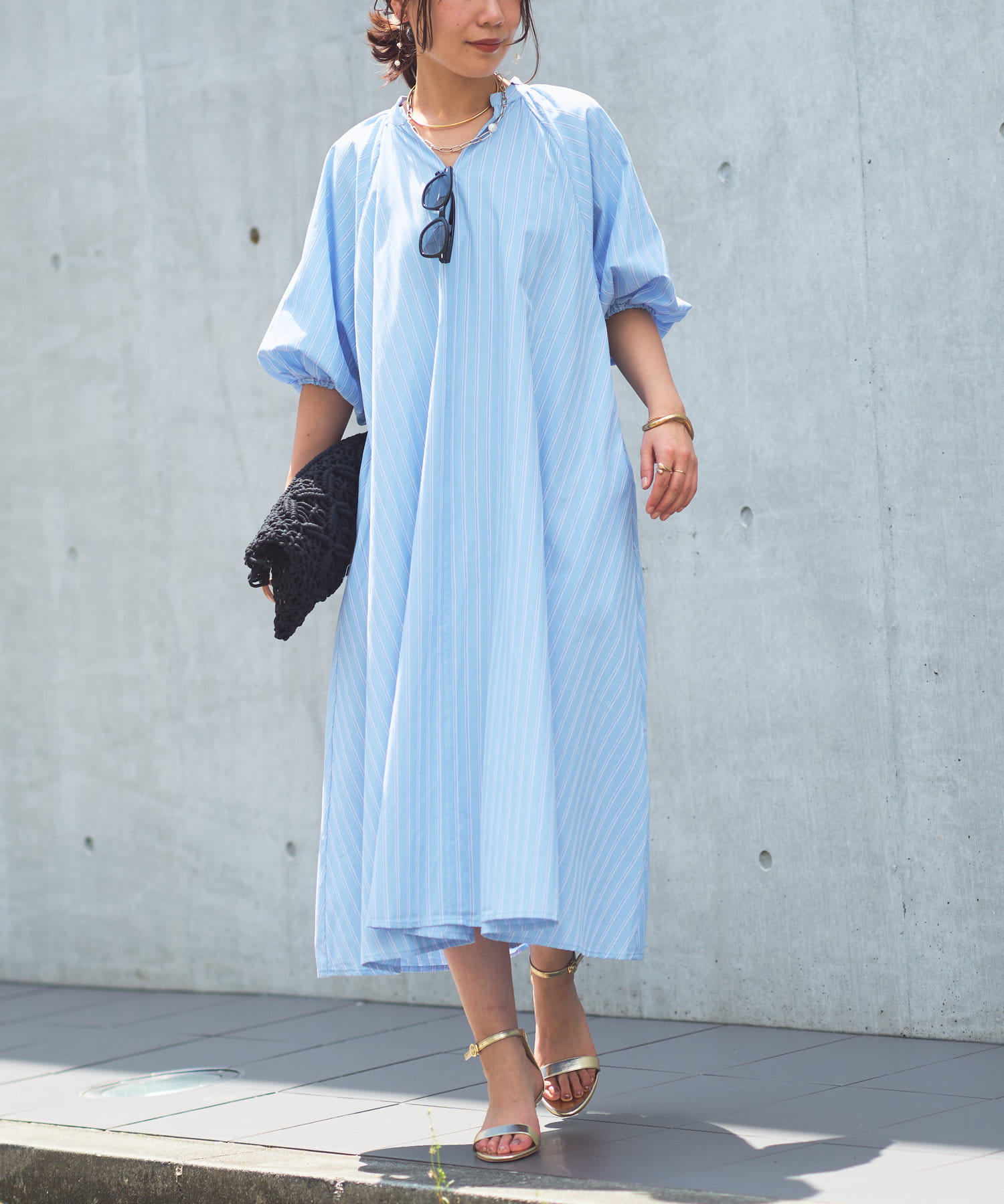・ボリューミーなスリーブデザインもアクセントになっており、一枚で着映えするワンピースです◎