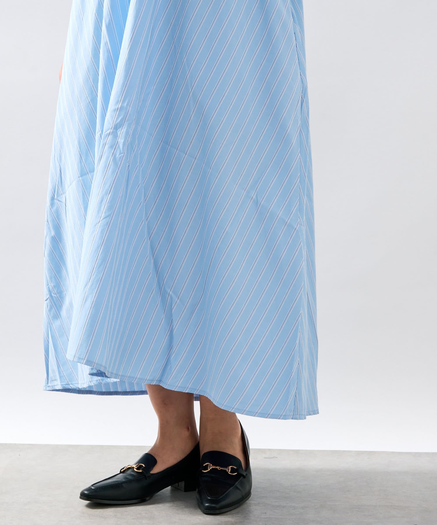 フラットなサンダルやスニーカー、ヒールなど小物次第でも印象の変わる着こなしを楽しめます。