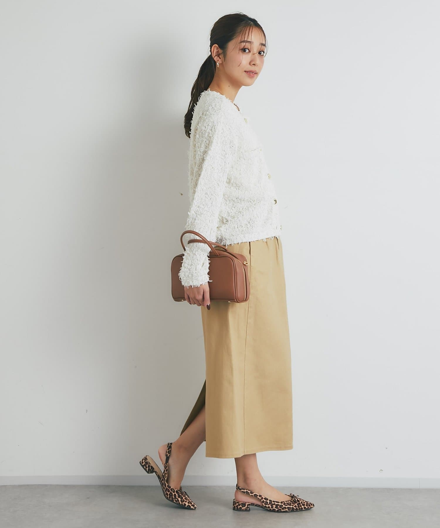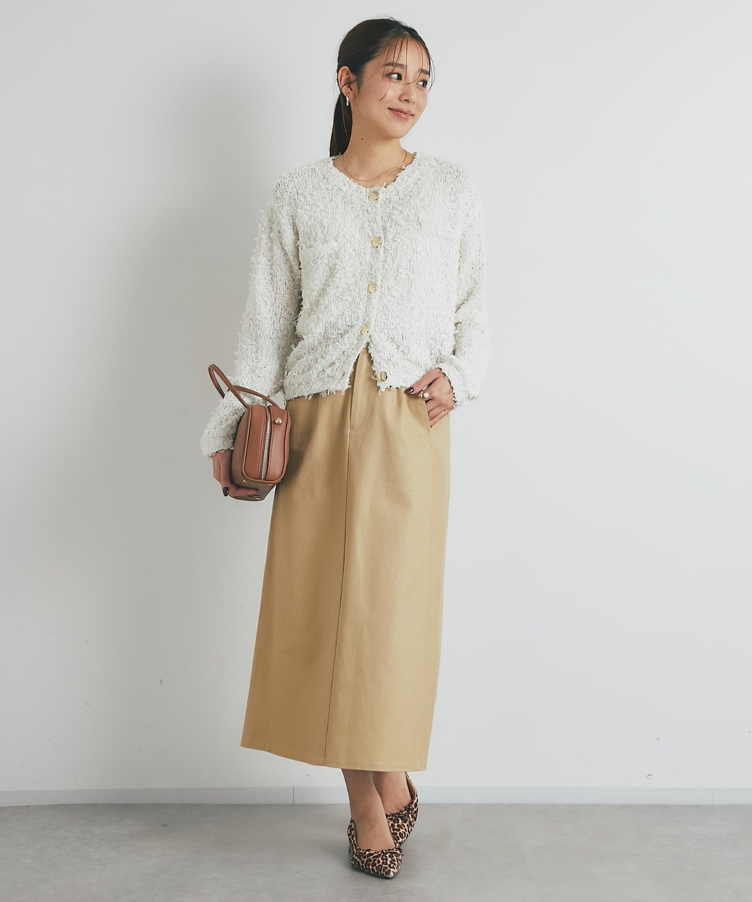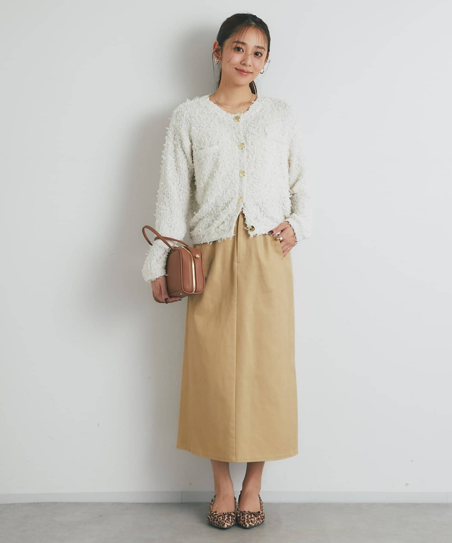 カーディガンやざっくりニットと合わせて大人かわいいスタイリングもおすすめです。