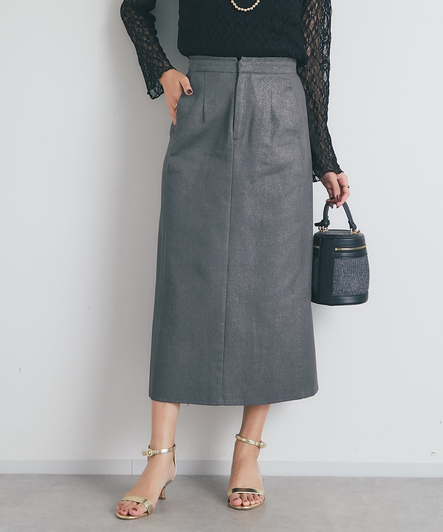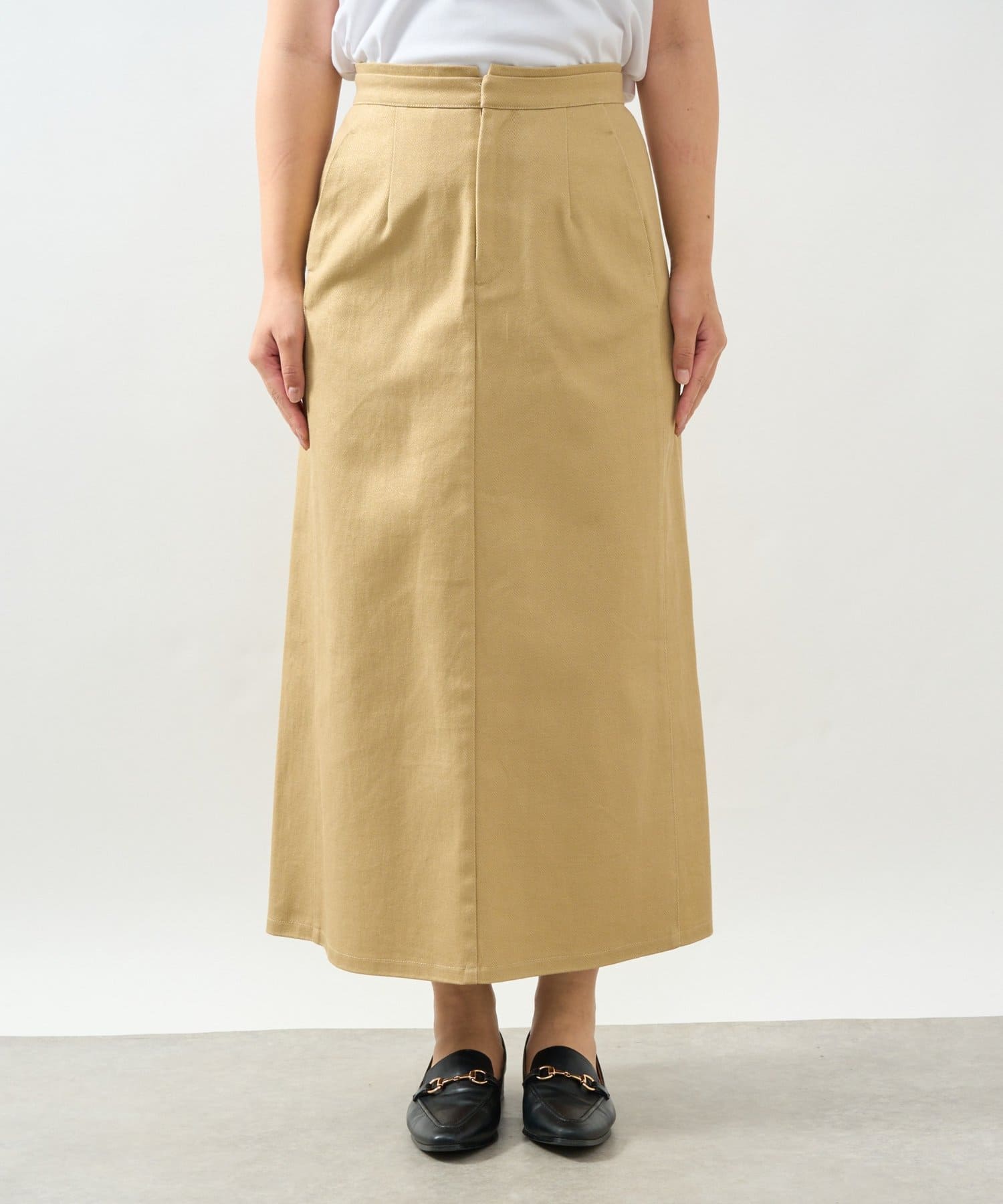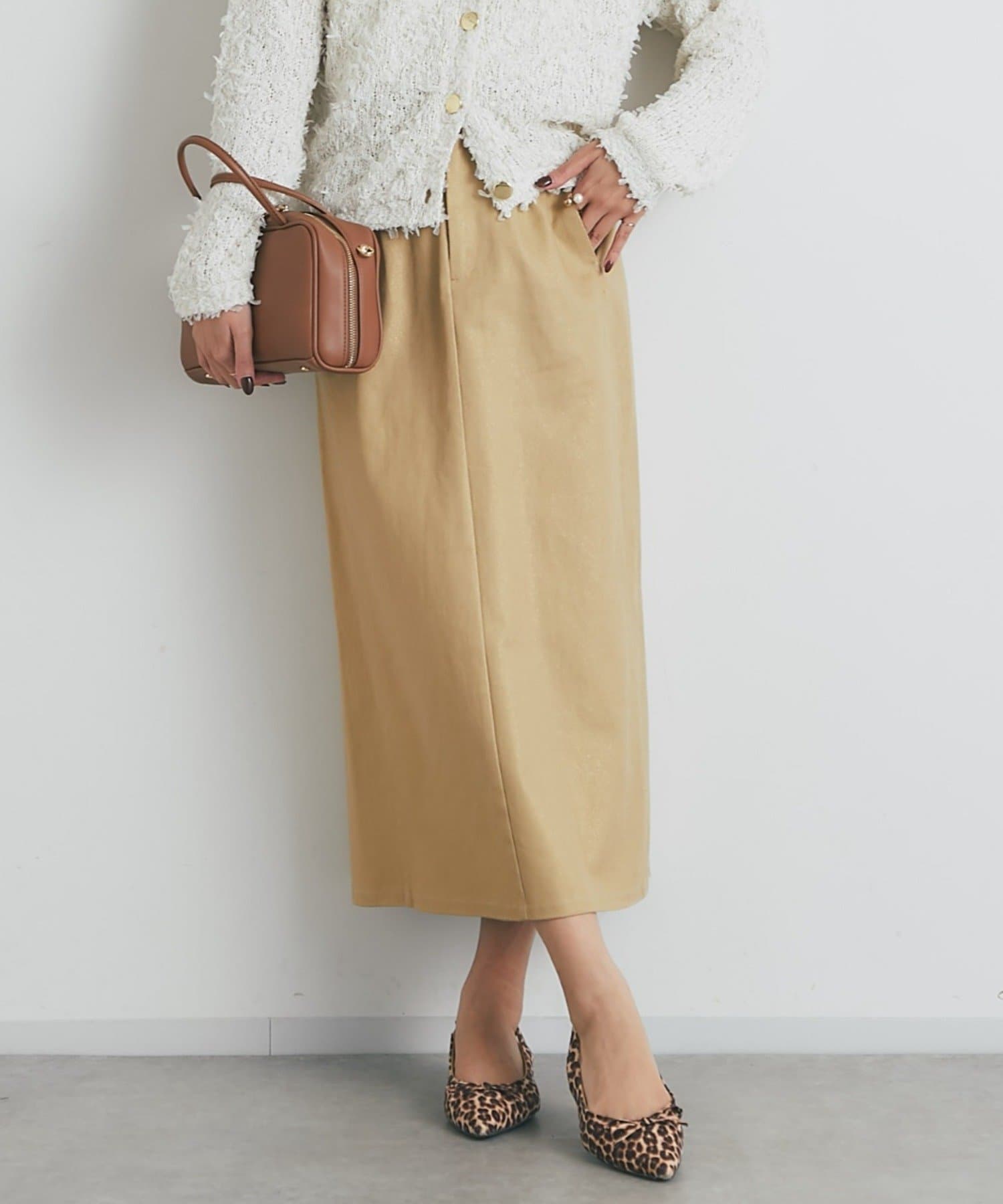 《すっきり見え・デイリーに着回せる》箔チノナロースカート