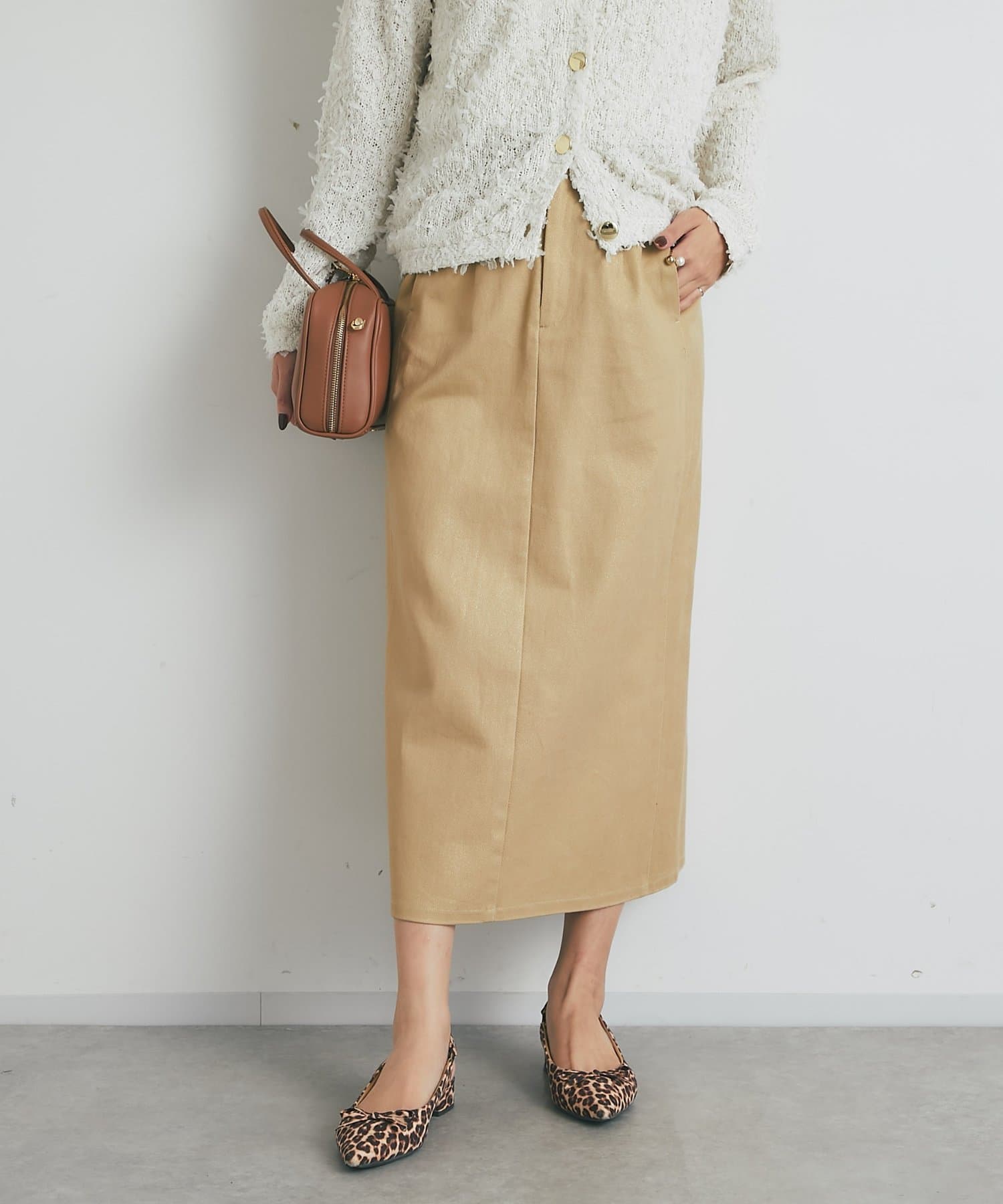さりげない輝きが上品見えさせる大人のチノスカート