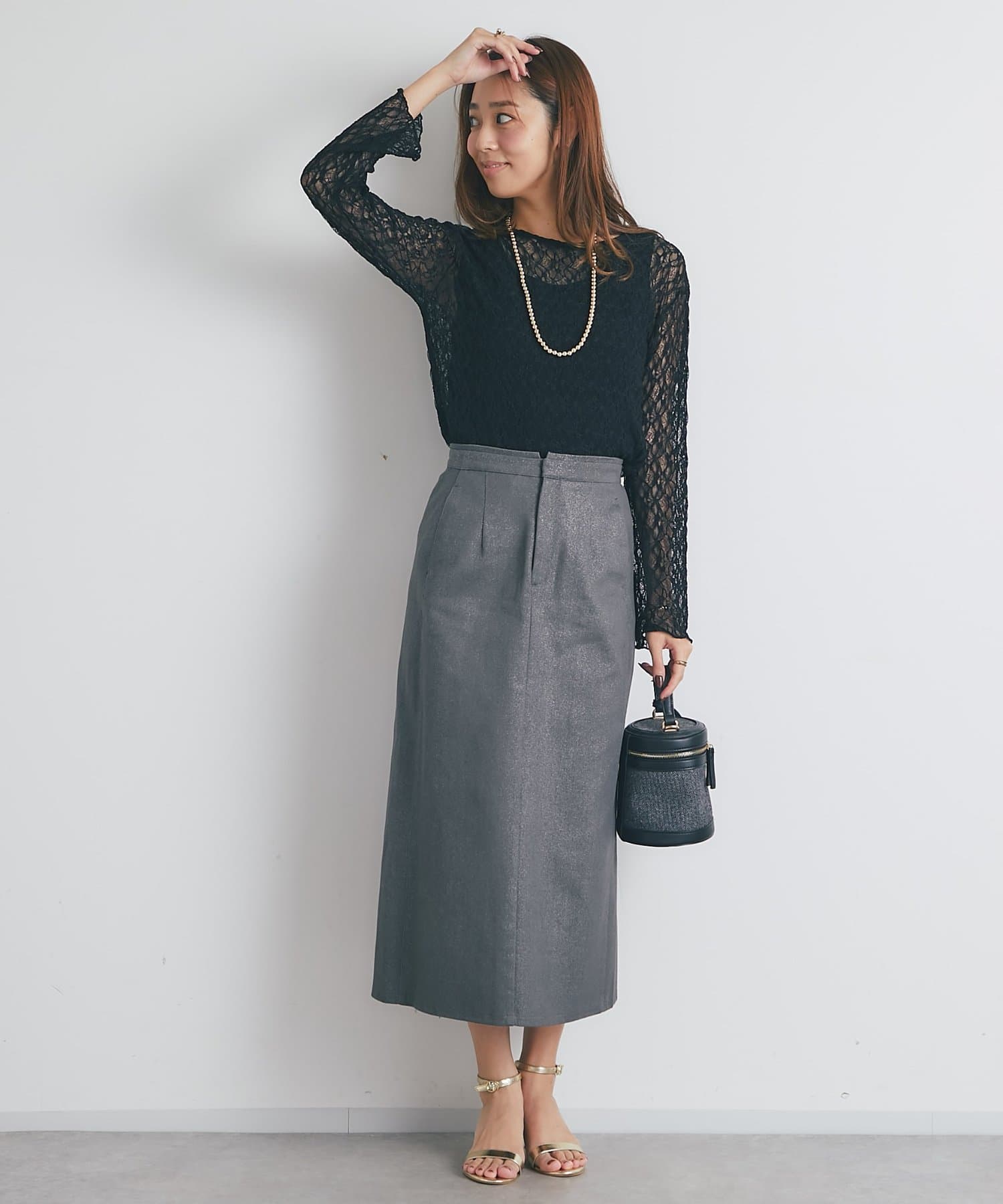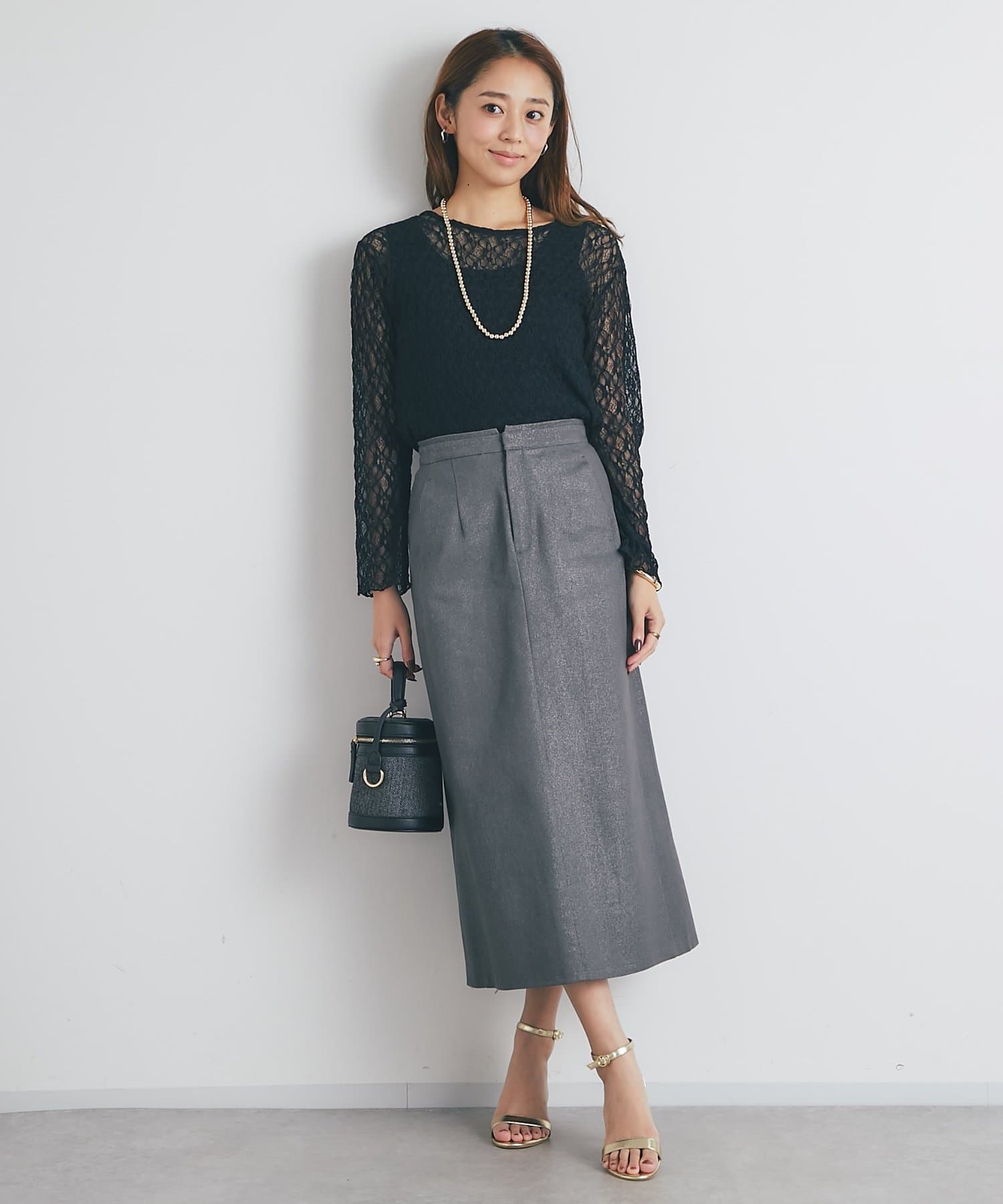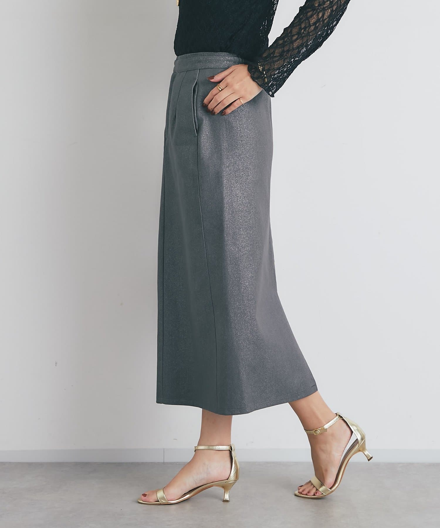 ・さりげなくきらめく箔押しの素材が上品見えし、オンオフ兼用でデイリーに着回せます。