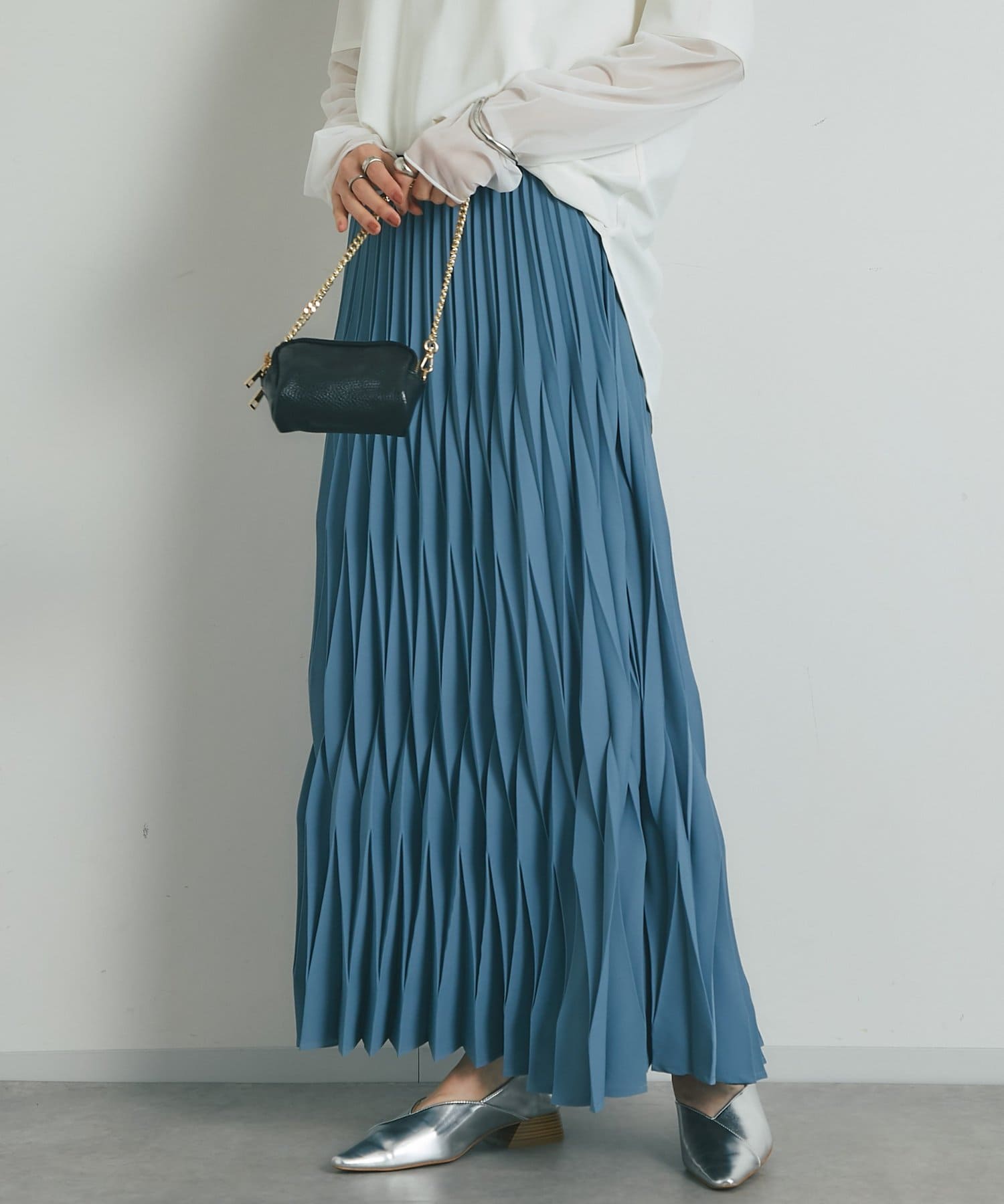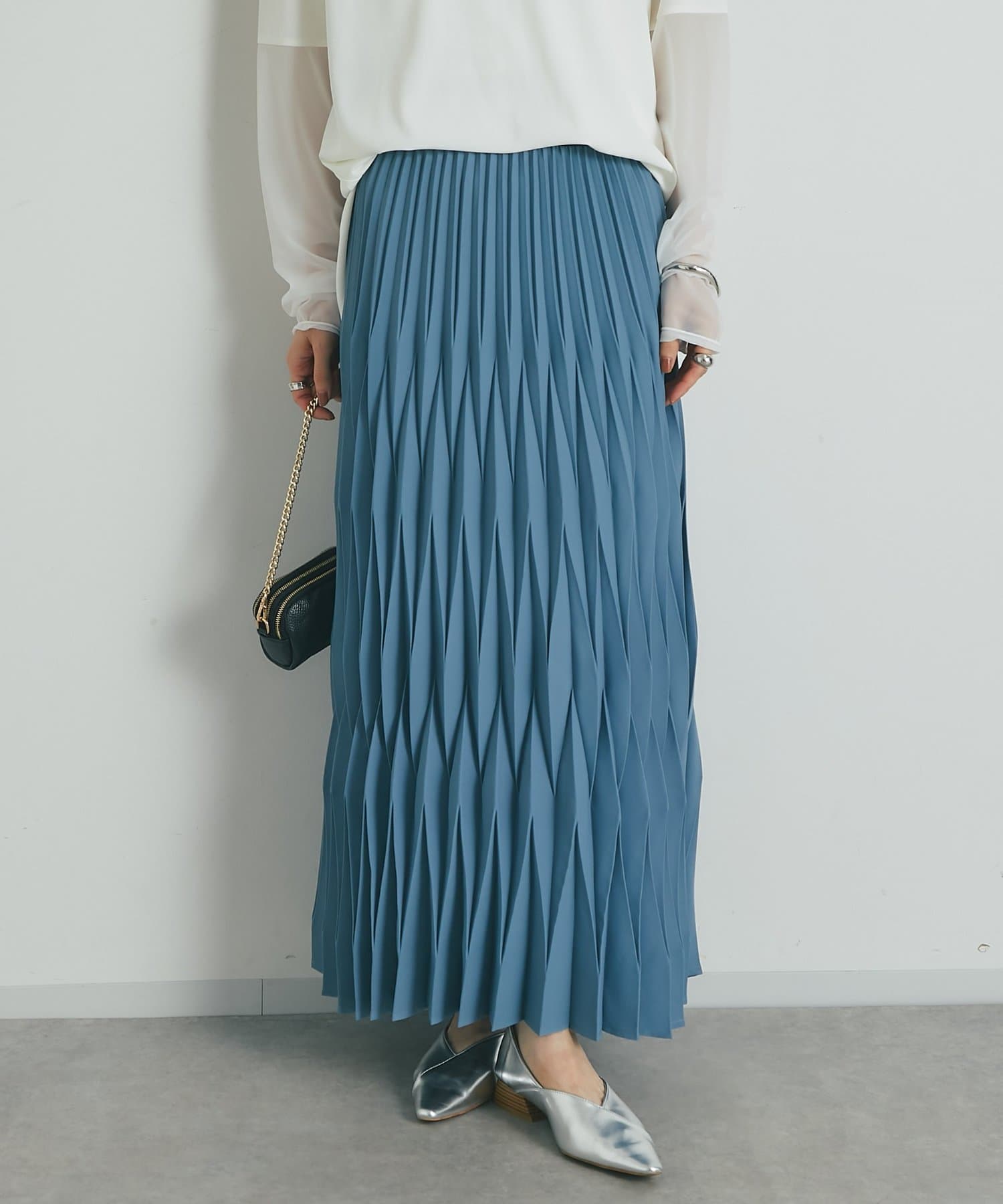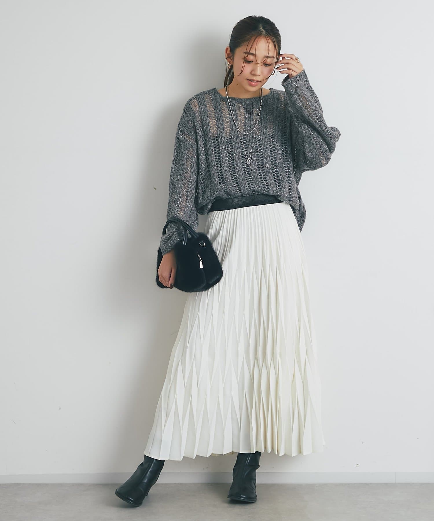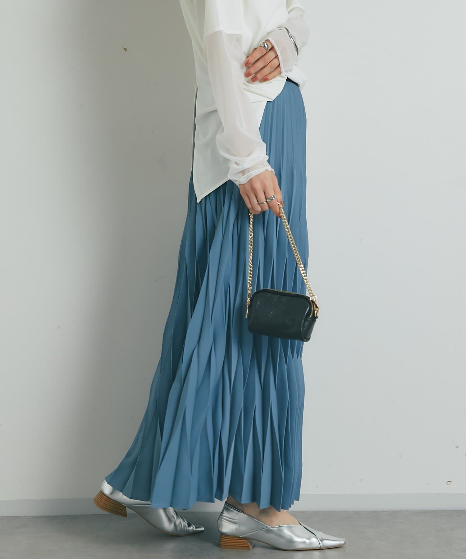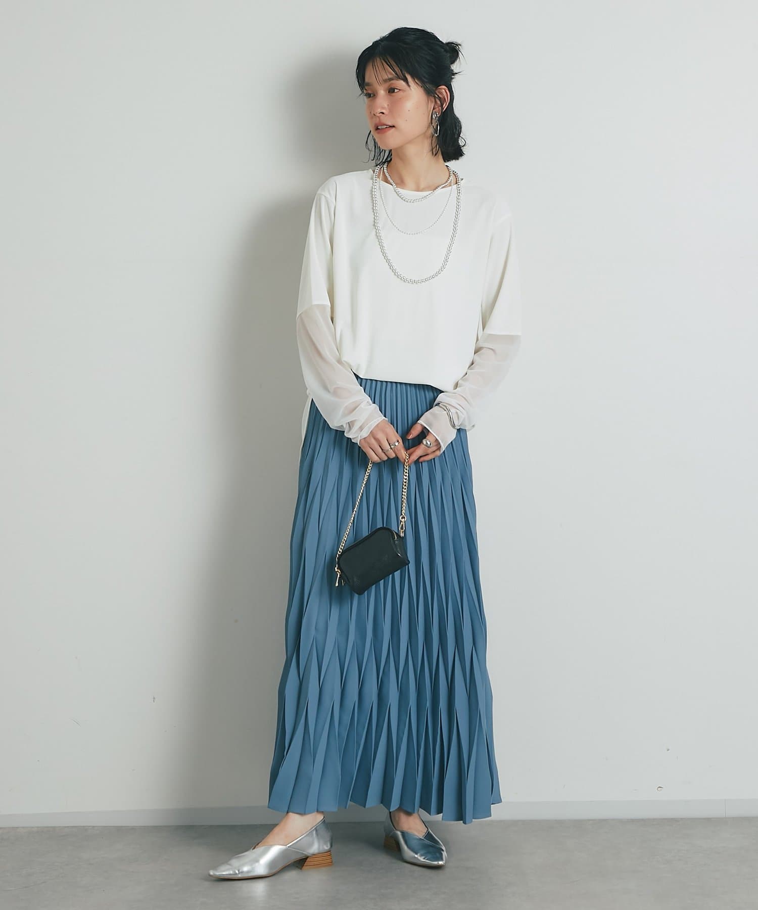 ・軽やかな動きのあるプリーツ素材で大人かわいいを演出。