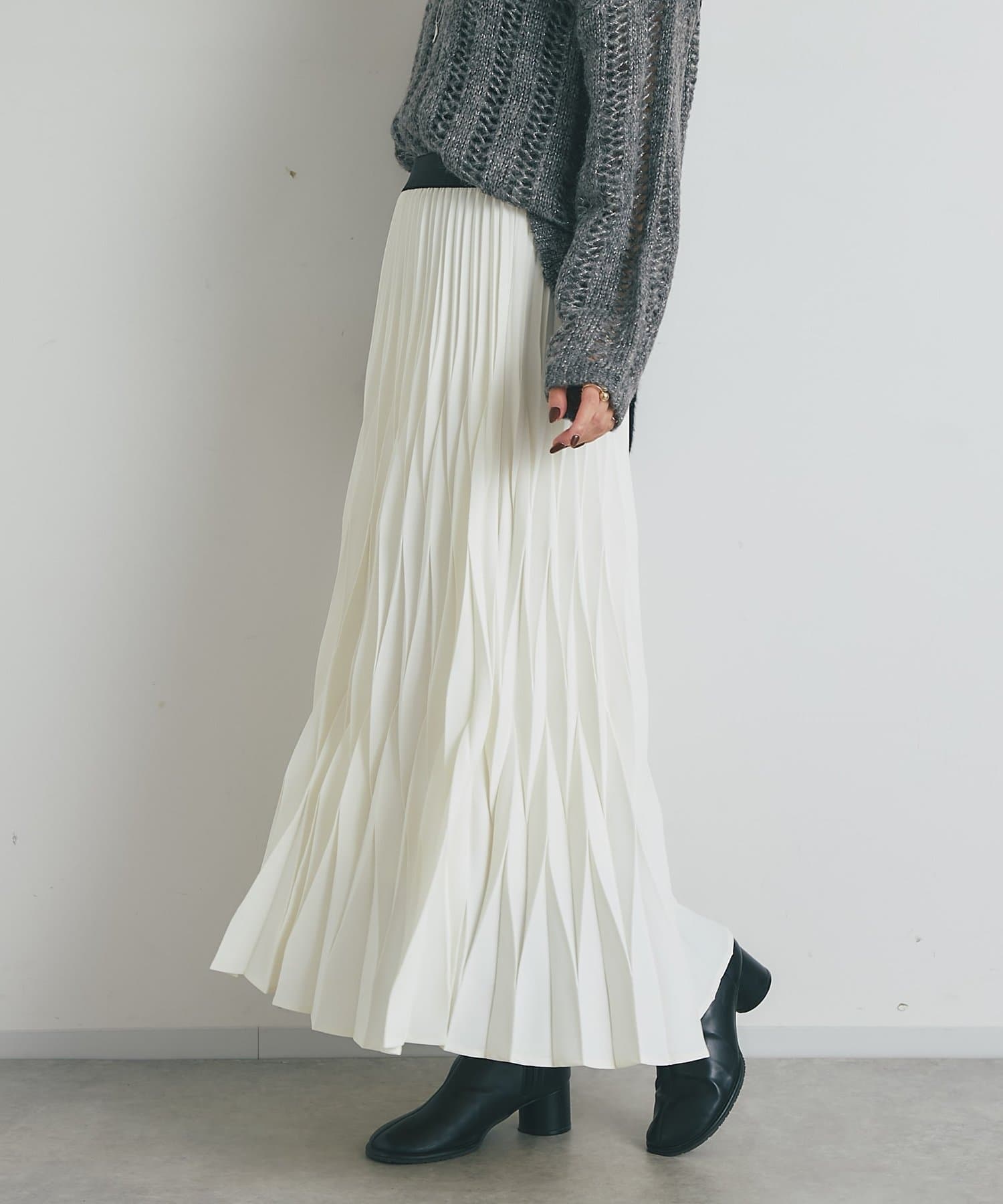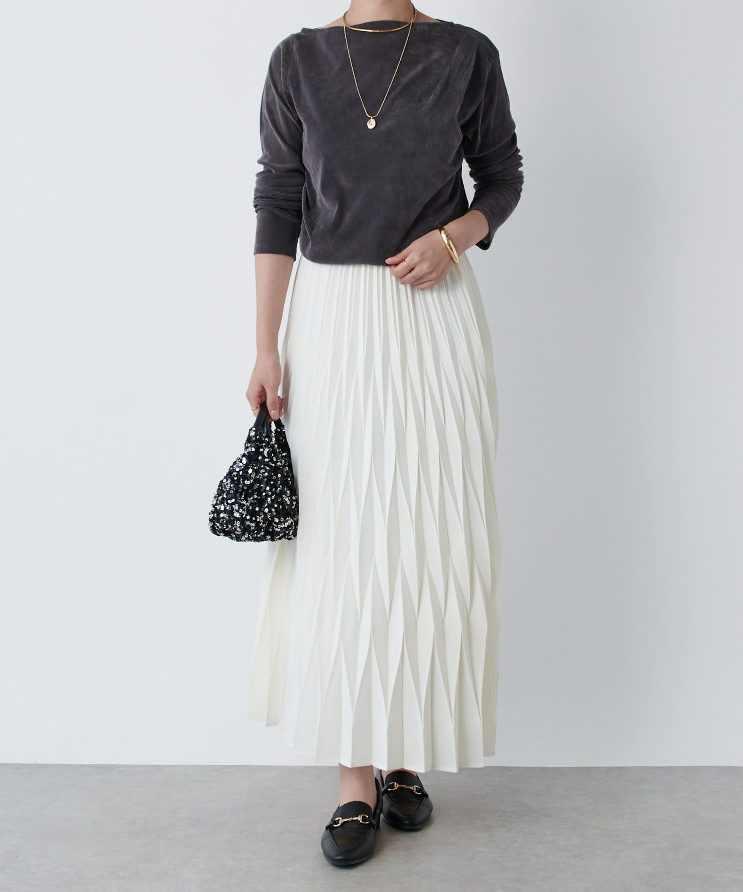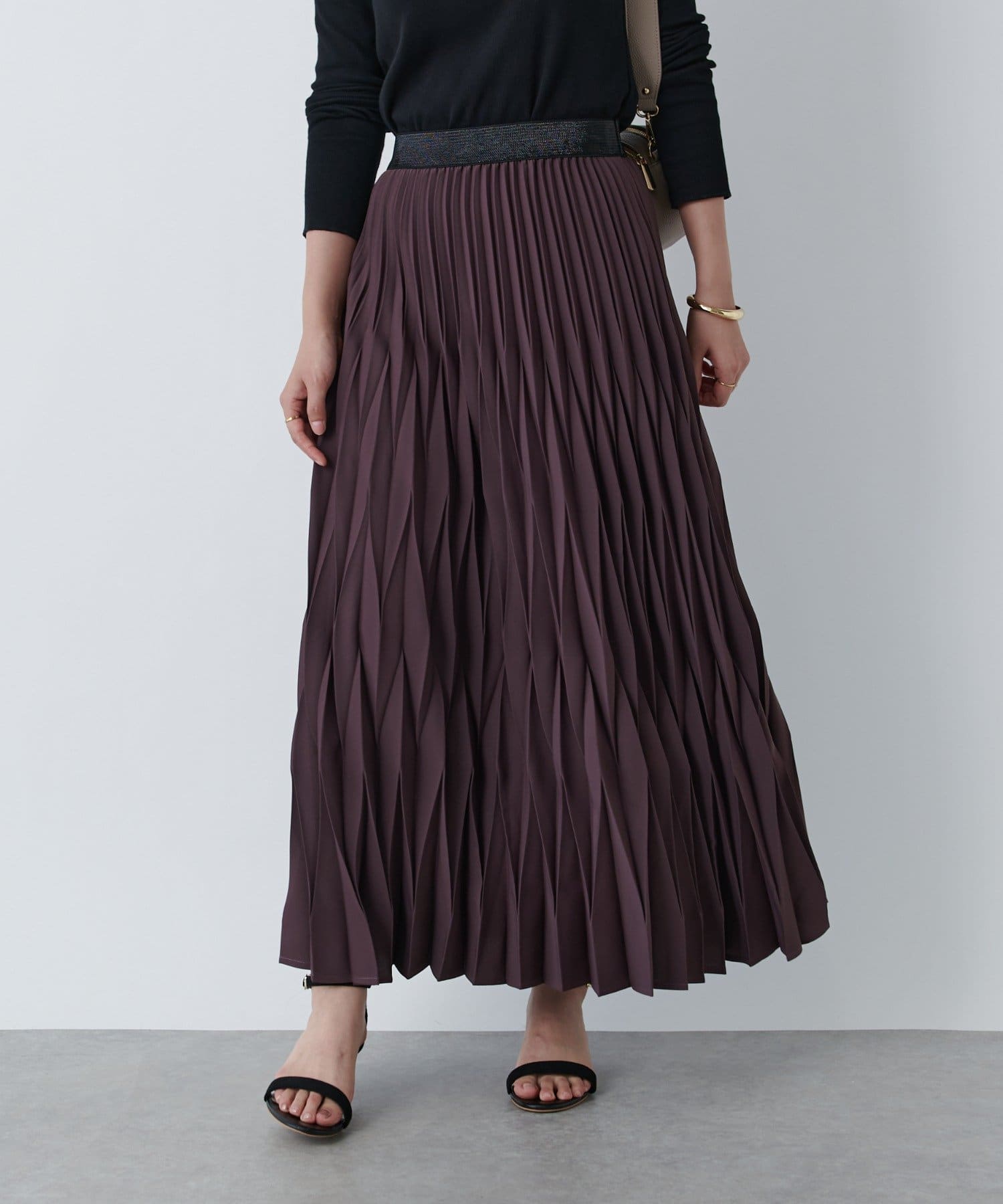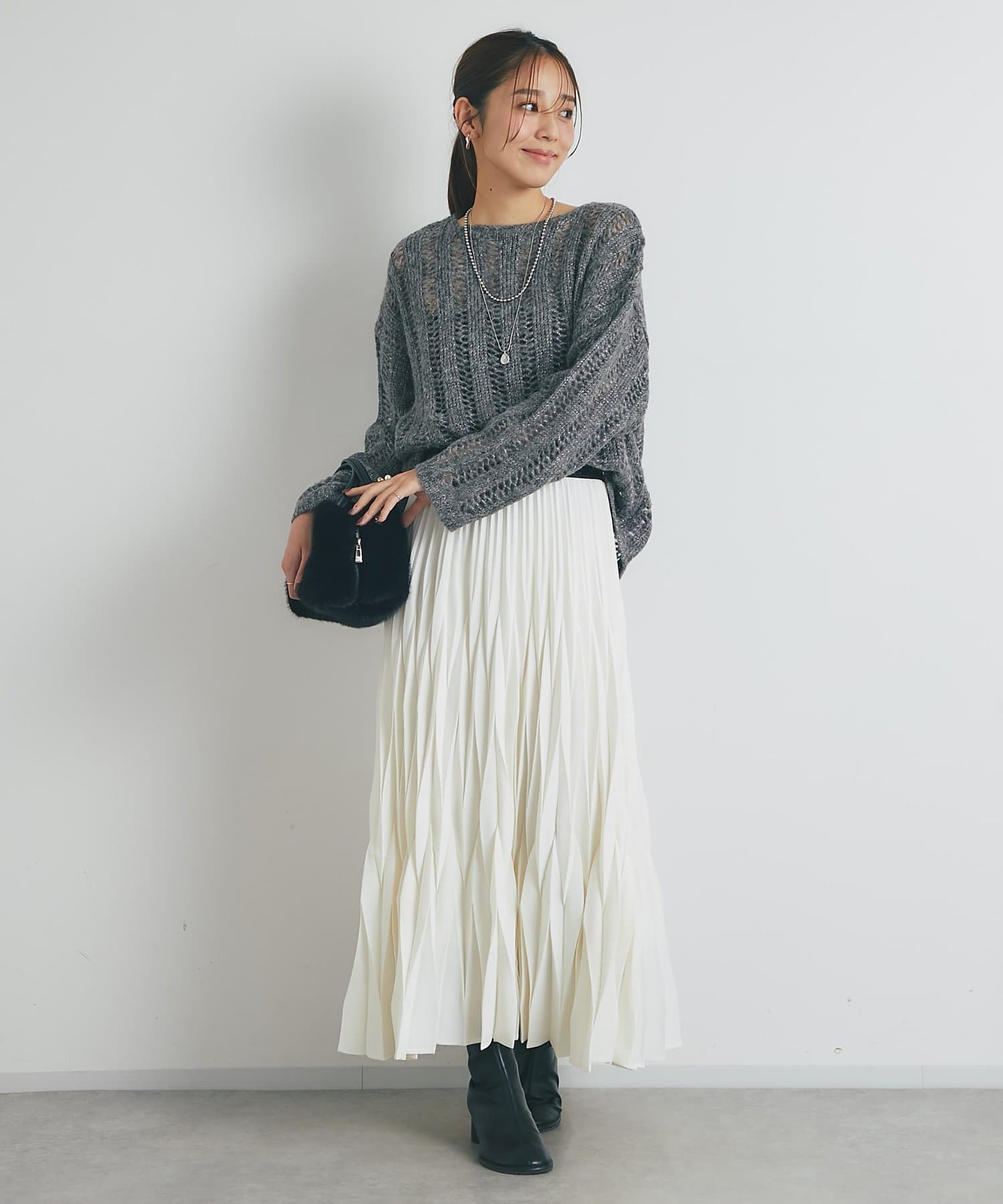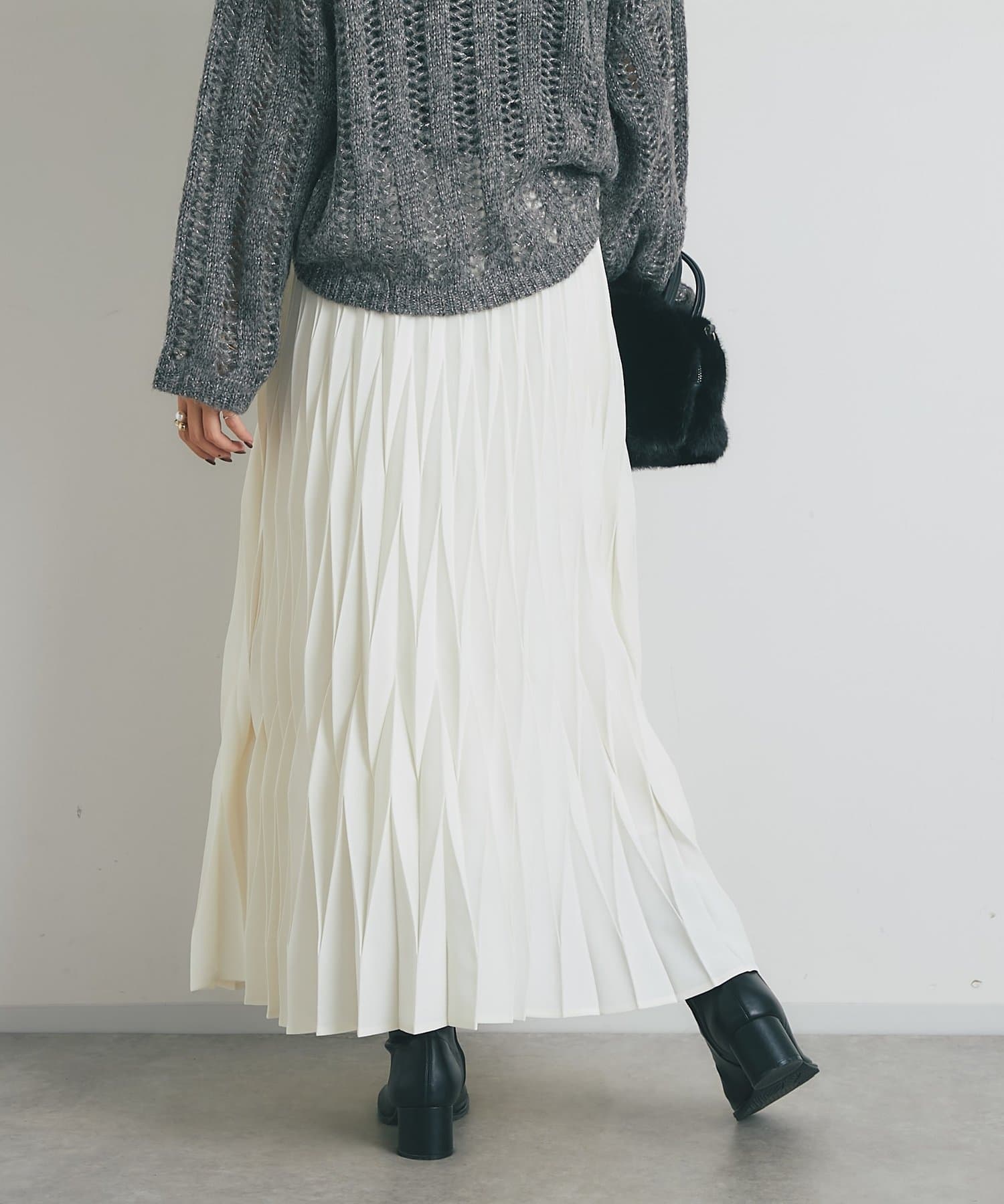 ・軽やかな動きのあるプリーツ素材で大人かわいいを演出。