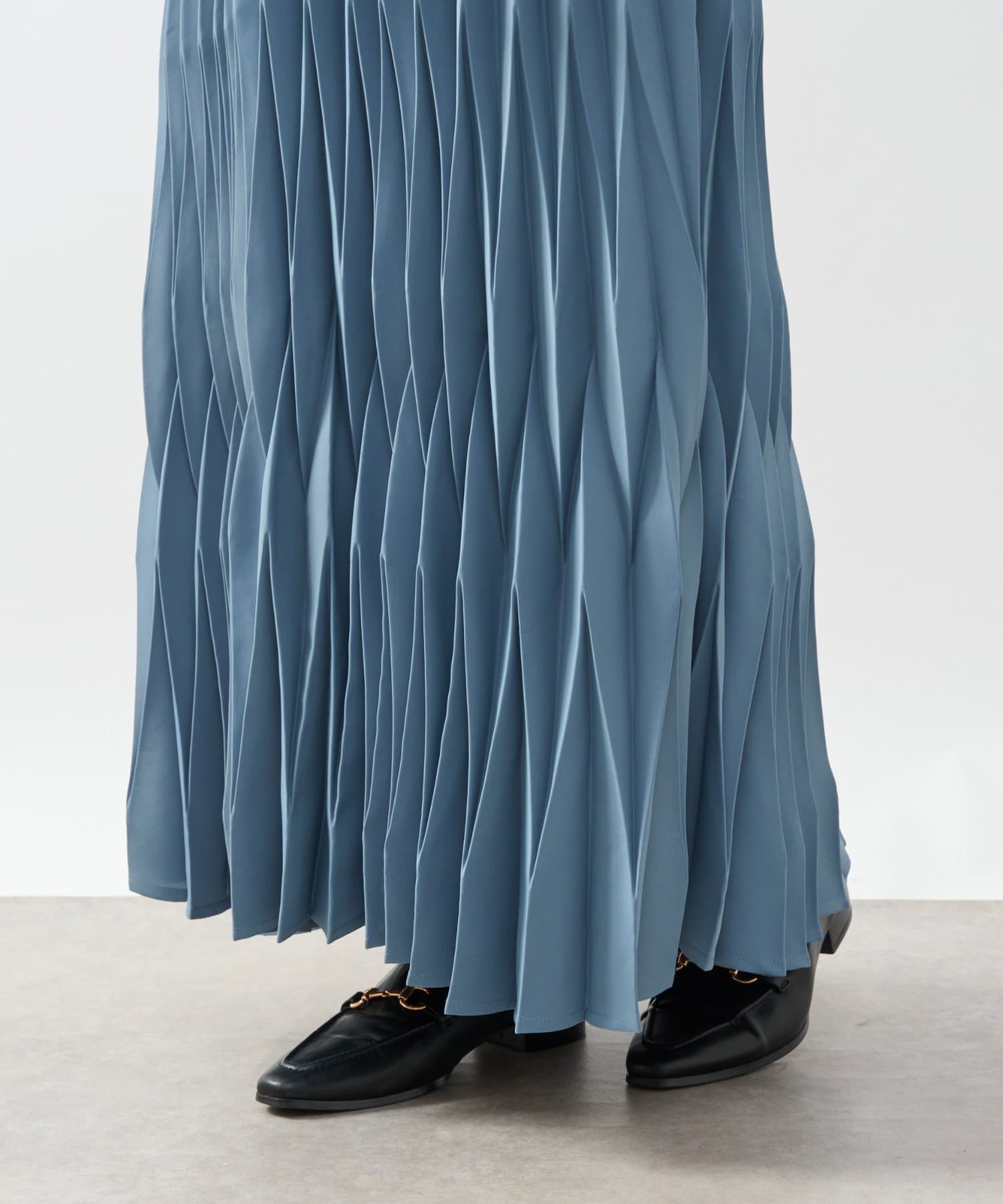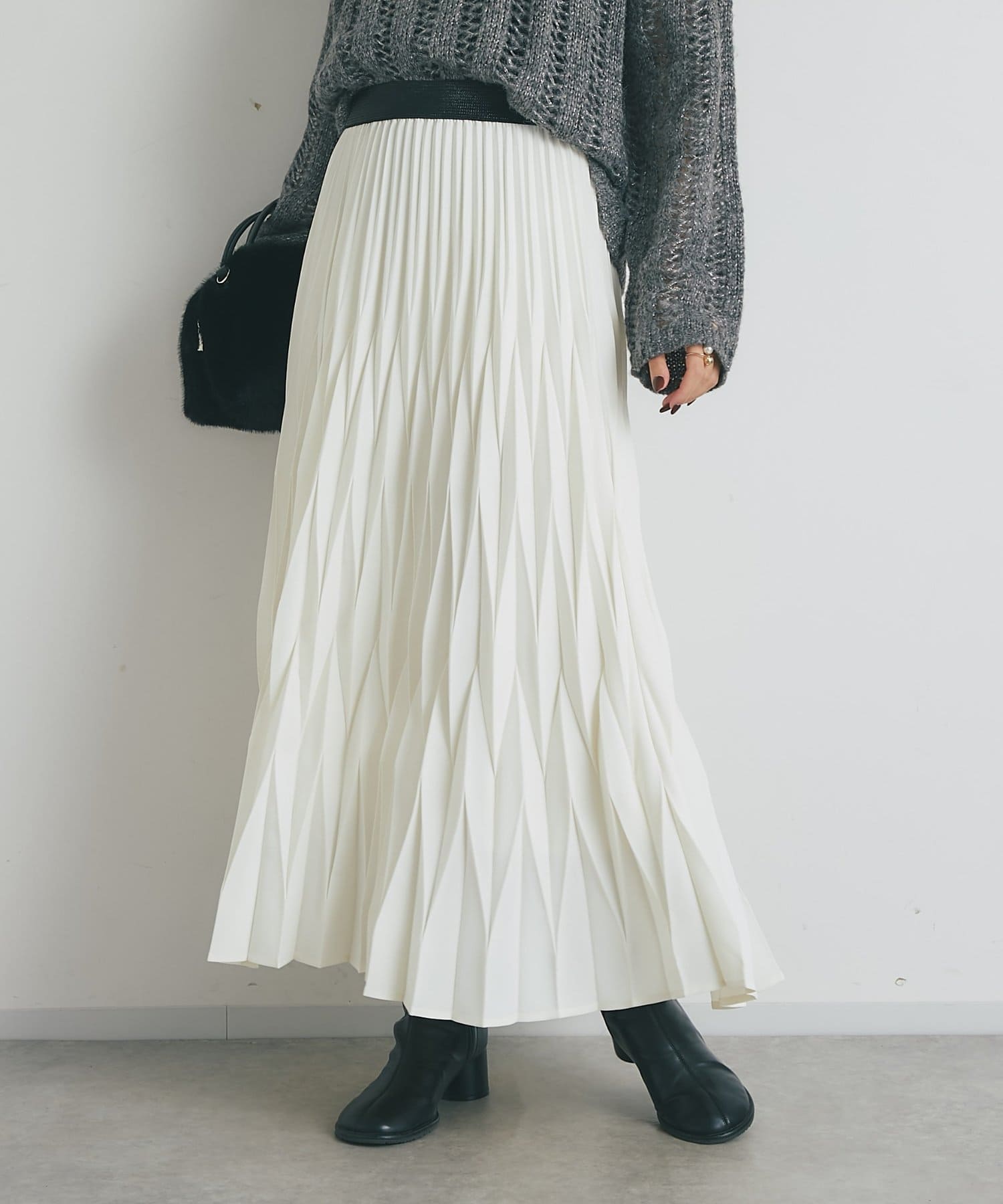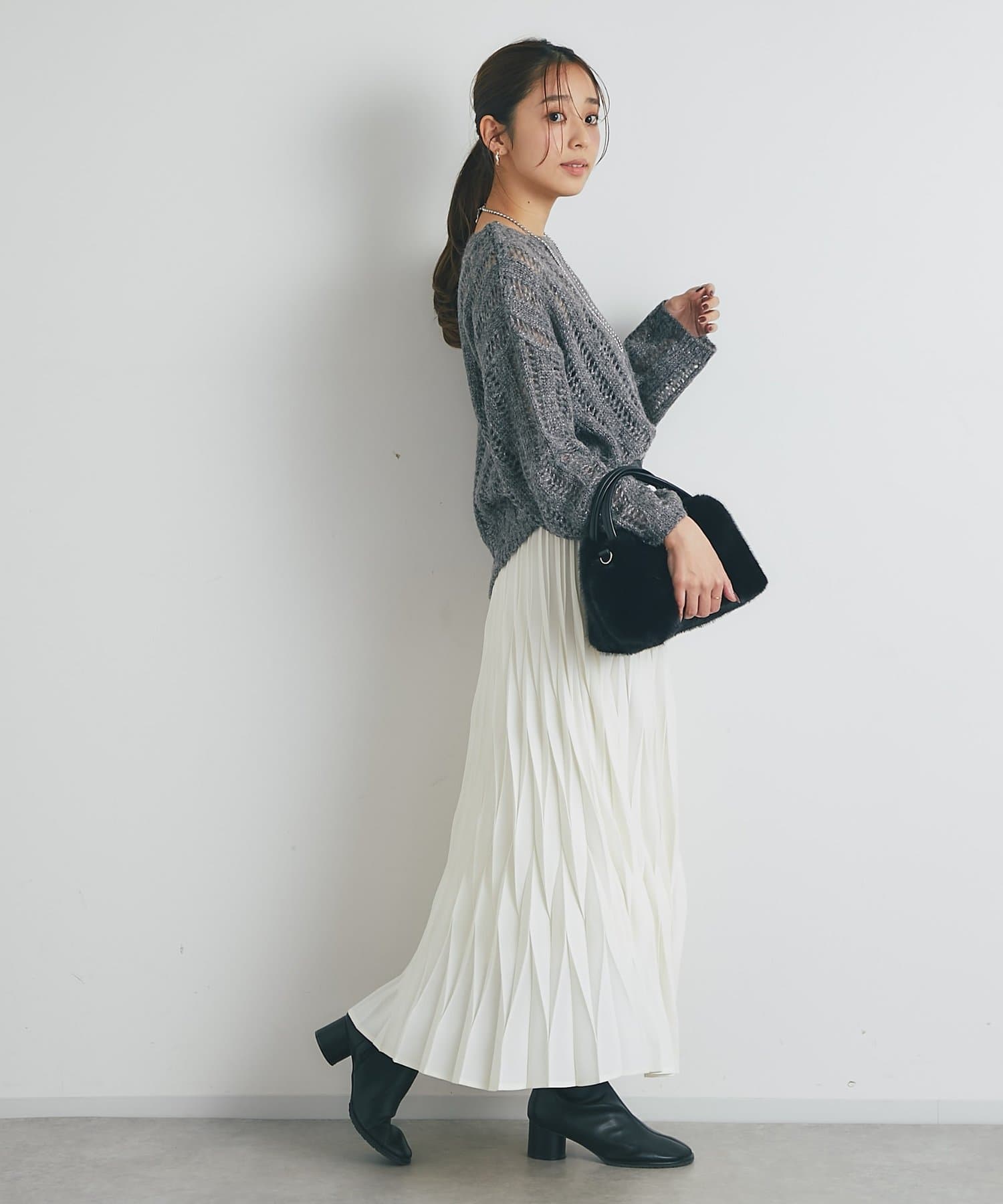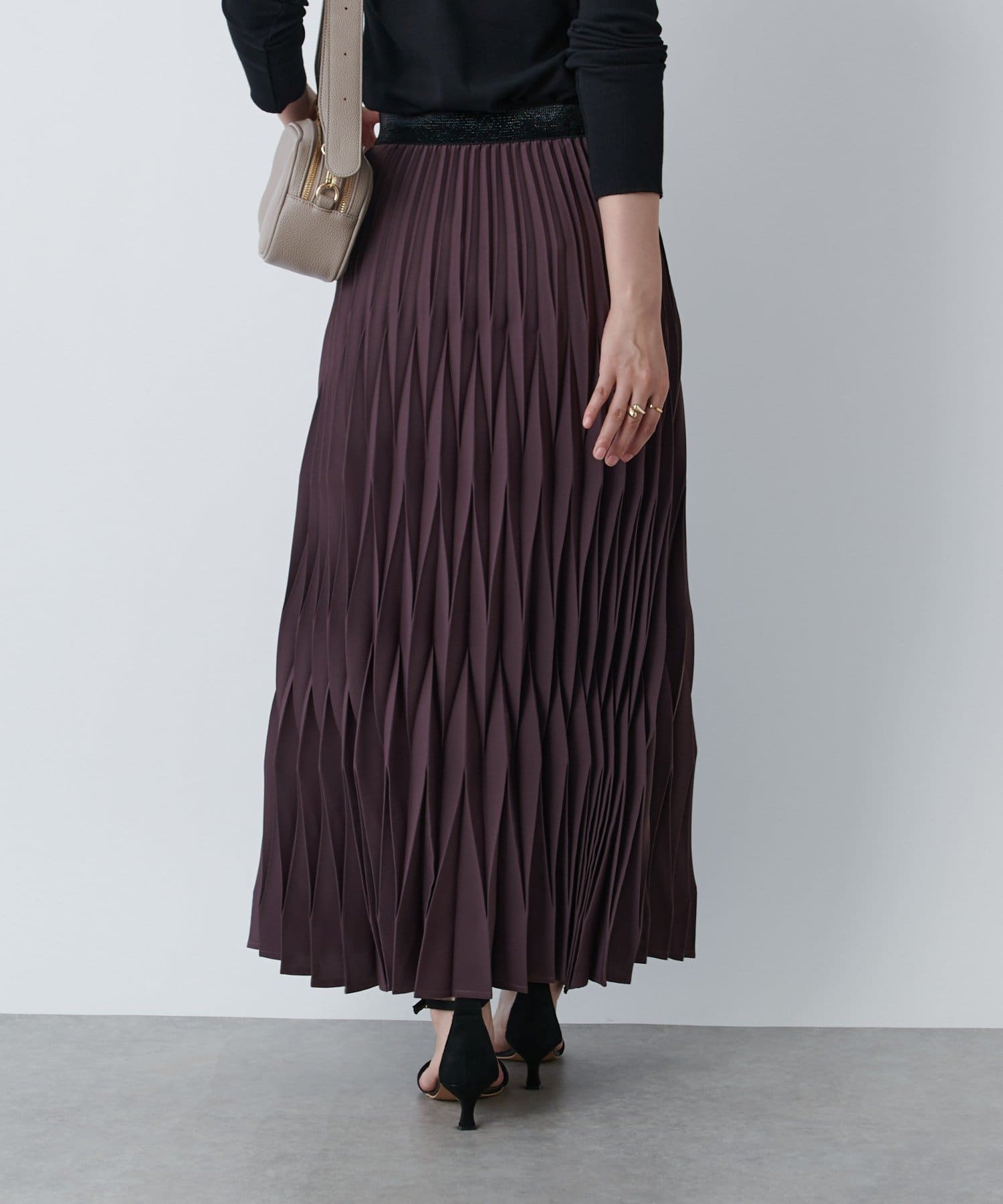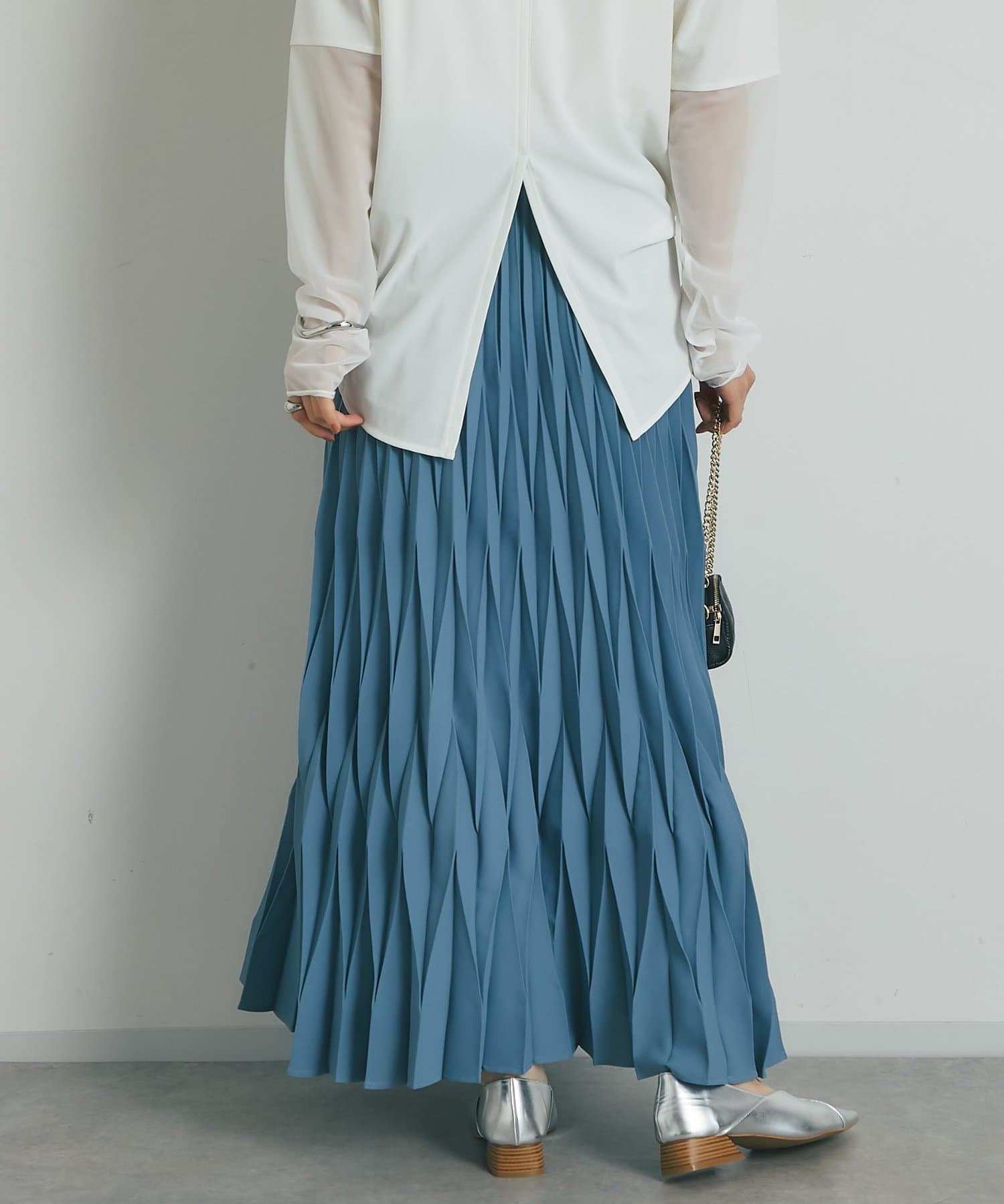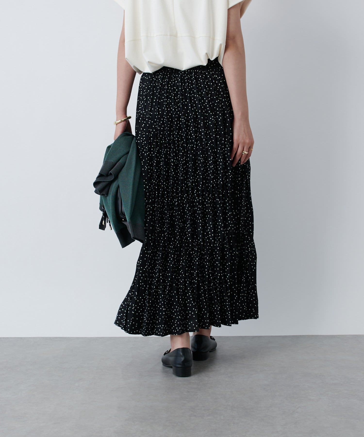 ・軽やかな動きのあるプリーツ素材で大人かわいいを演出。