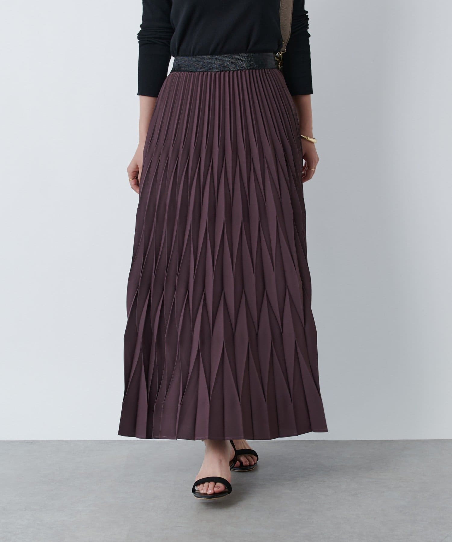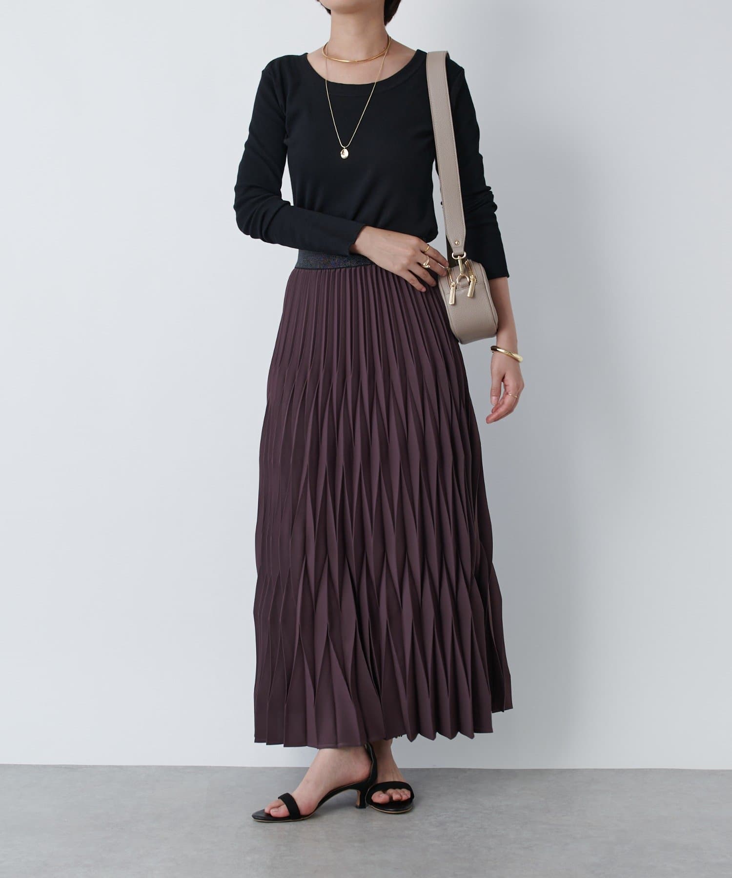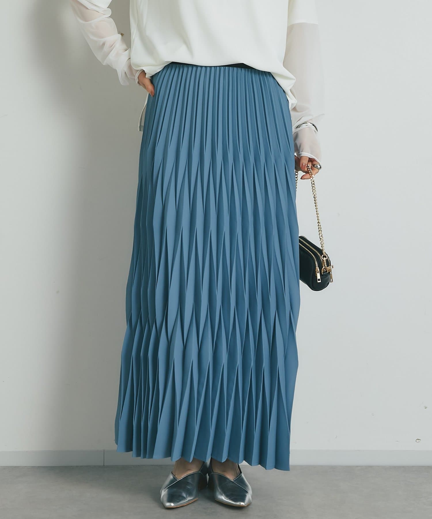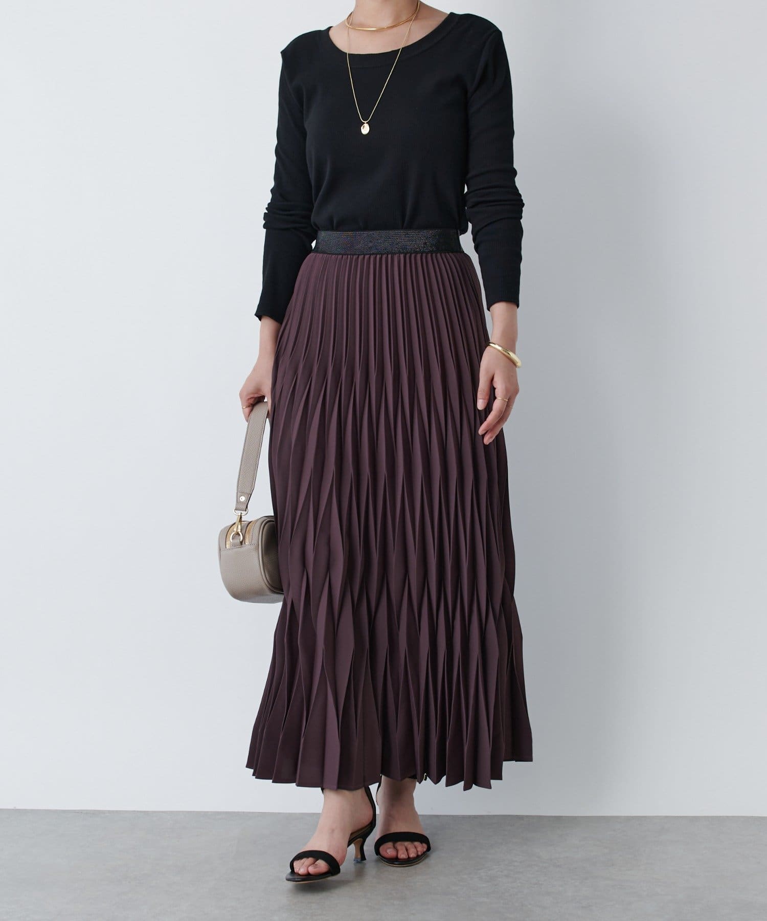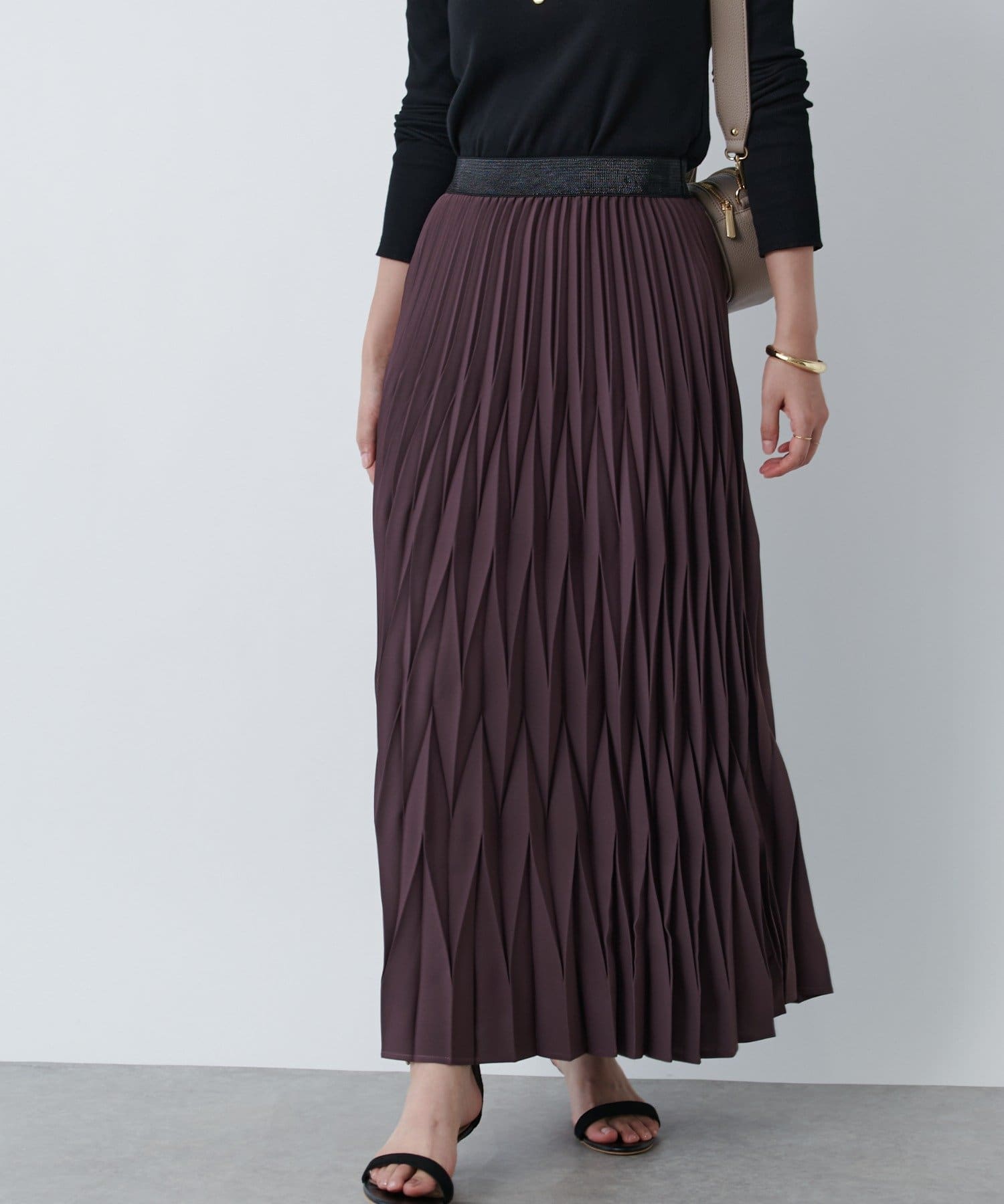 ・軽やかな動きのあるプリーツ素材で大人かわいいを演出。