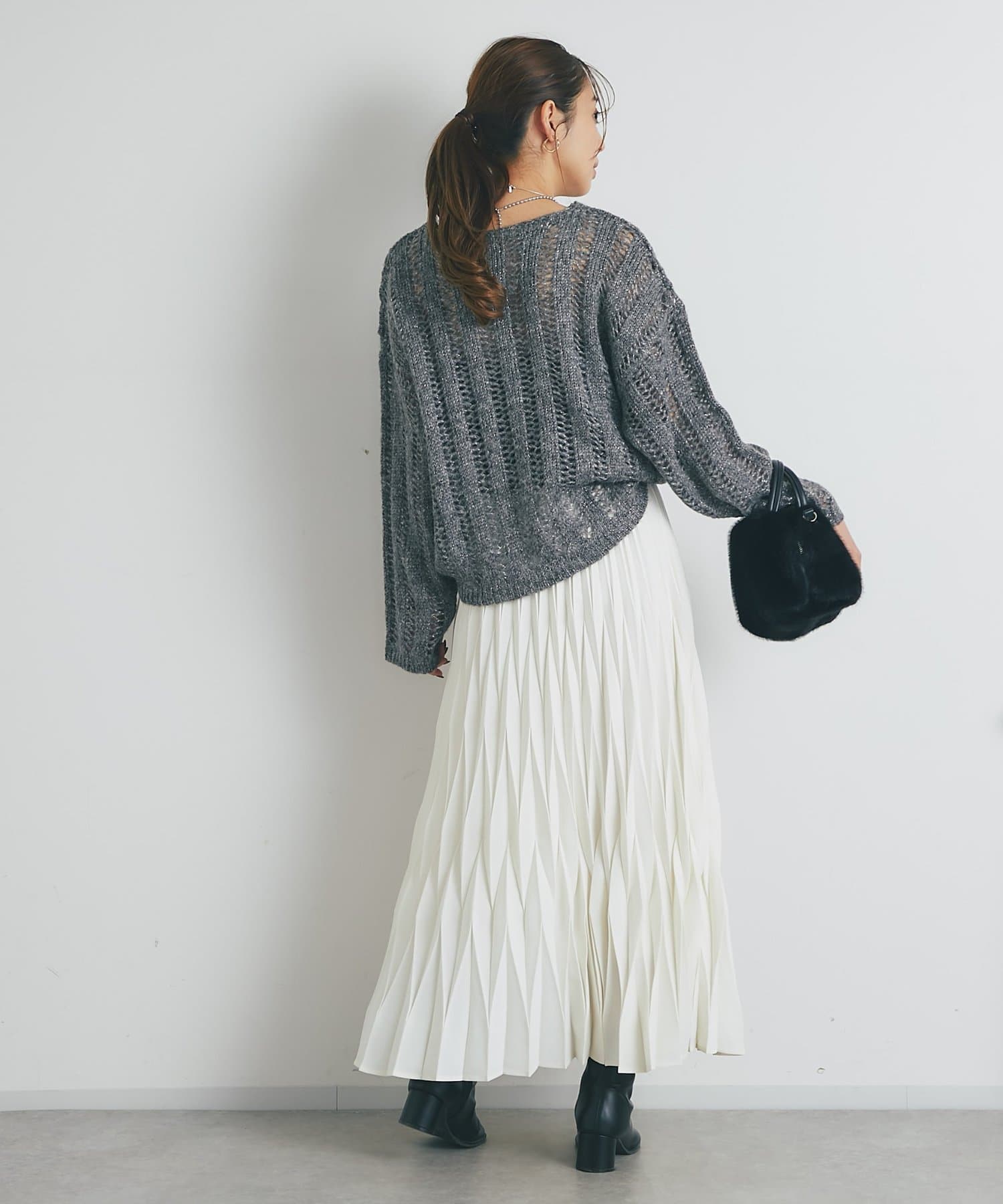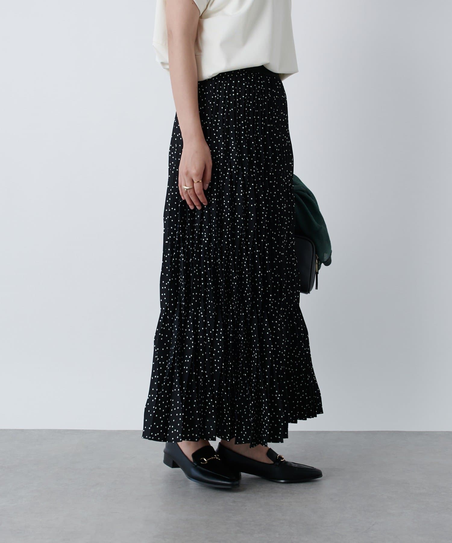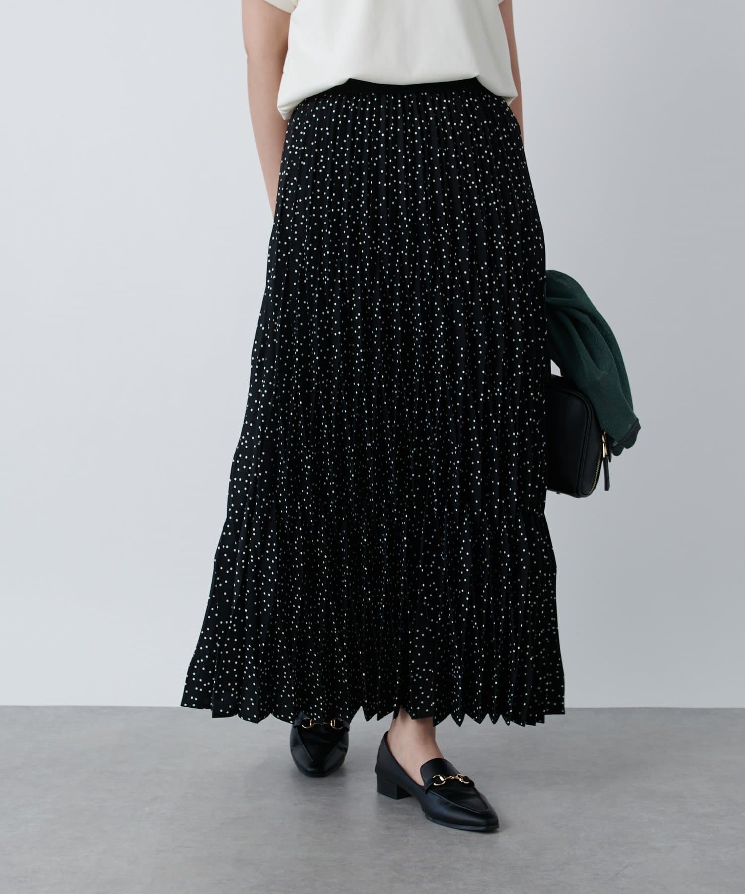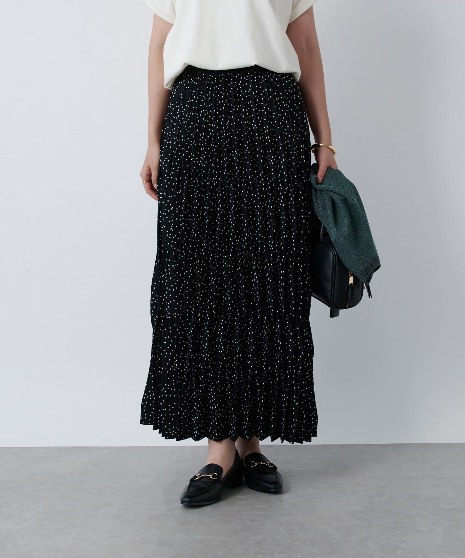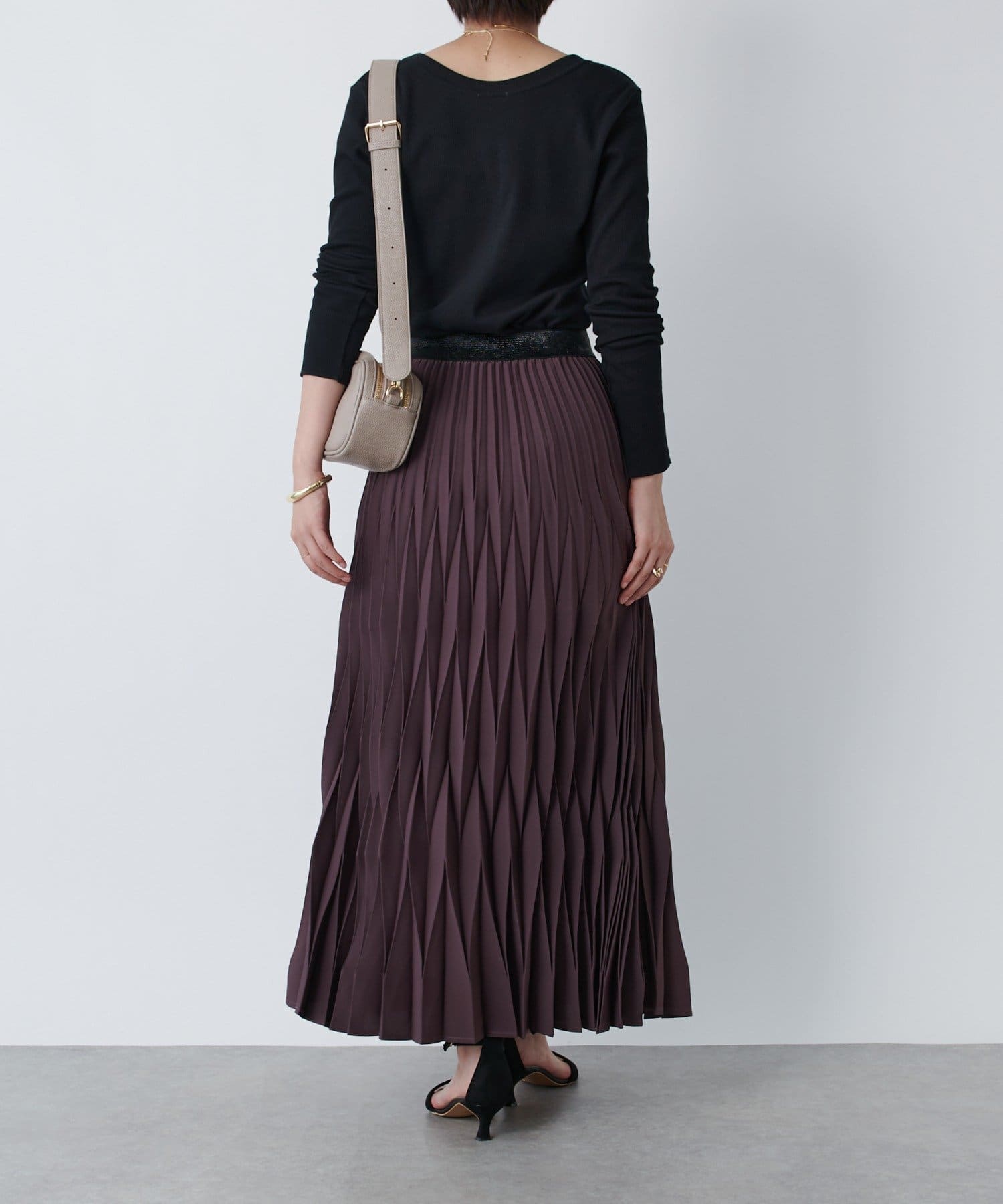 ・軽やかな動きのあるプリーツ素材で大人かわいいを演出。