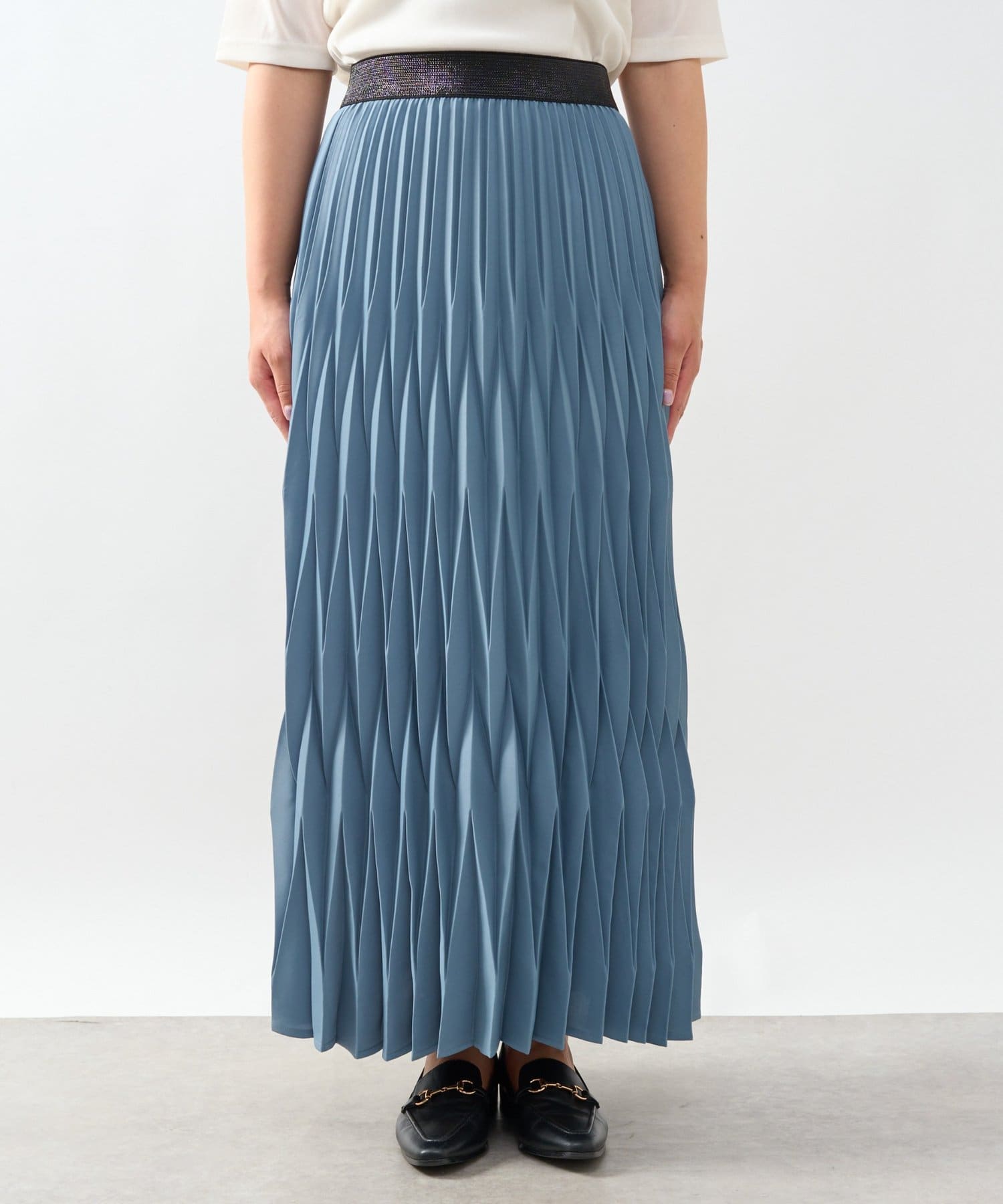 《ウエスト総ゴム・上品見え◎》デシンプリーツスカート