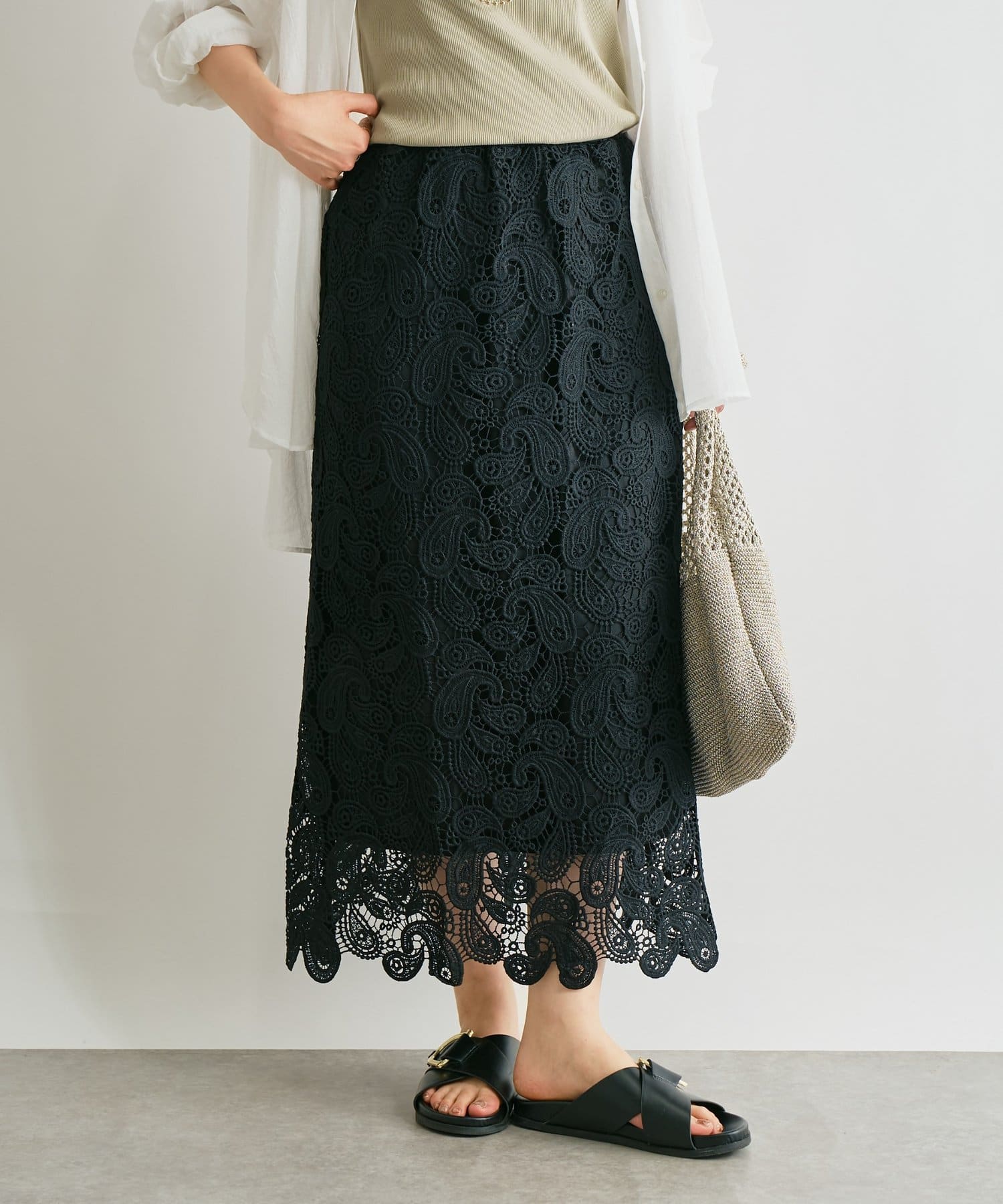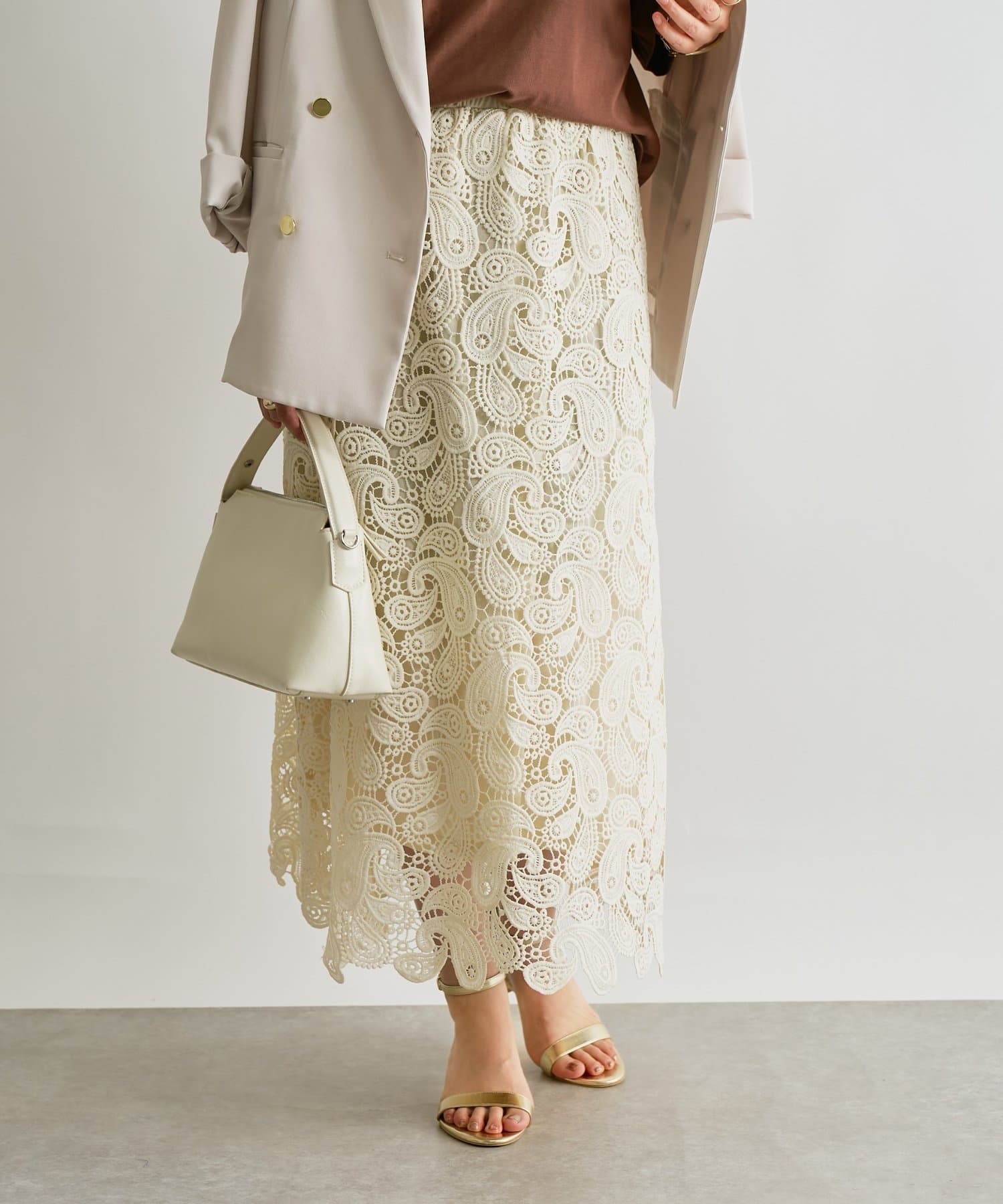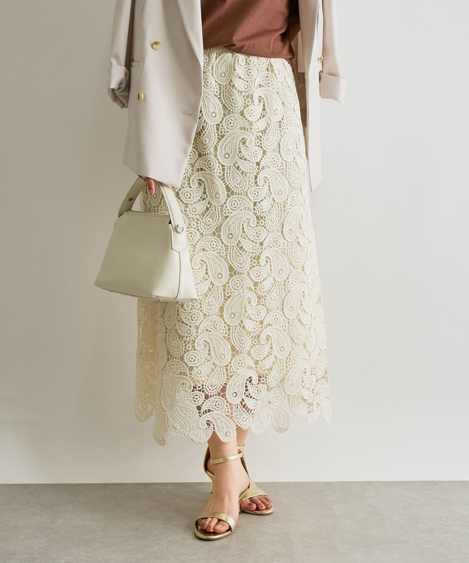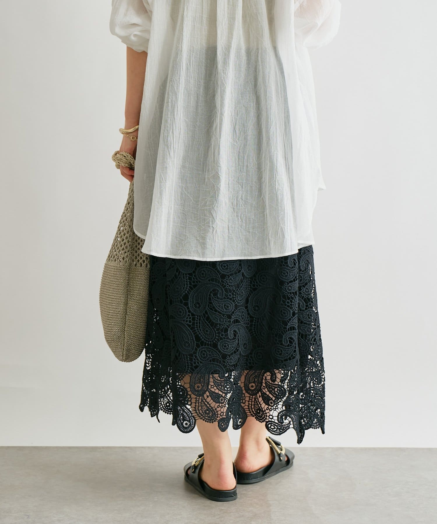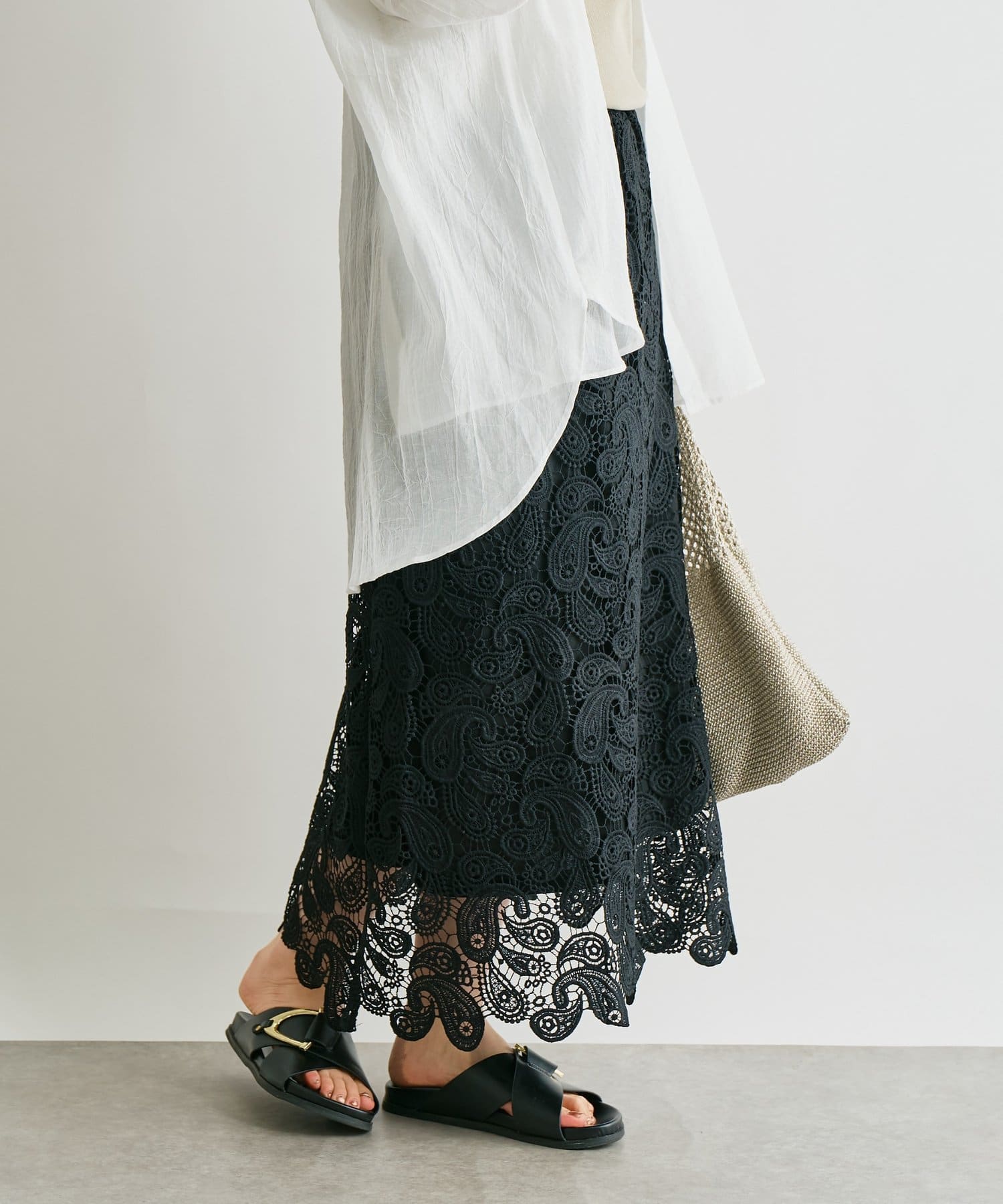 ・立体的な表情で洒落感を生み出すケミカルレースを使用したスカート◎