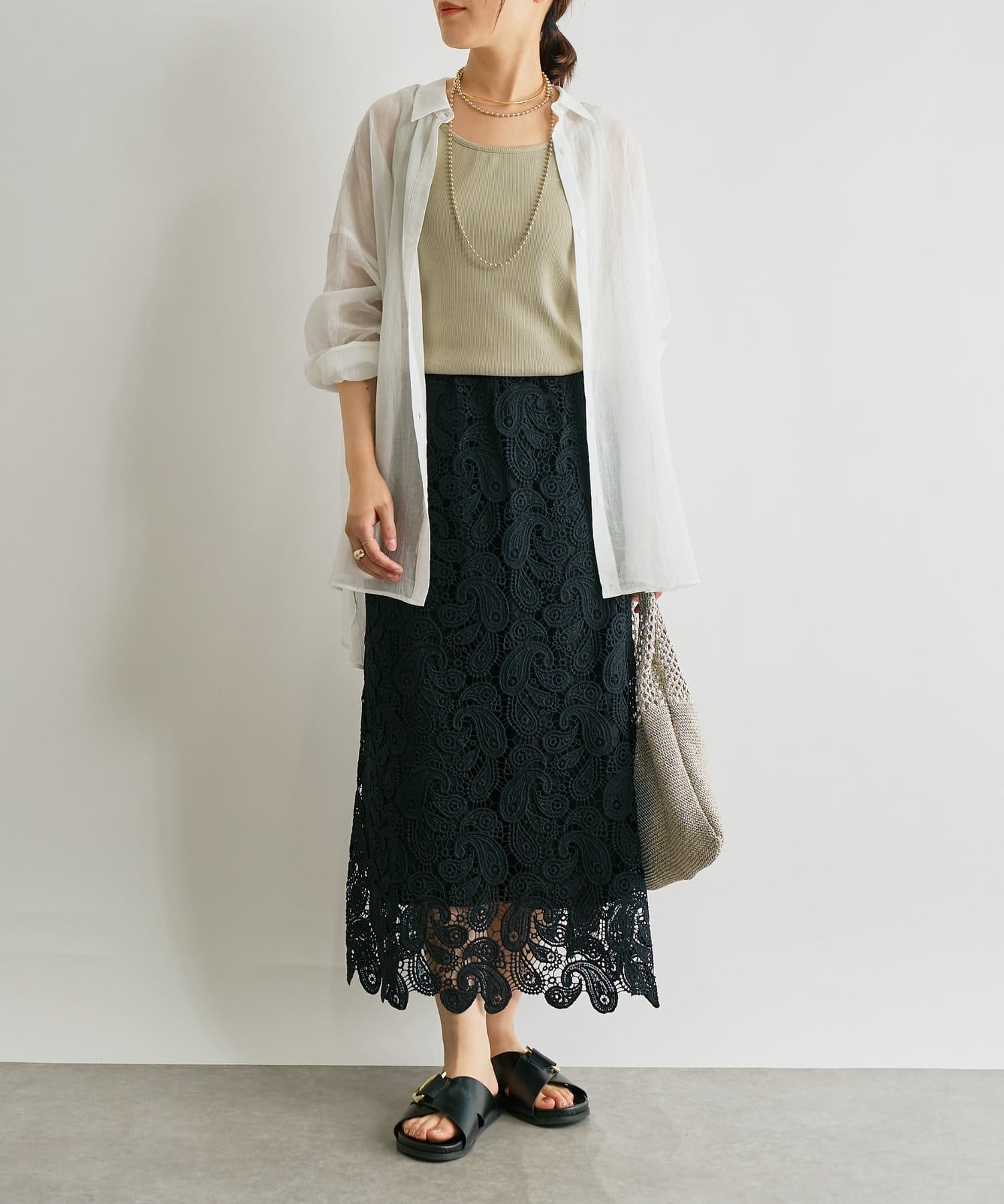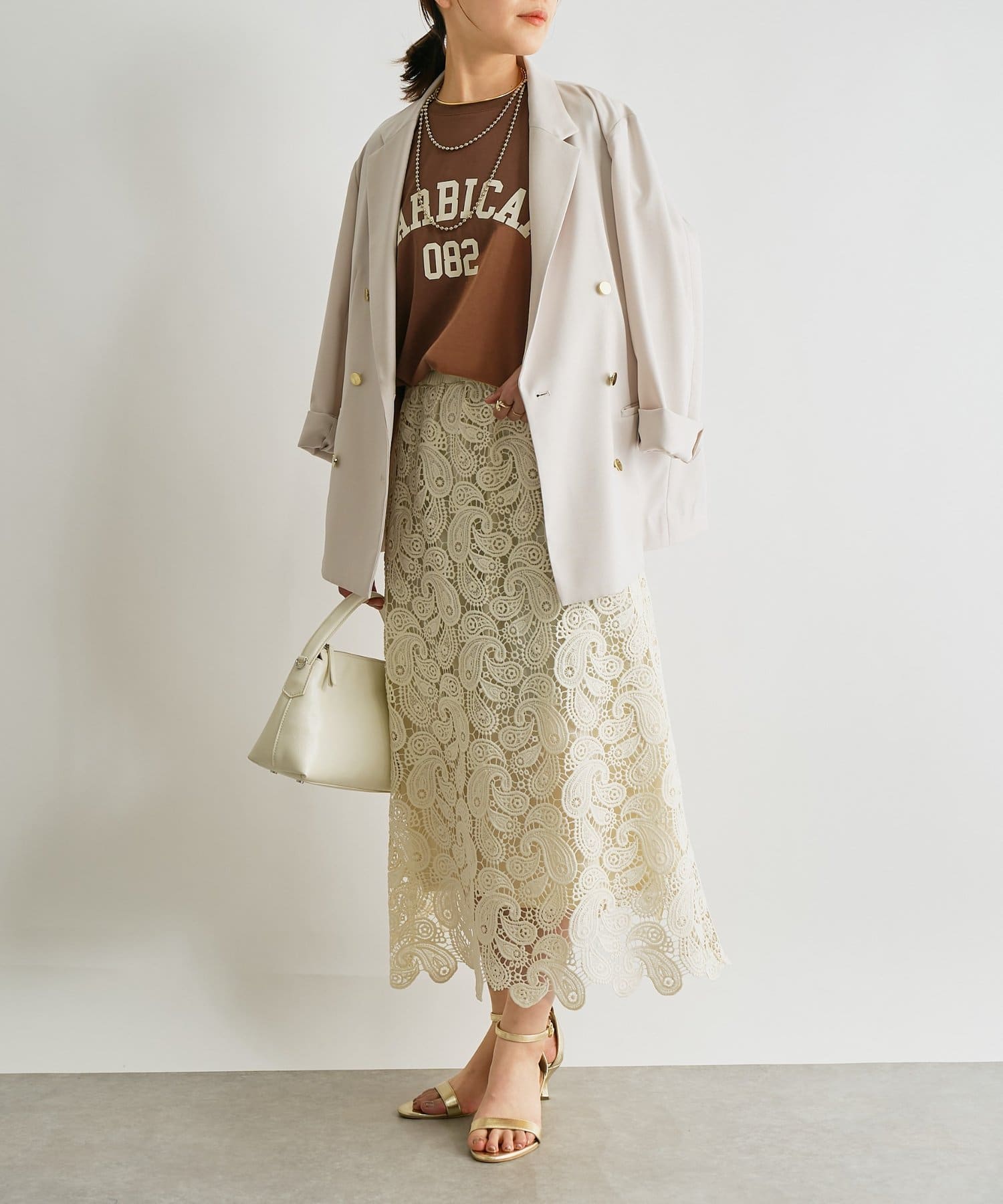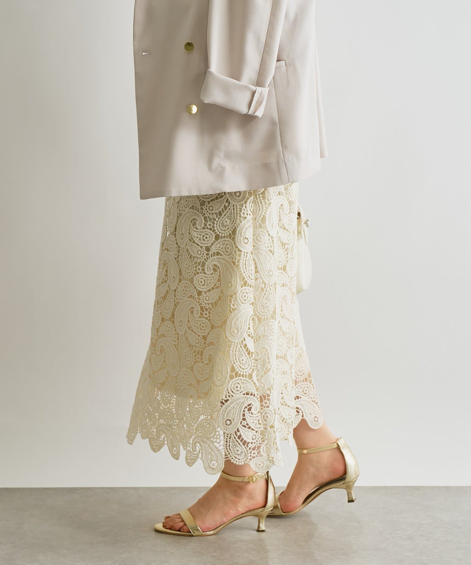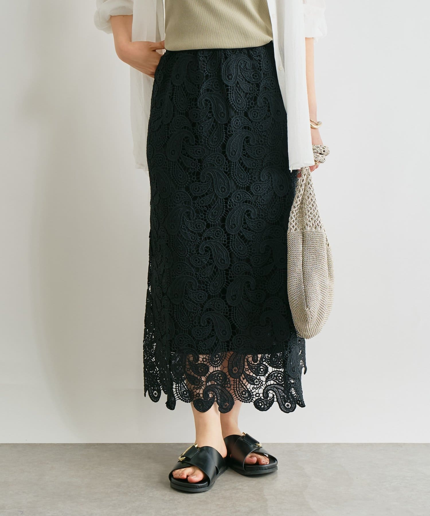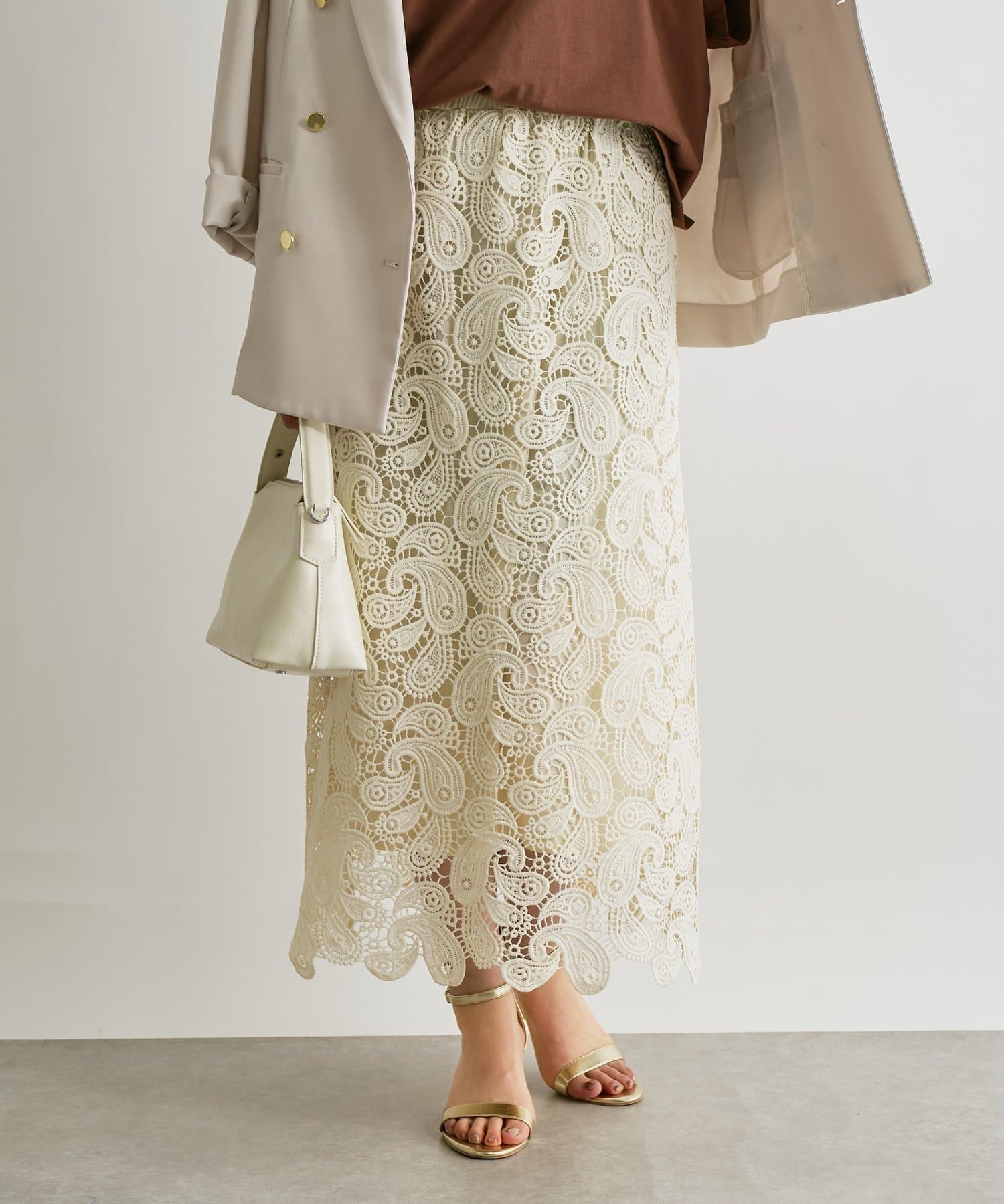 ・立体的な表情で洒落感を生み出すケミカルレースを使用したスカート◎