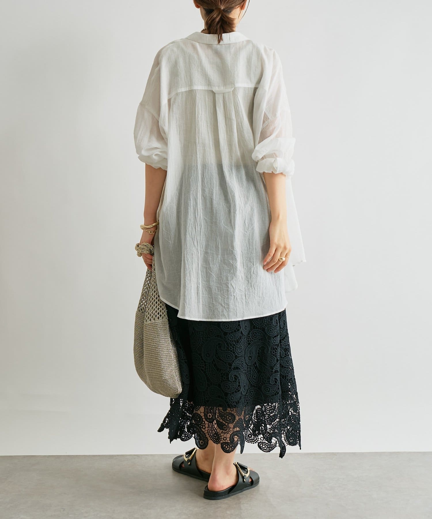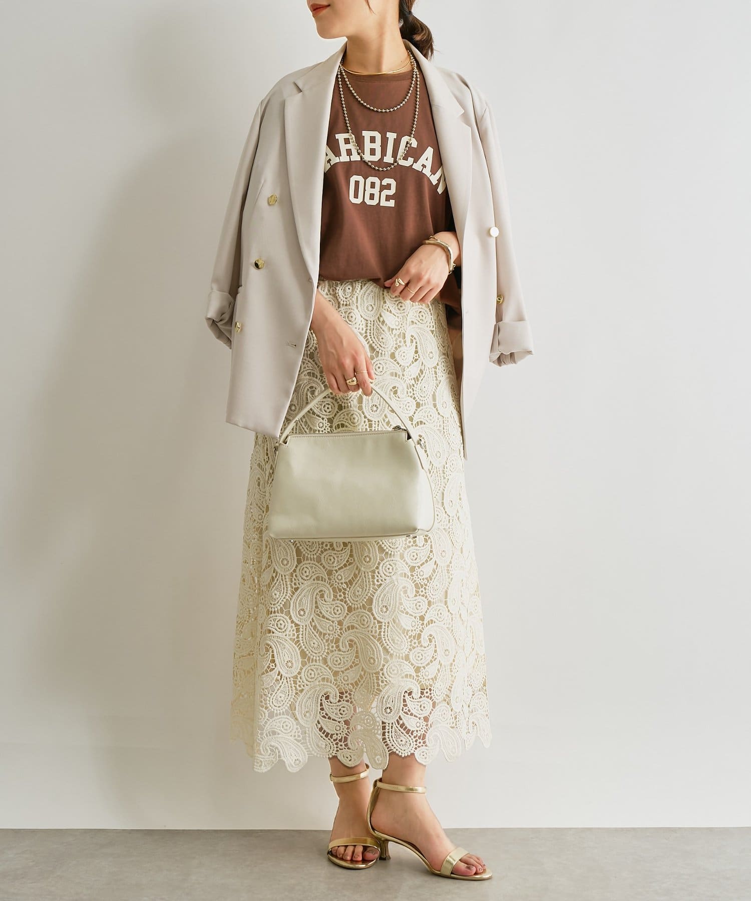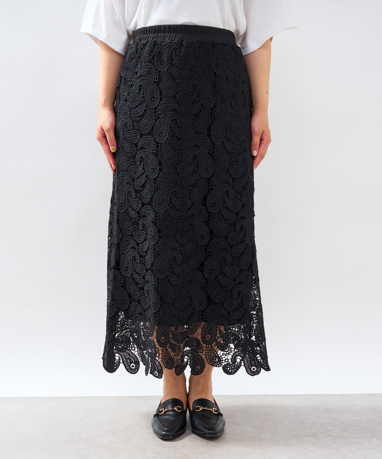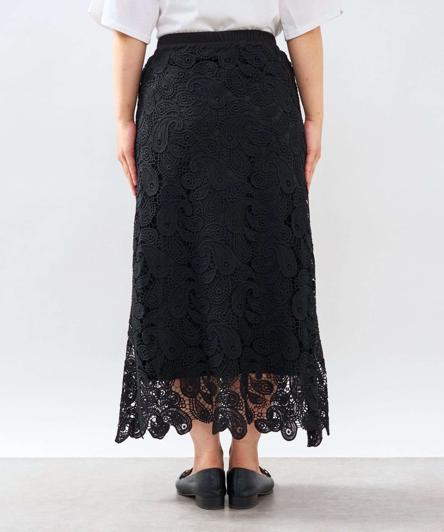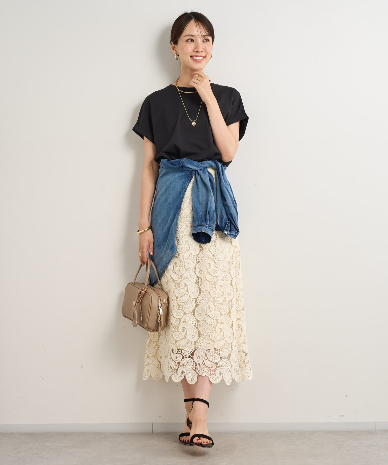 ・立体的な表情で洒落感を生み出すケミカルレースを使用したスカート◎