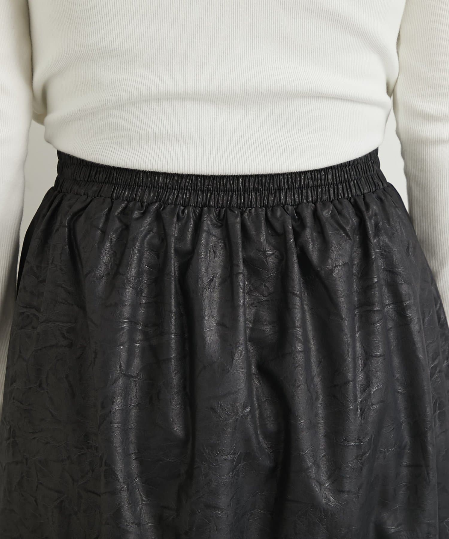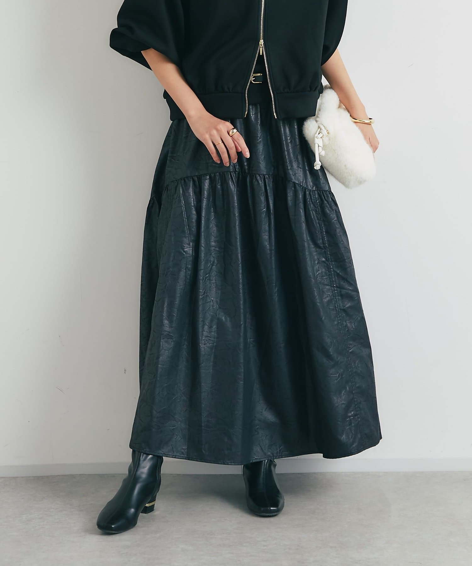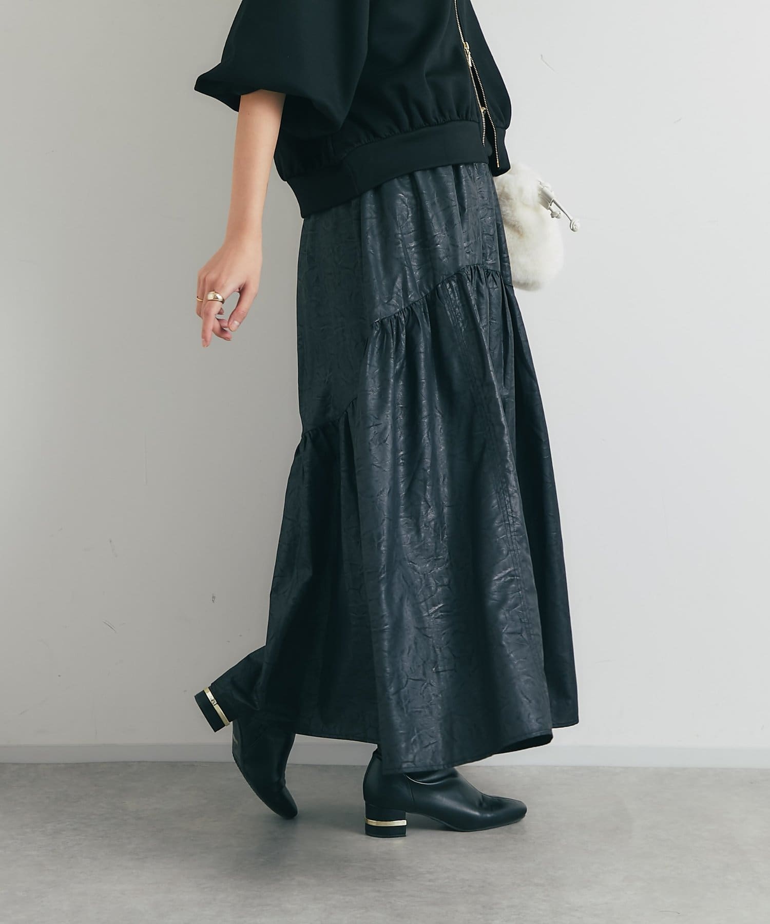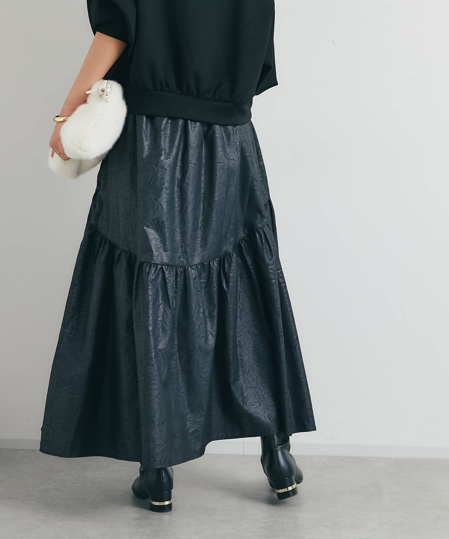 ・一見するとハードな印象のスカートですが、身に纏うと驚くほどしなやかで、女性らしさを引き立ててくれる特別な一枚。