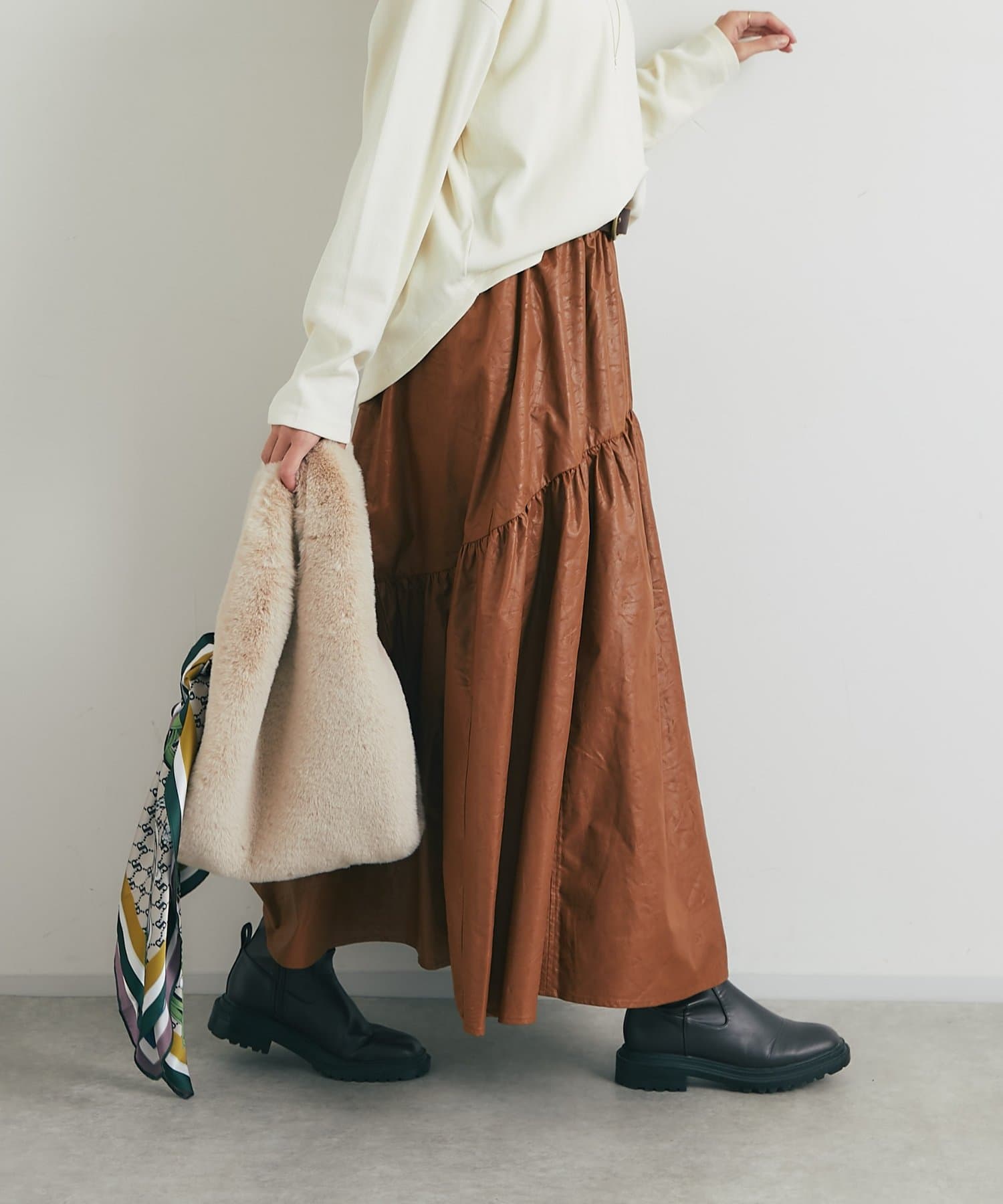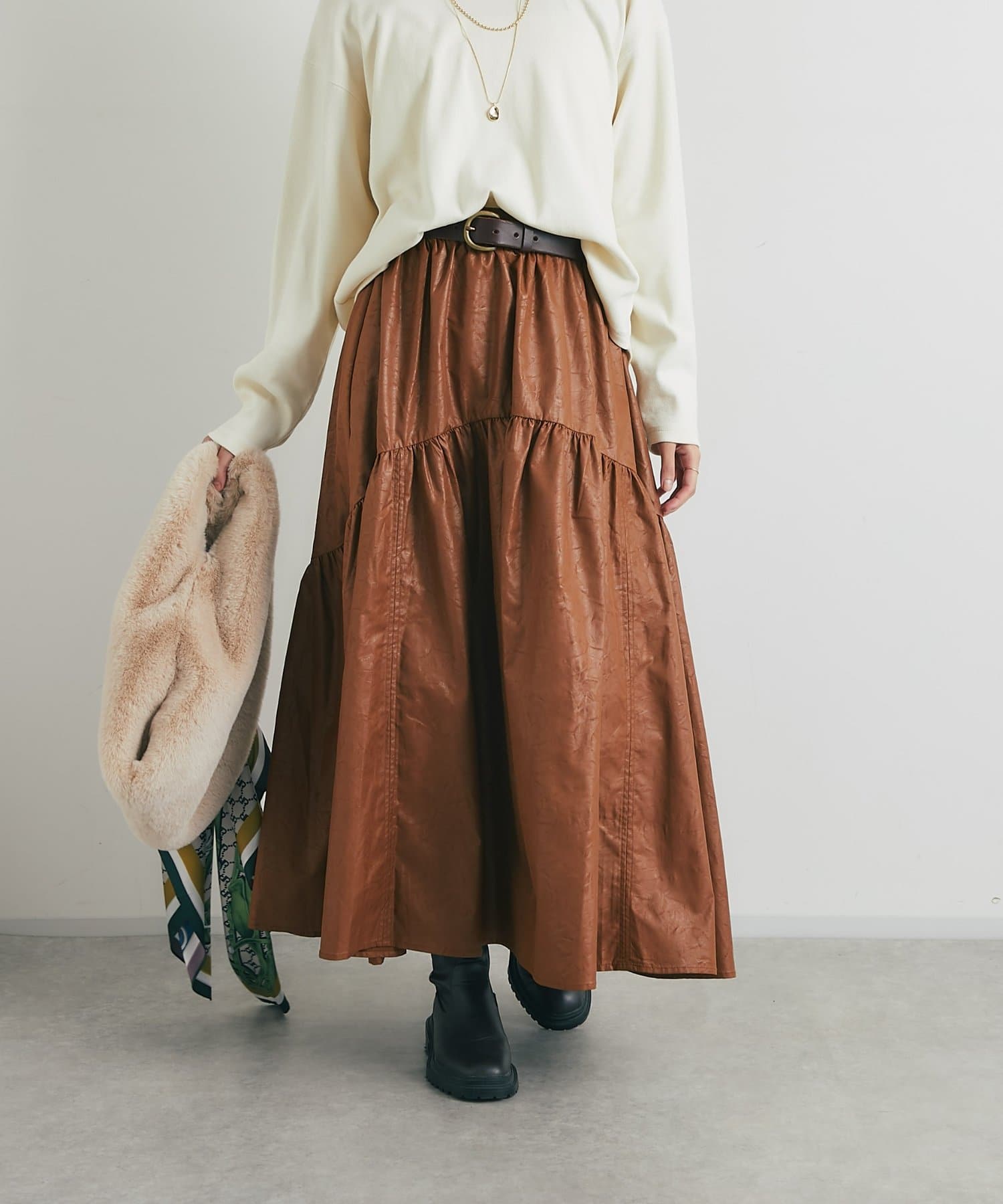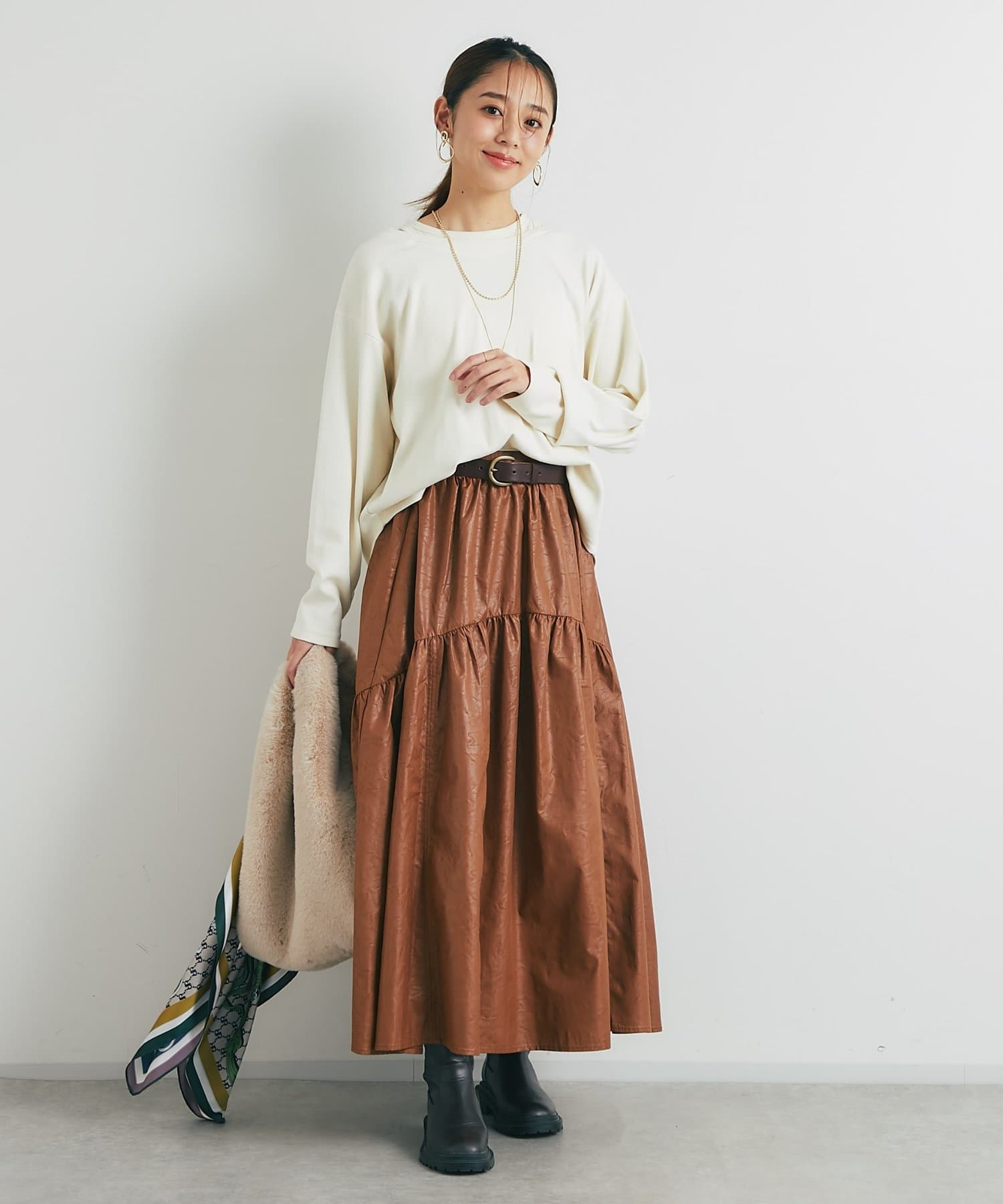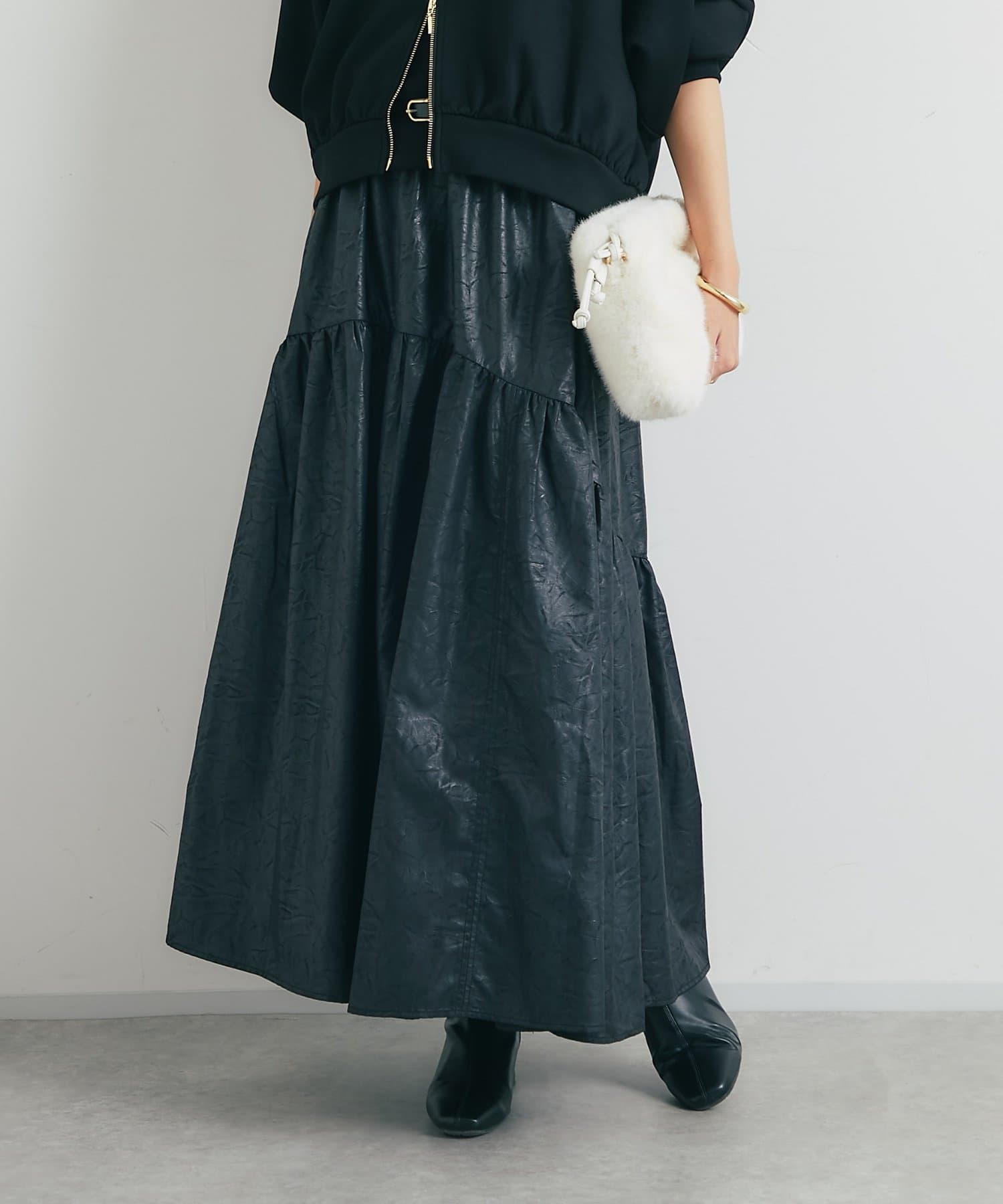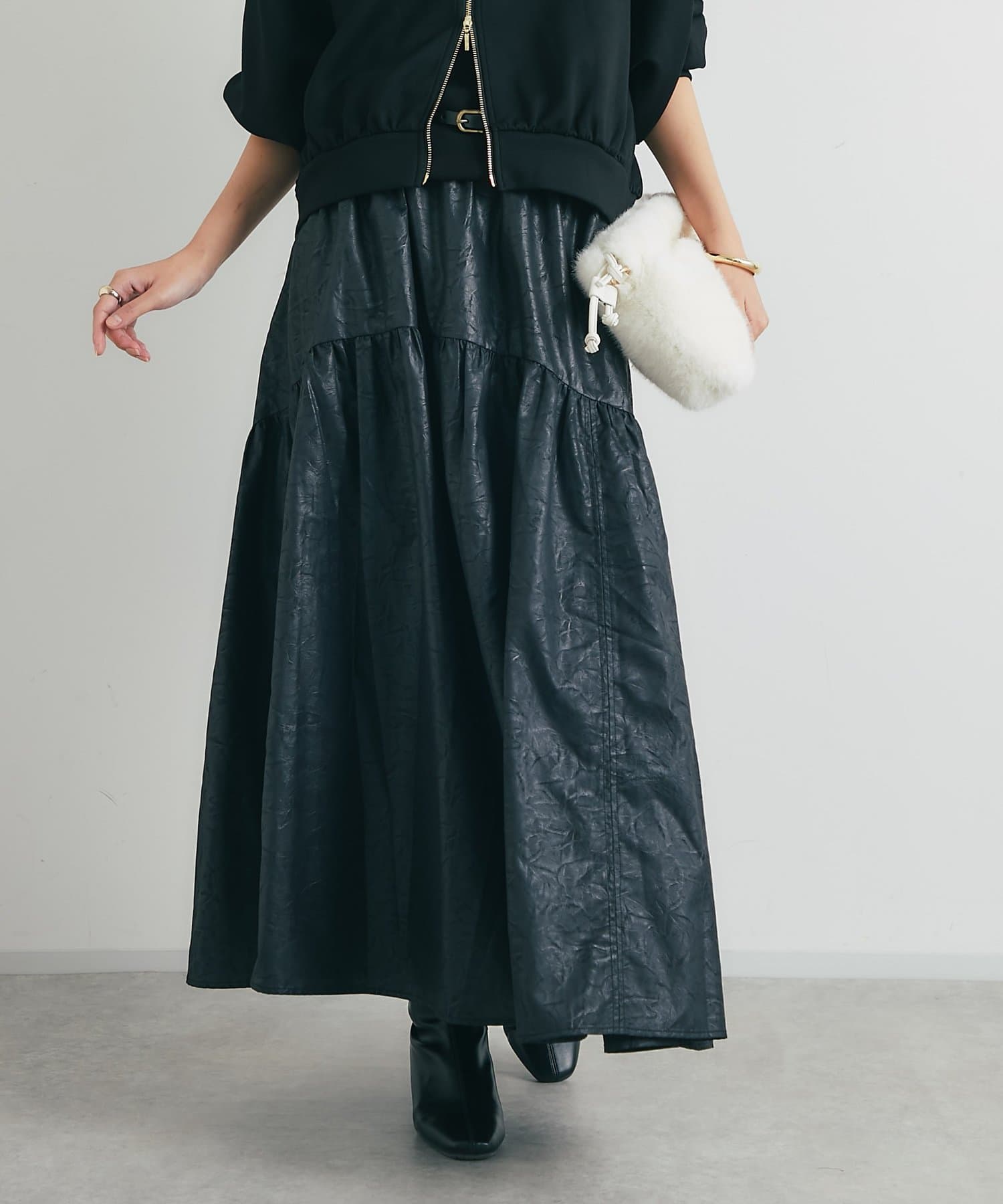 ・一見するとハードな印象のスカートですが、身に纏うと驚くほどしなやかで、女性らしさを引き立ててくれる特別な一枚。