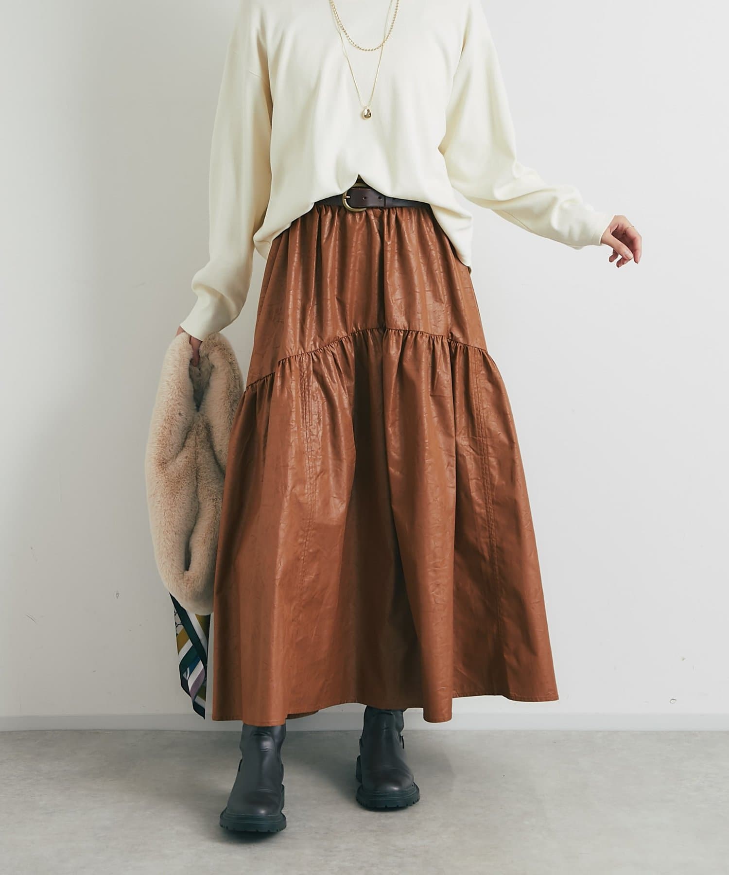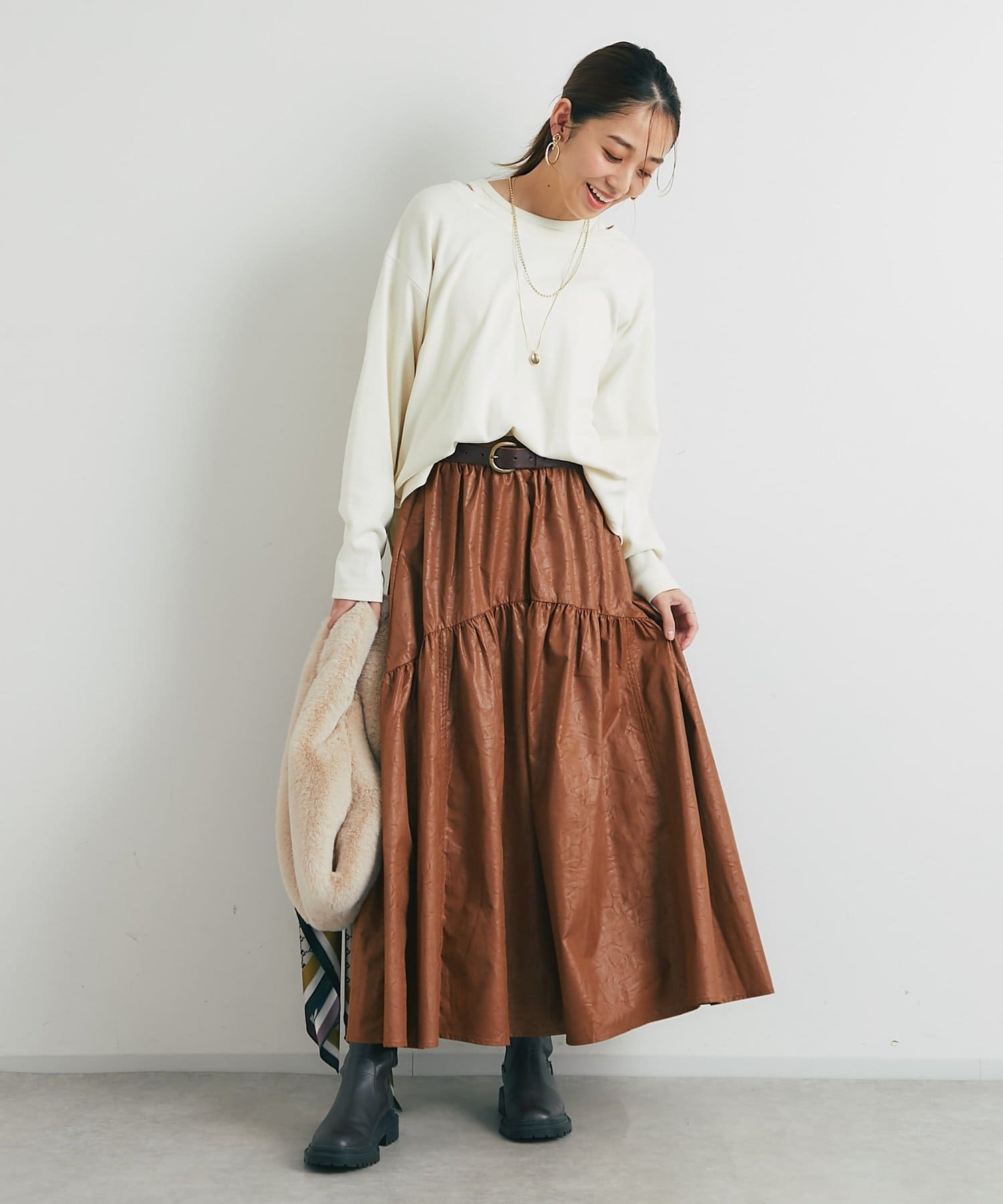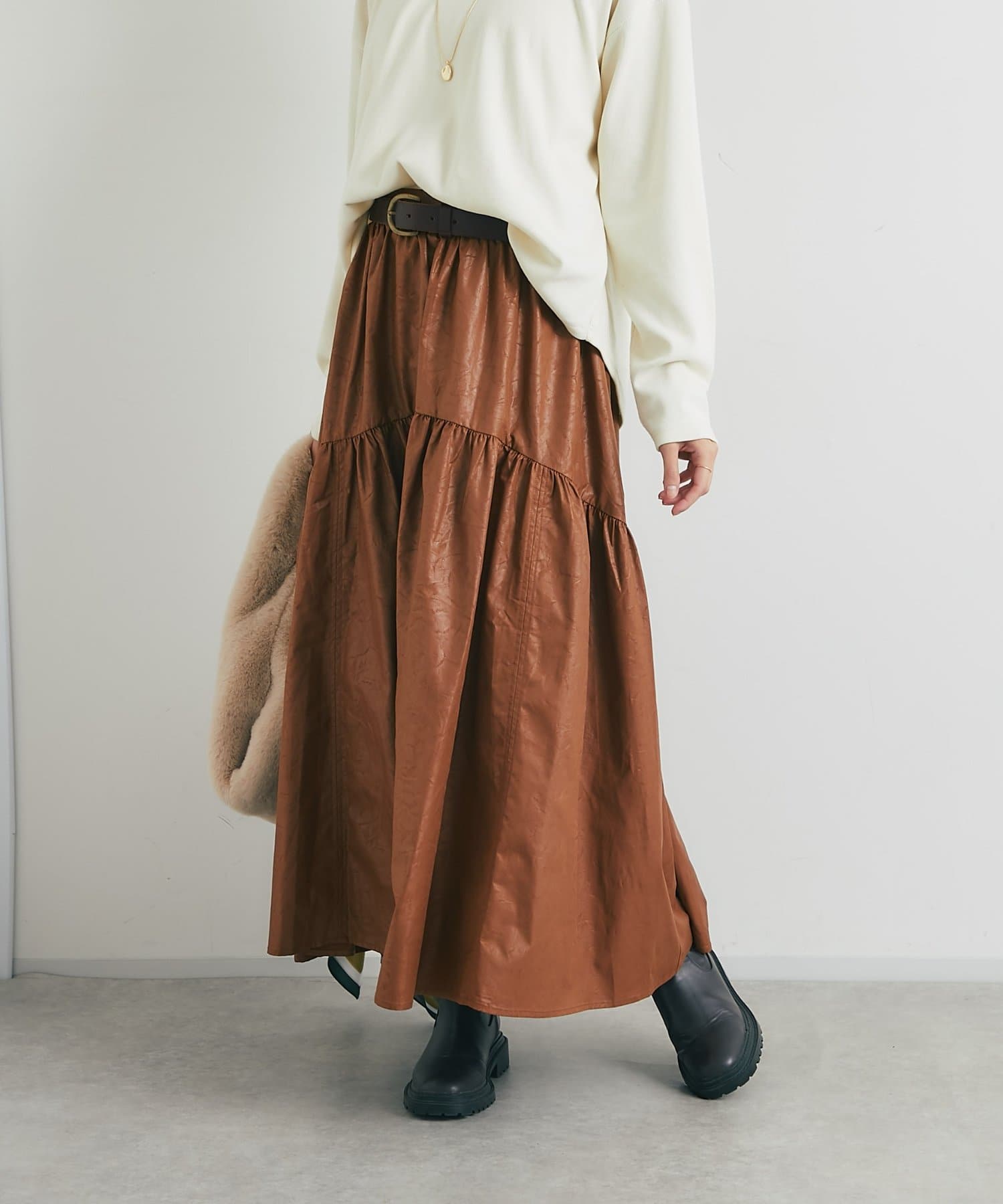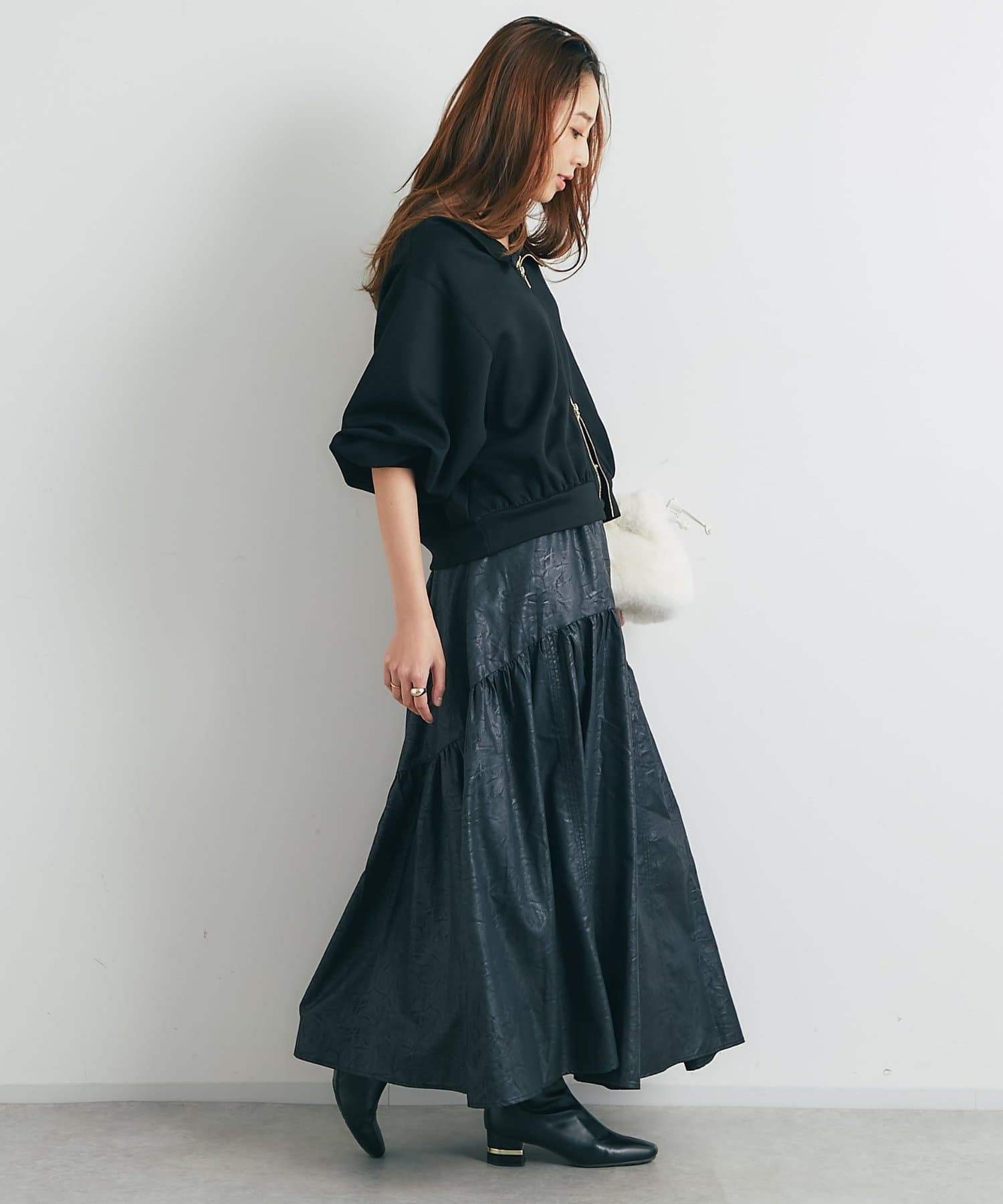 ・一見するとハードな印象のスカートですが、身に纏うと驚くほどしなやかで、女性らしさを引き立ててくれる特別な一枚。