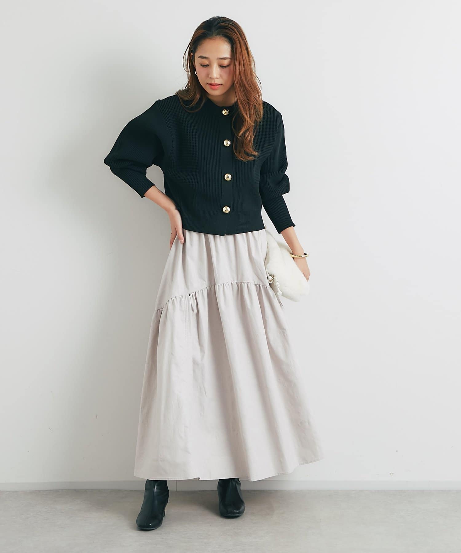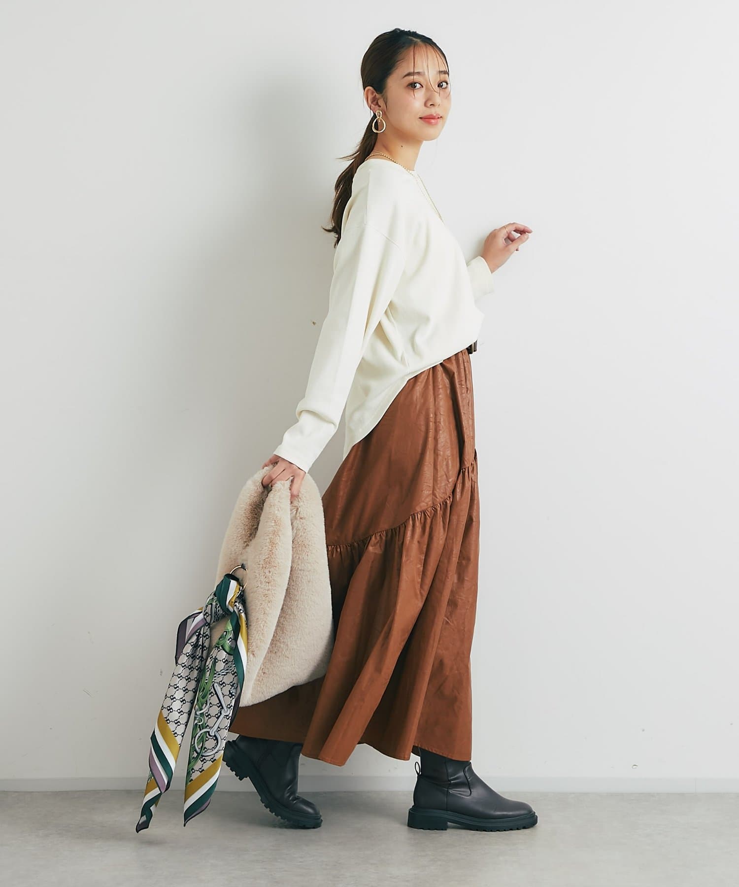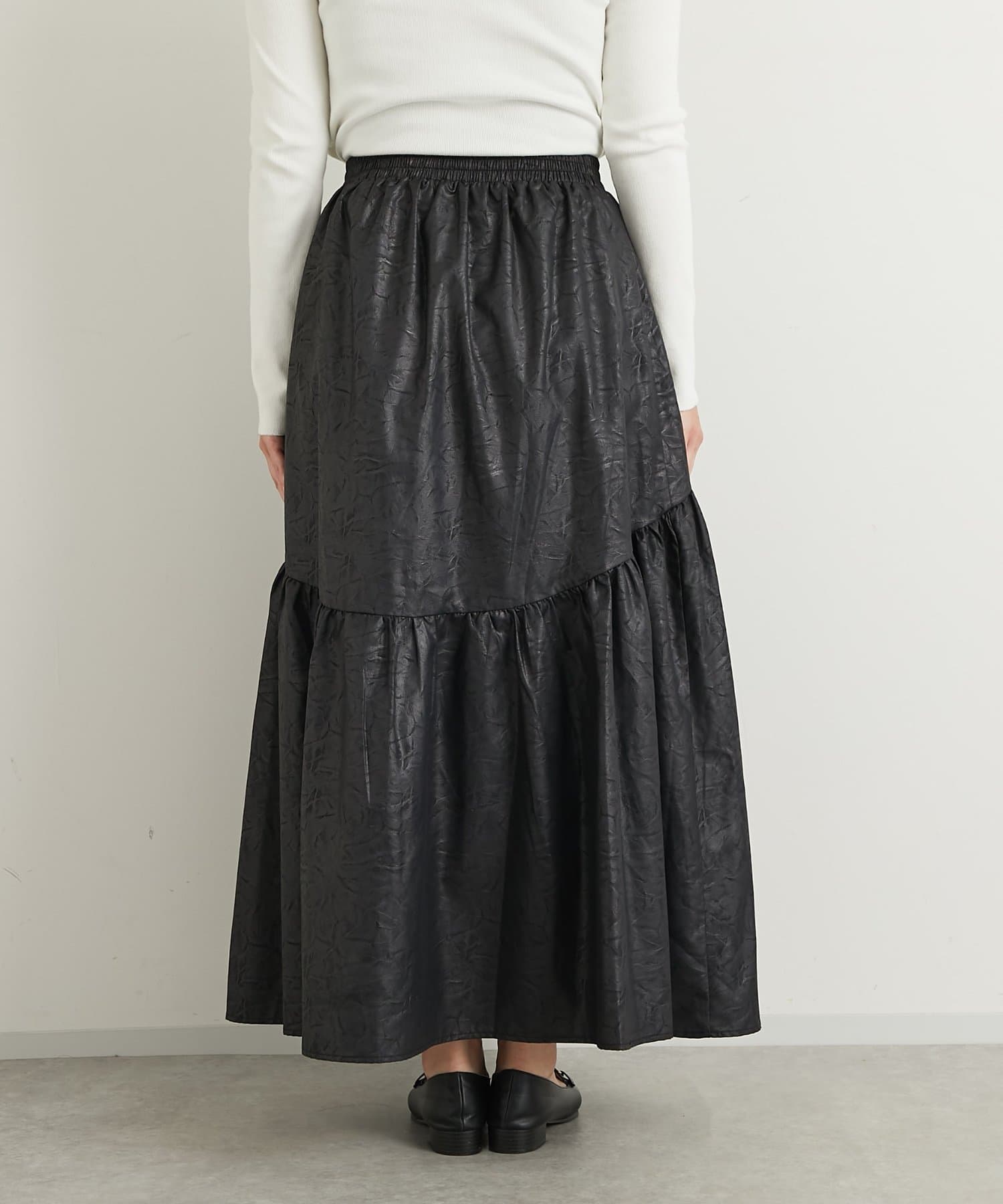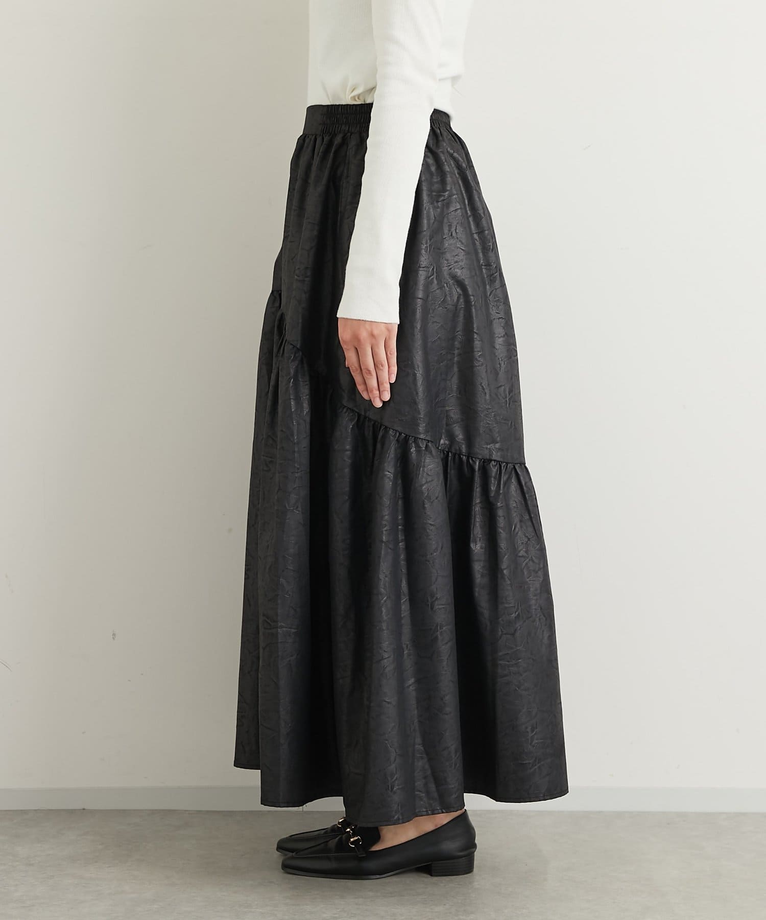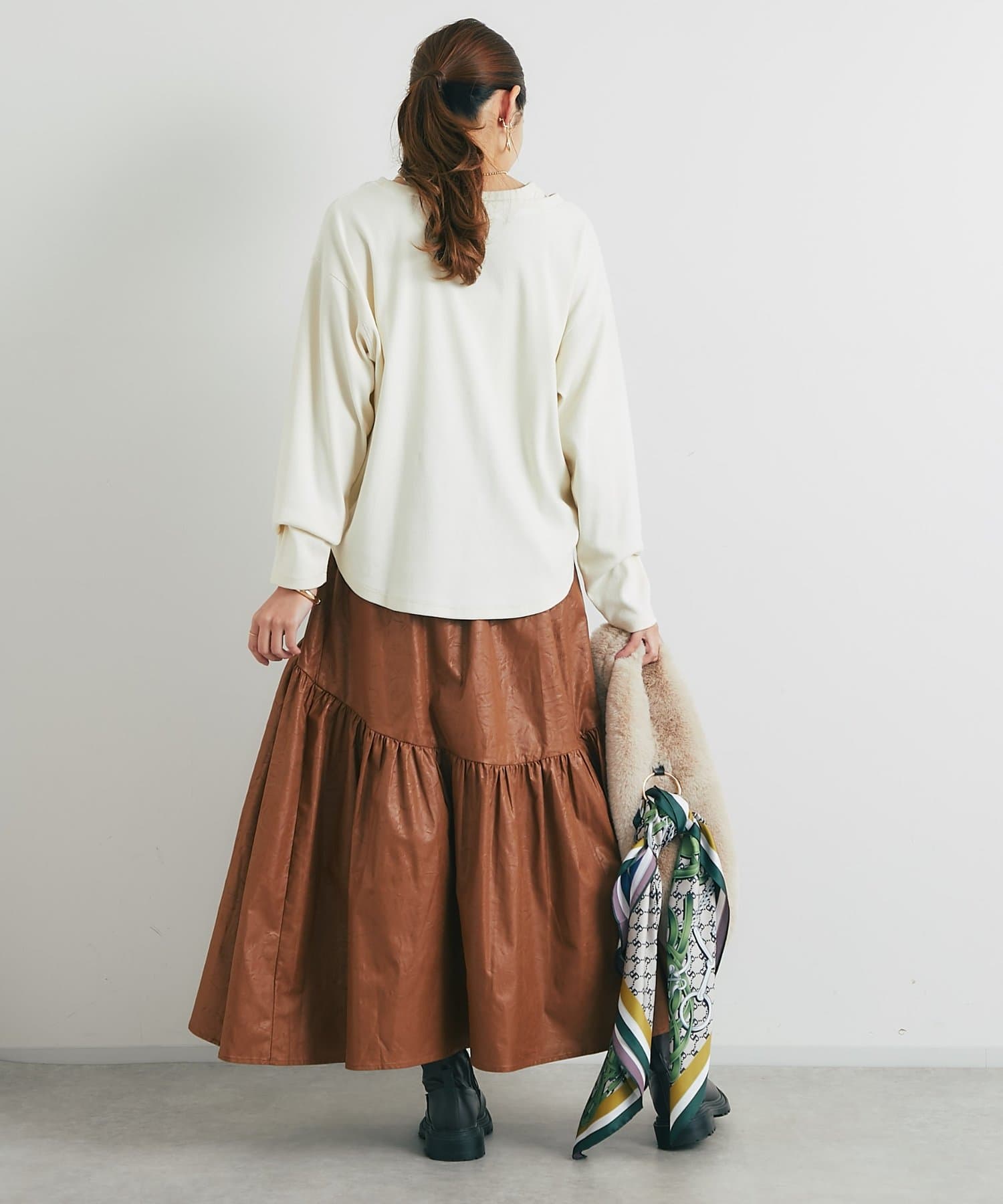 ・一見するとハードな印象のスカートですが、身に纏うと驚くほどしなやかで、女性らしさを引き立ててくれる特別な一枚。