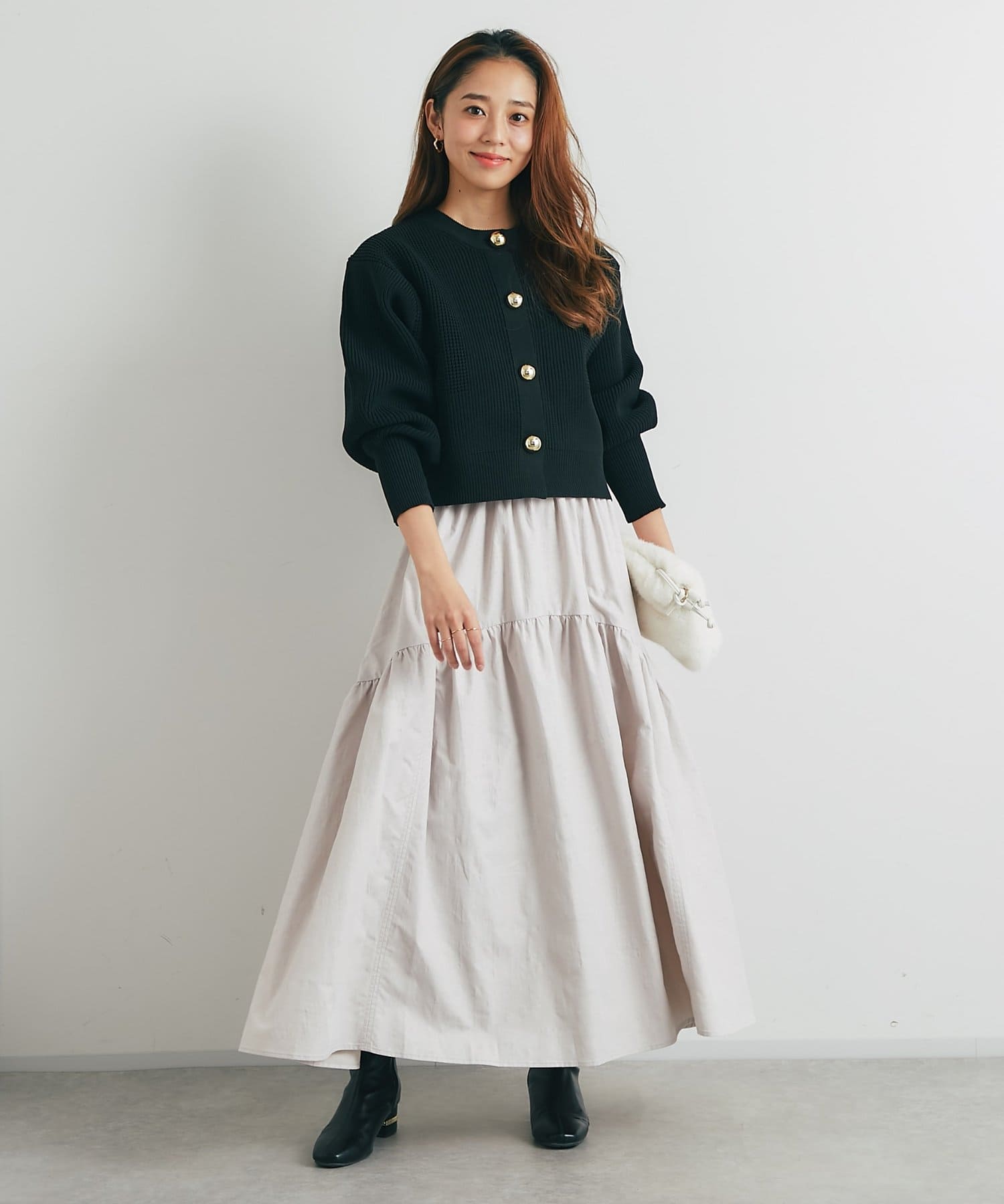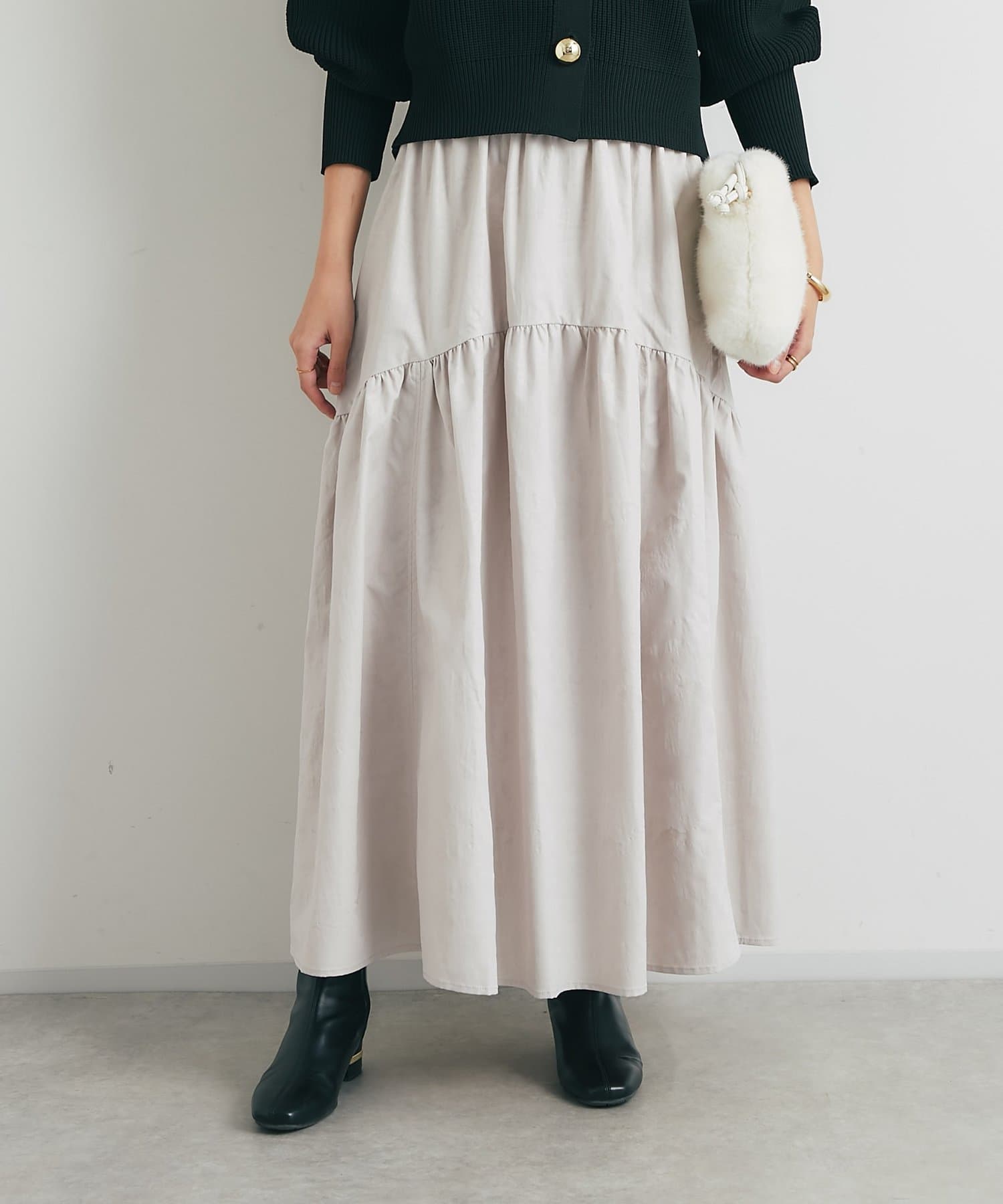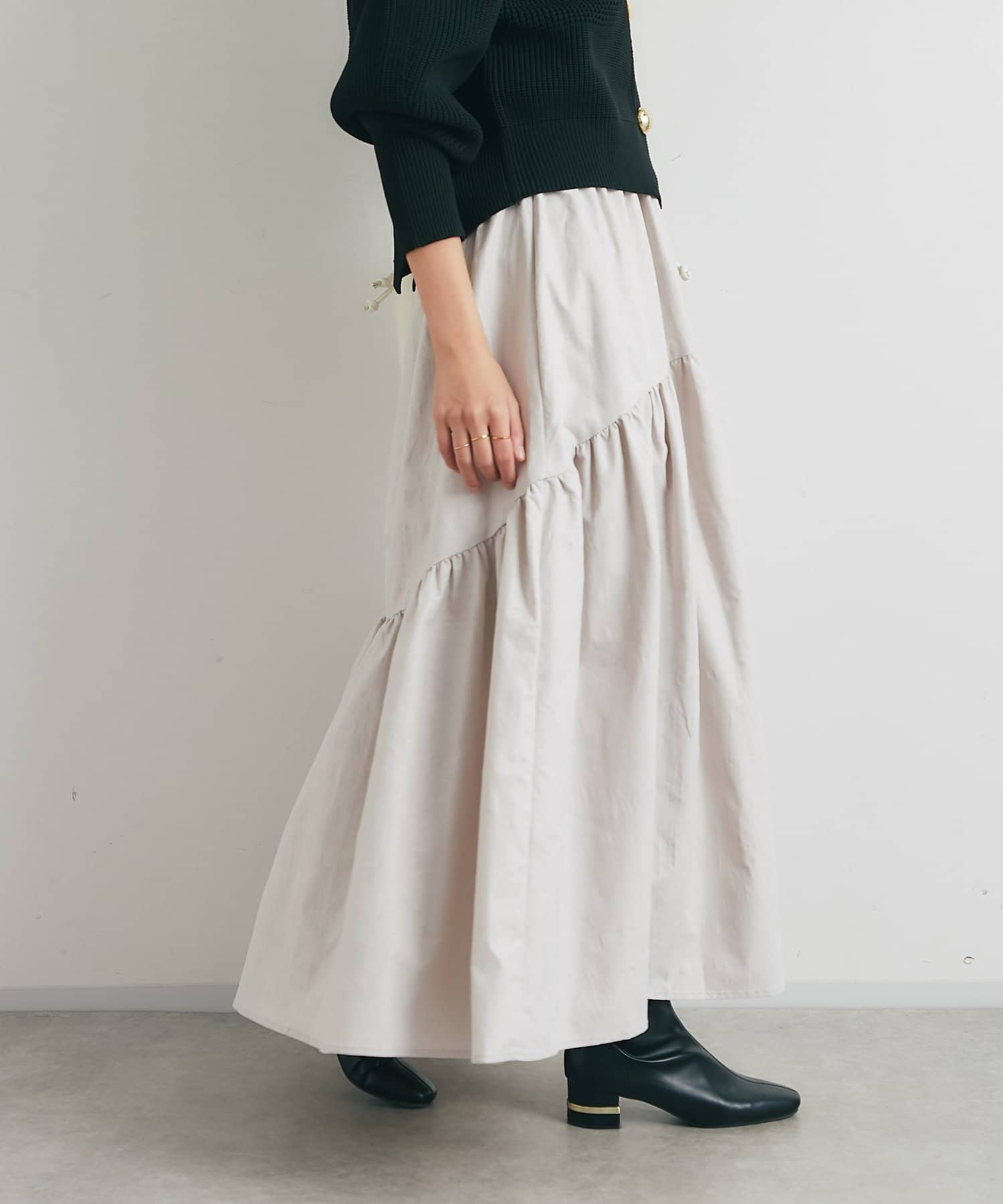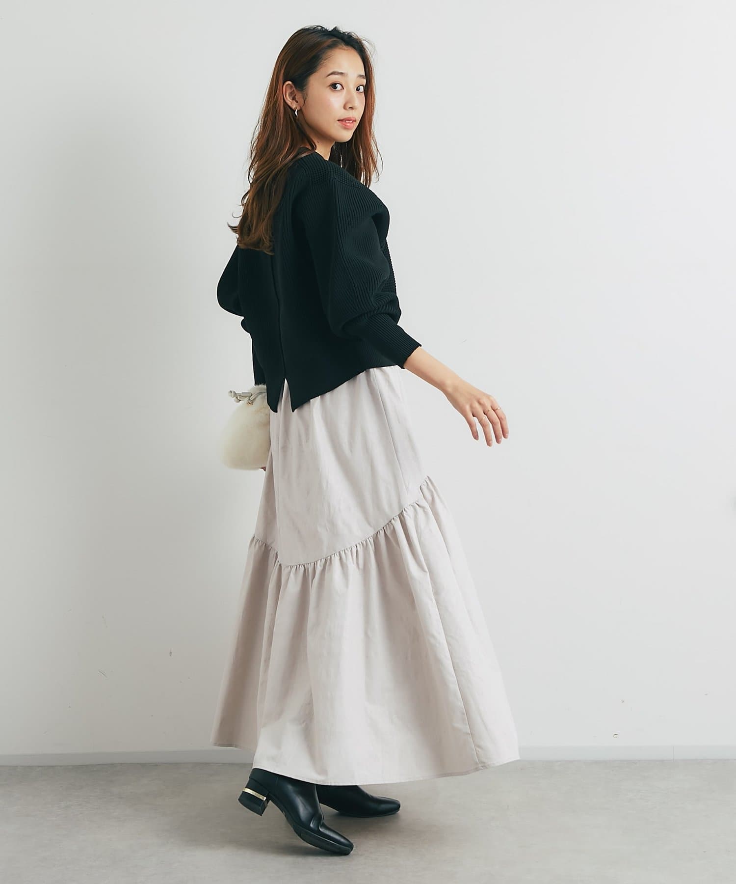 ・一見するとハードな印象のスカートですが、身に纏うと驚くほどしなやかで、女性らしさを引き立ててくれる特別な一枚。