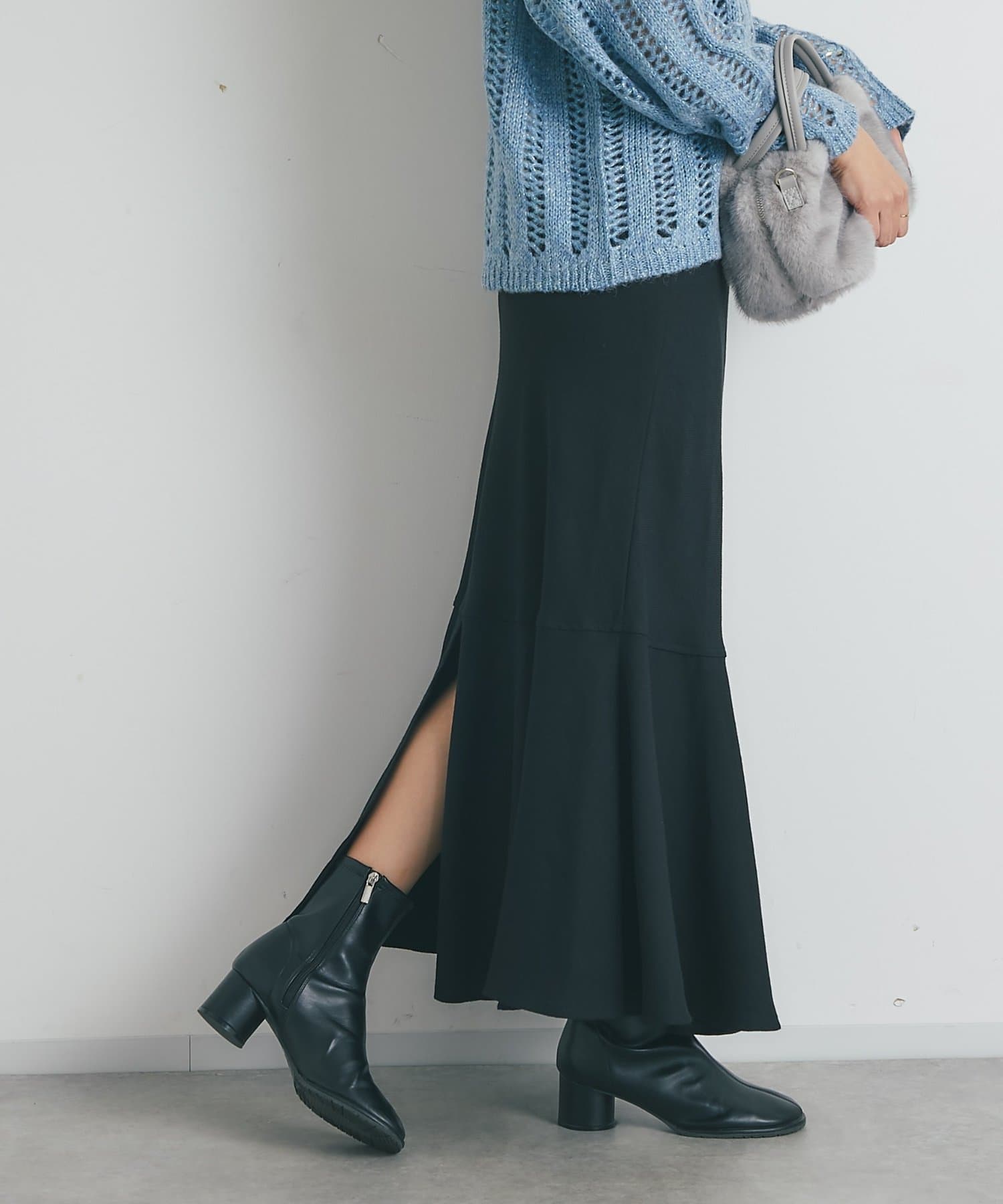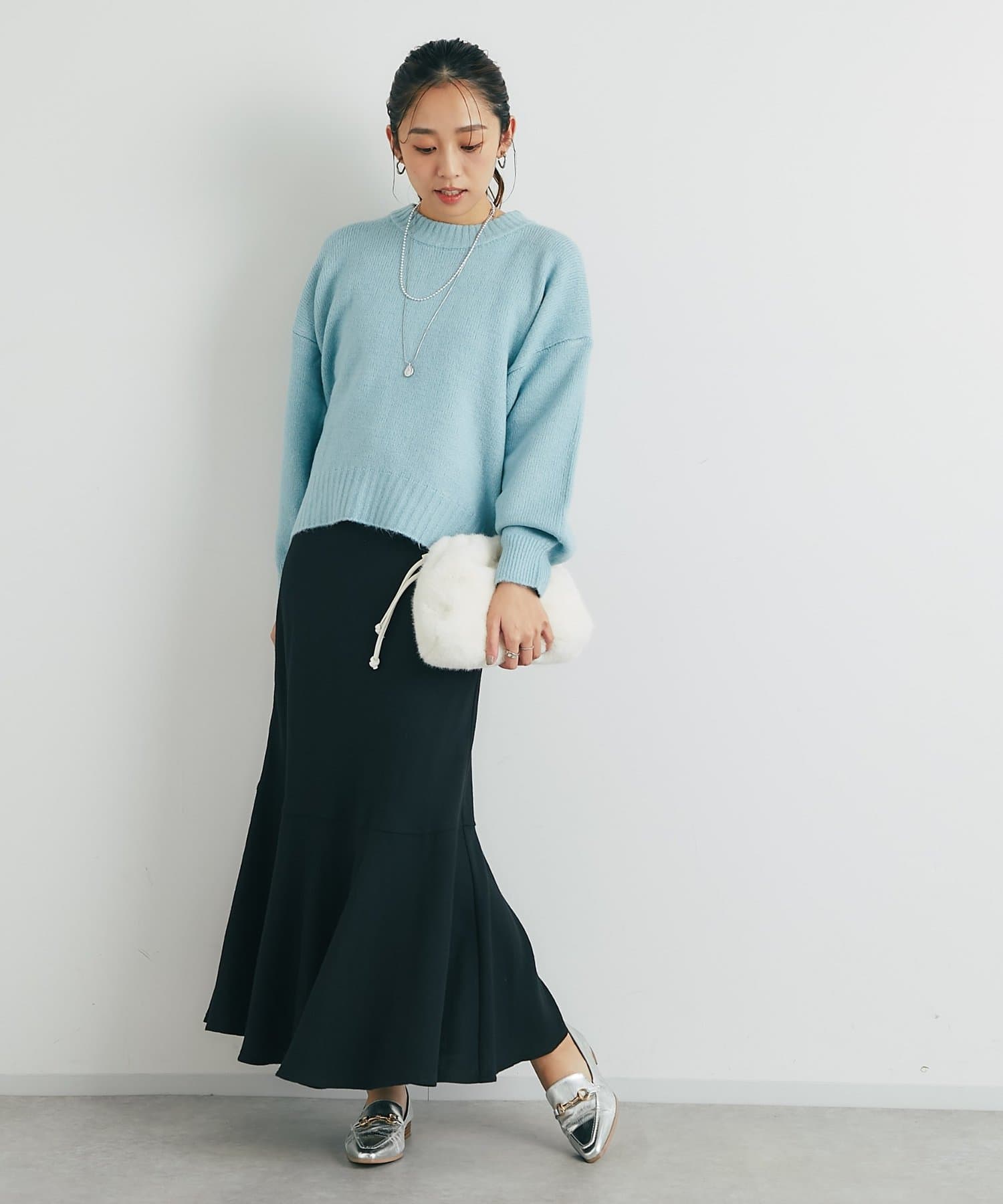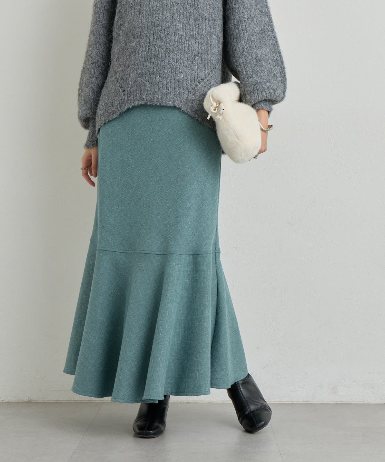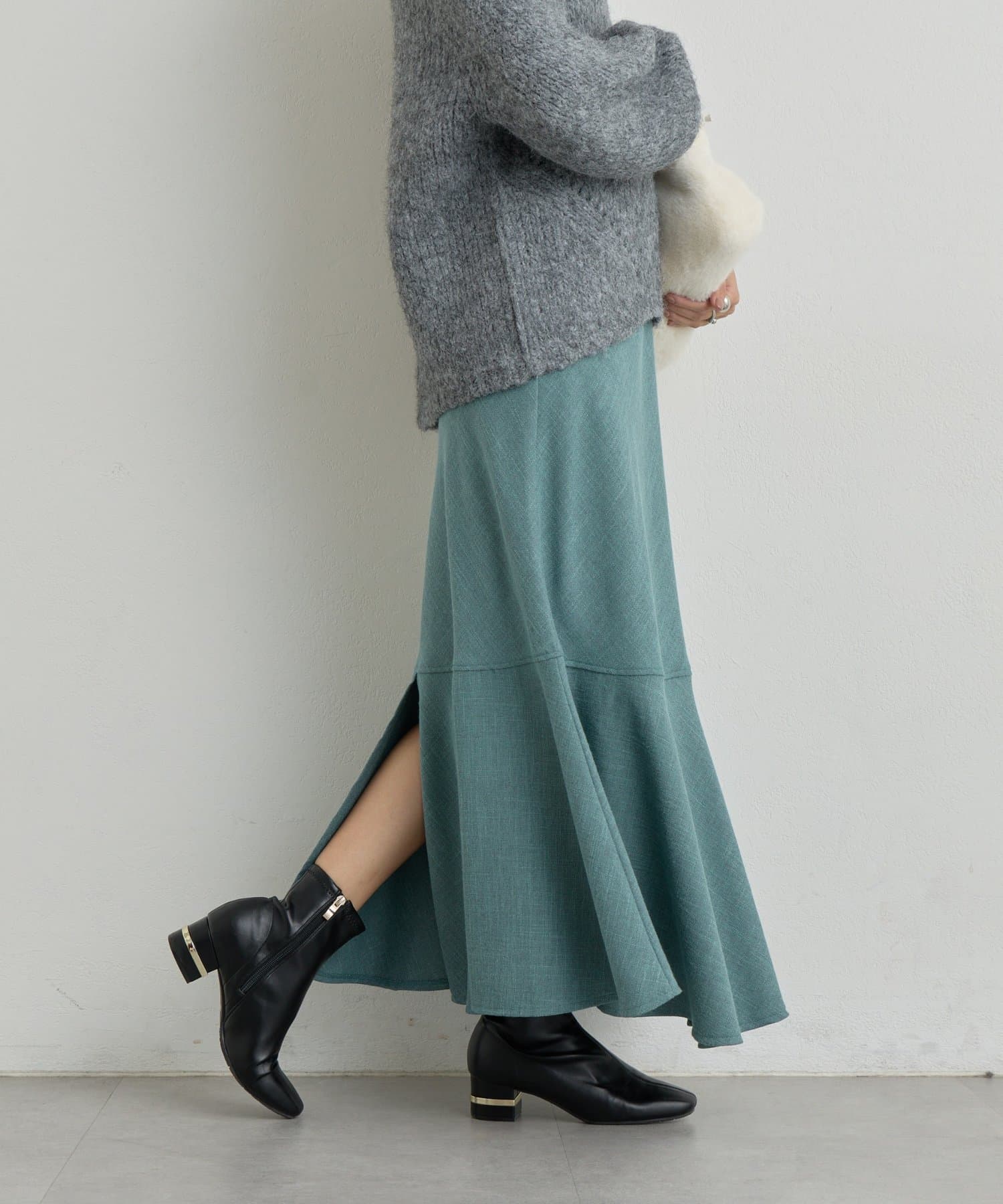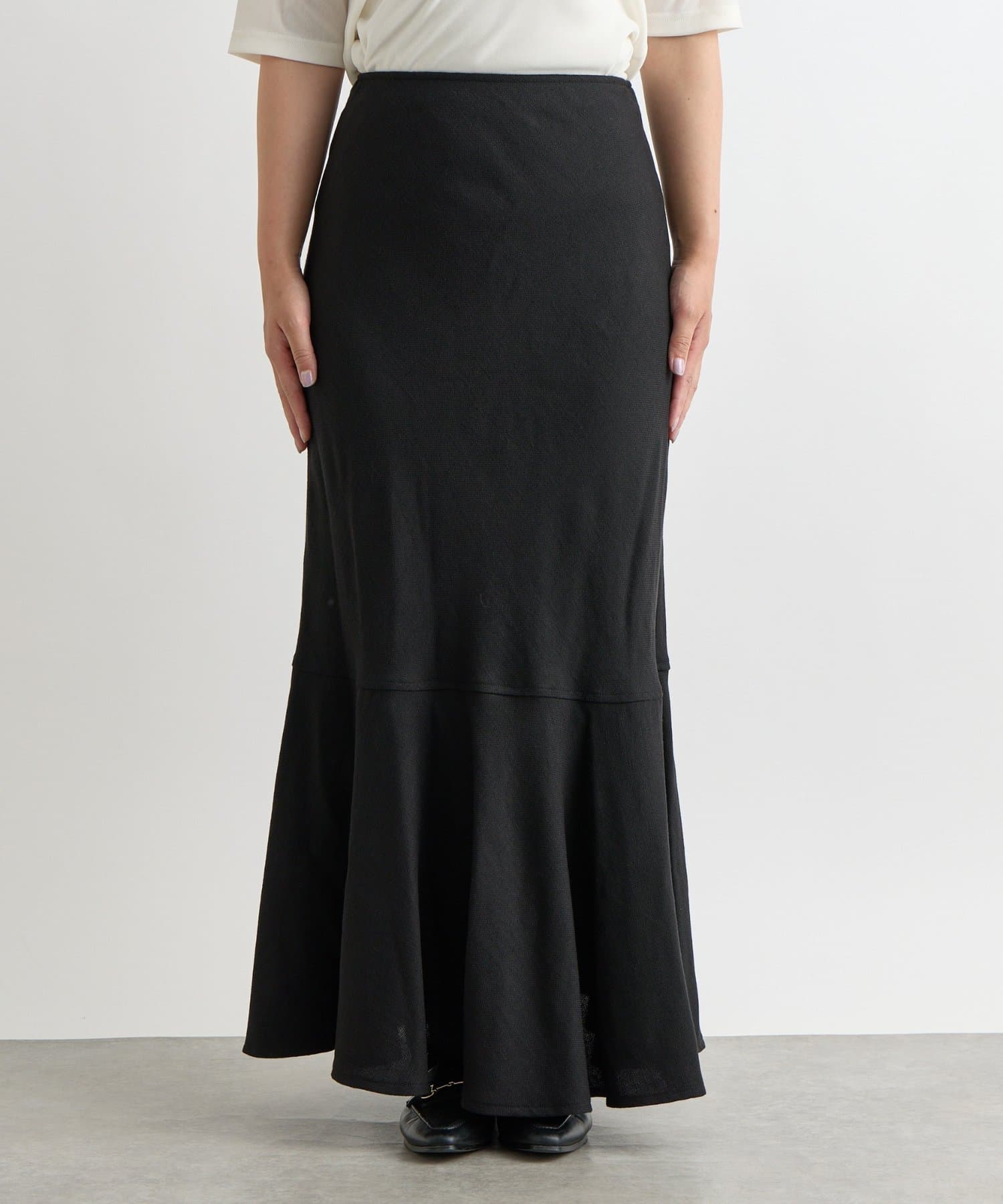 マーメイドシルエットなのでシンプルなトップスと相性抜群です。