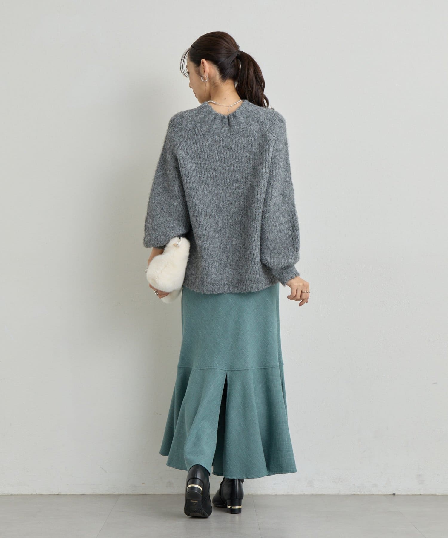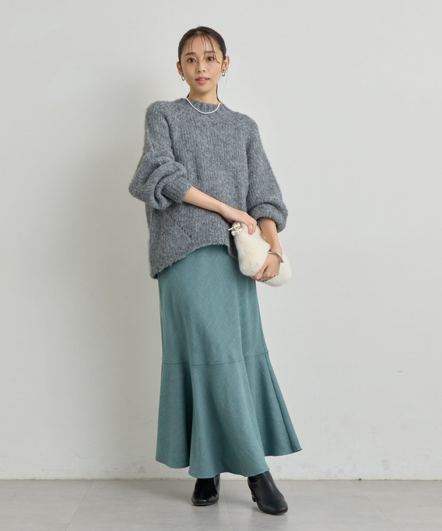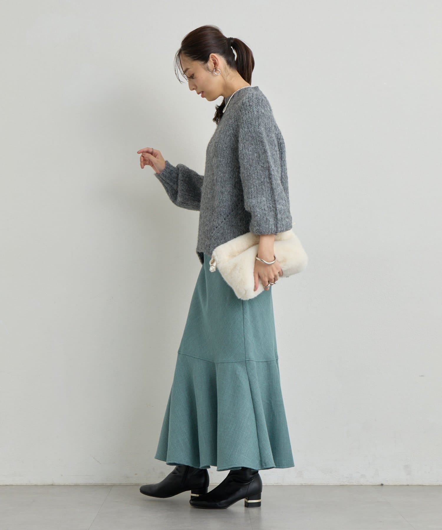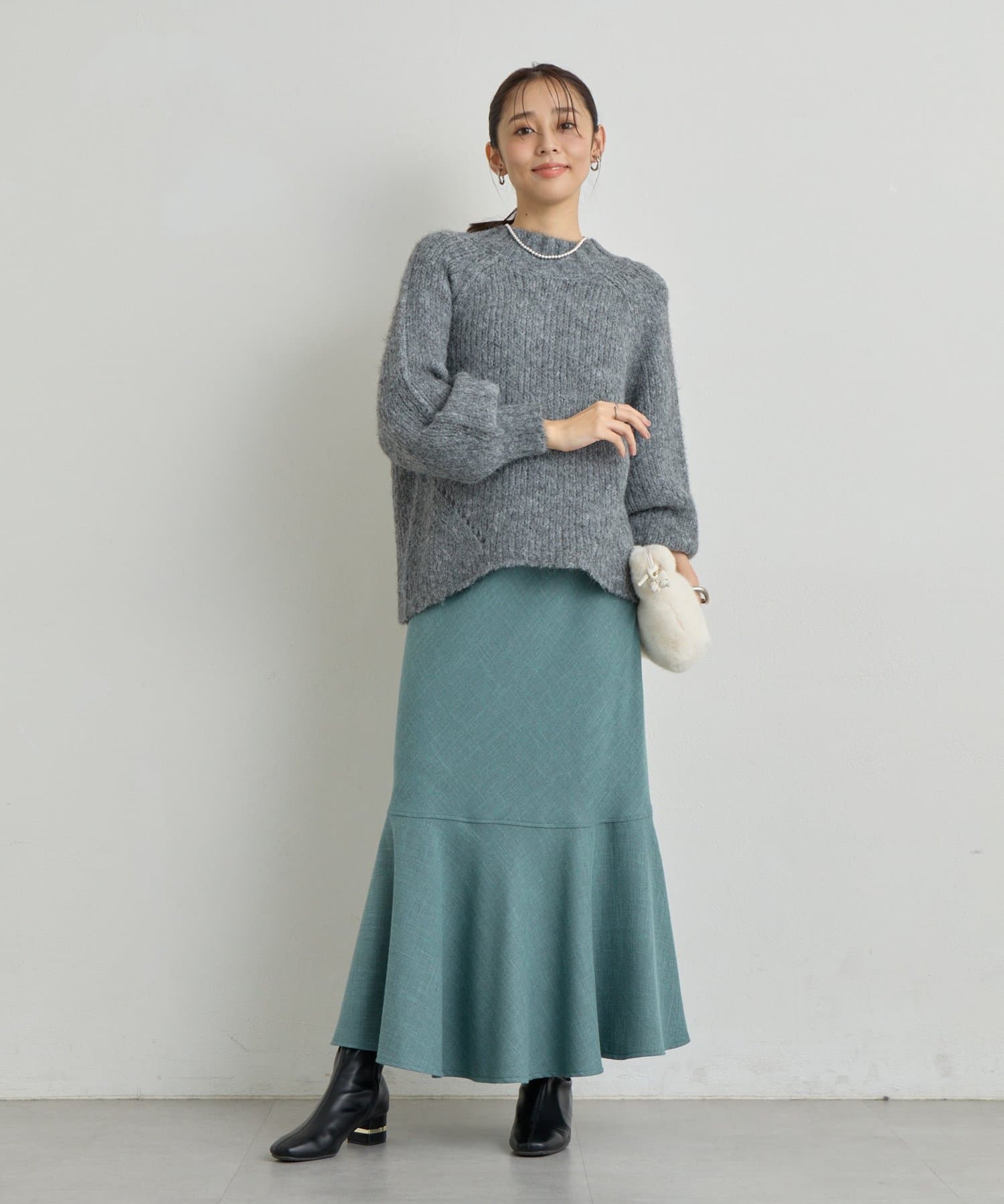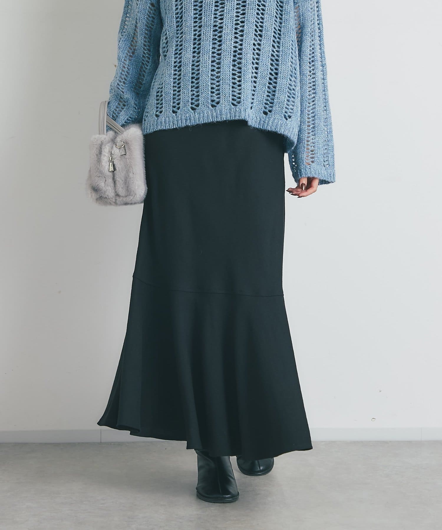 マーメイドシルエットなのでシンプルなトップスと相性抜群です。