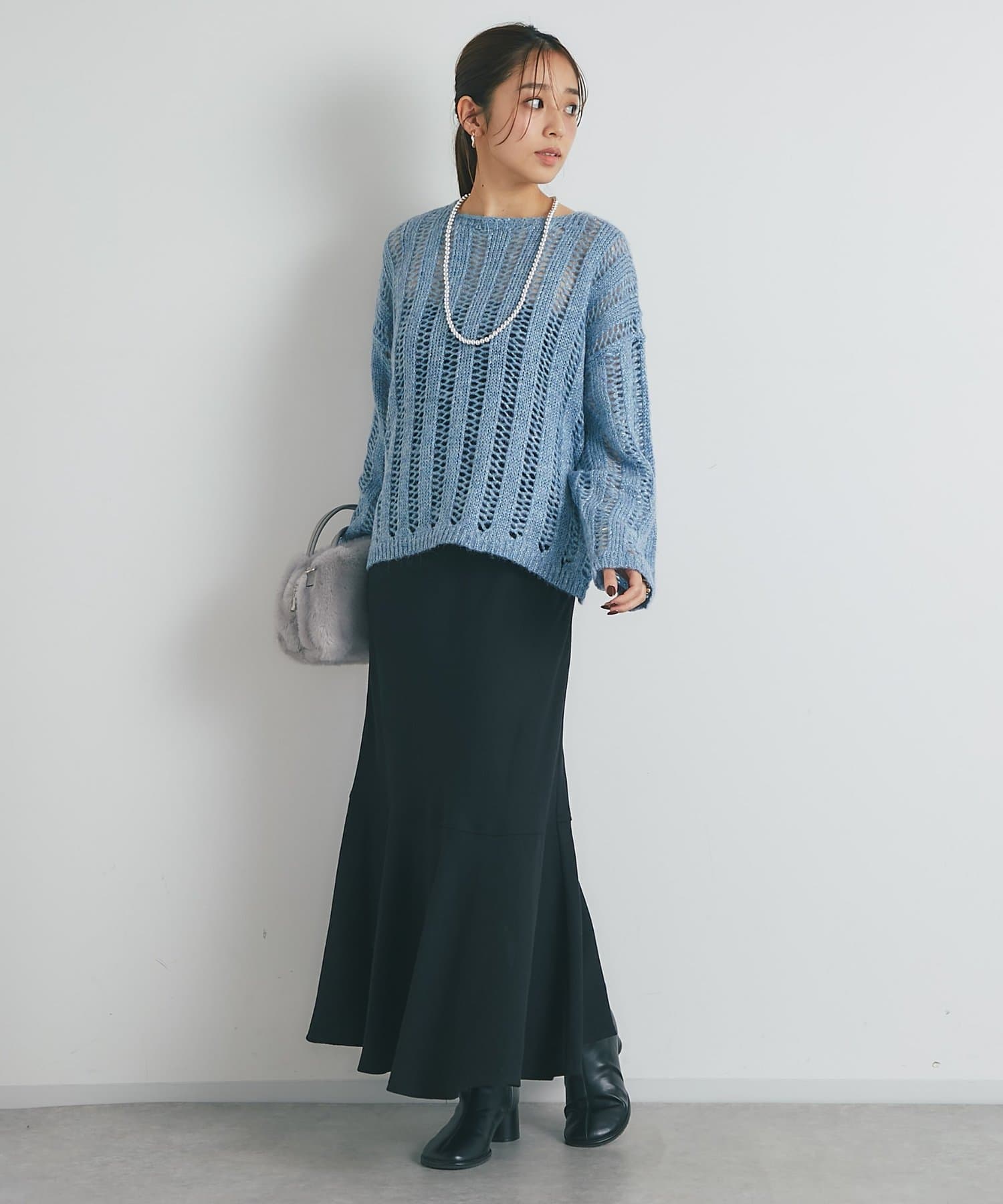 ニットやシンプルなカットソー1枚でも決まるマーメイドスカートは旬アイテム!