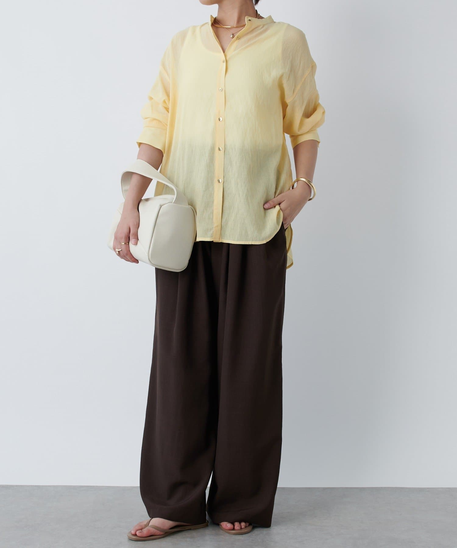 透け感はさほど気にならない素材で、さらりとした肌当たりとハリのある生地です。