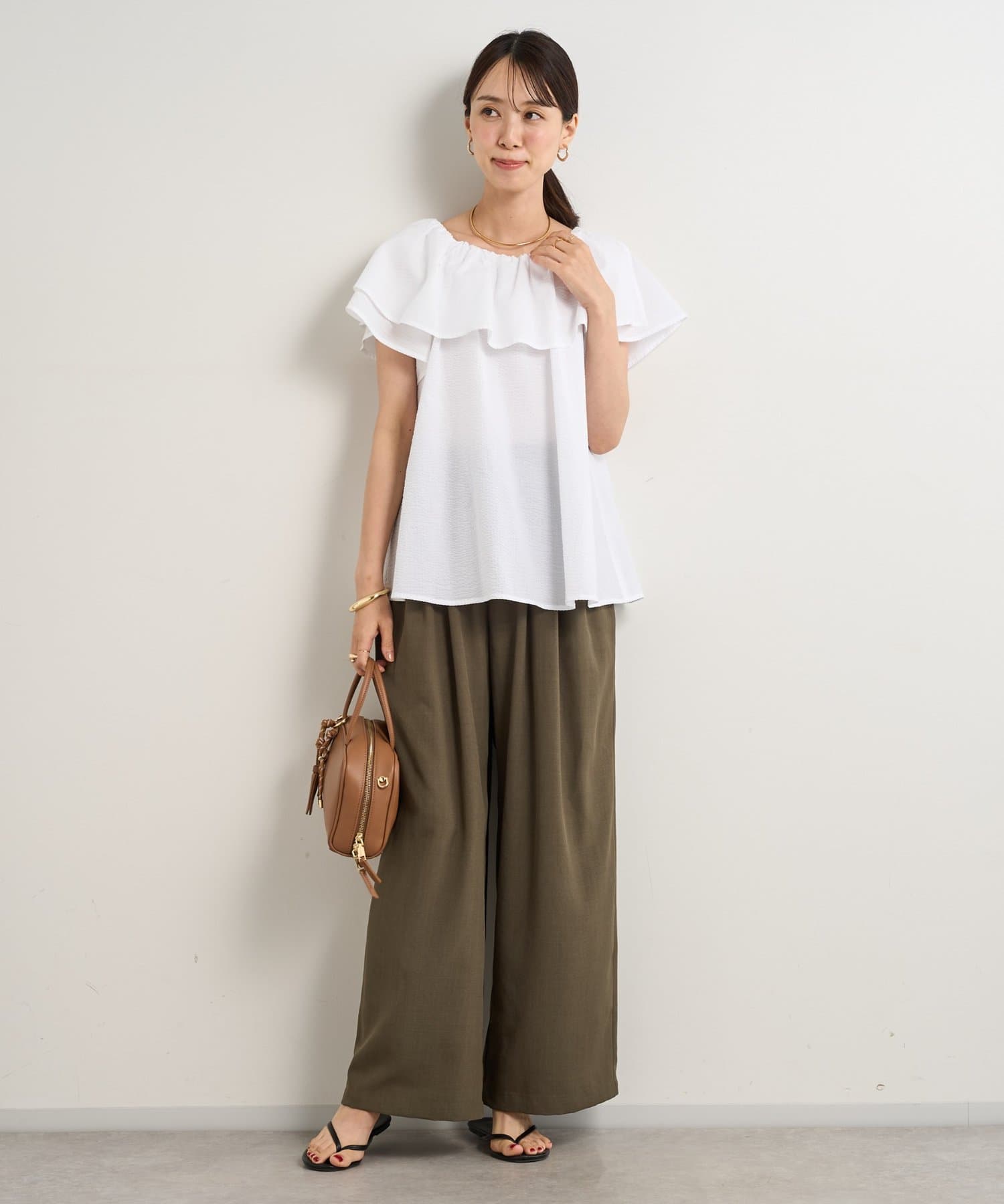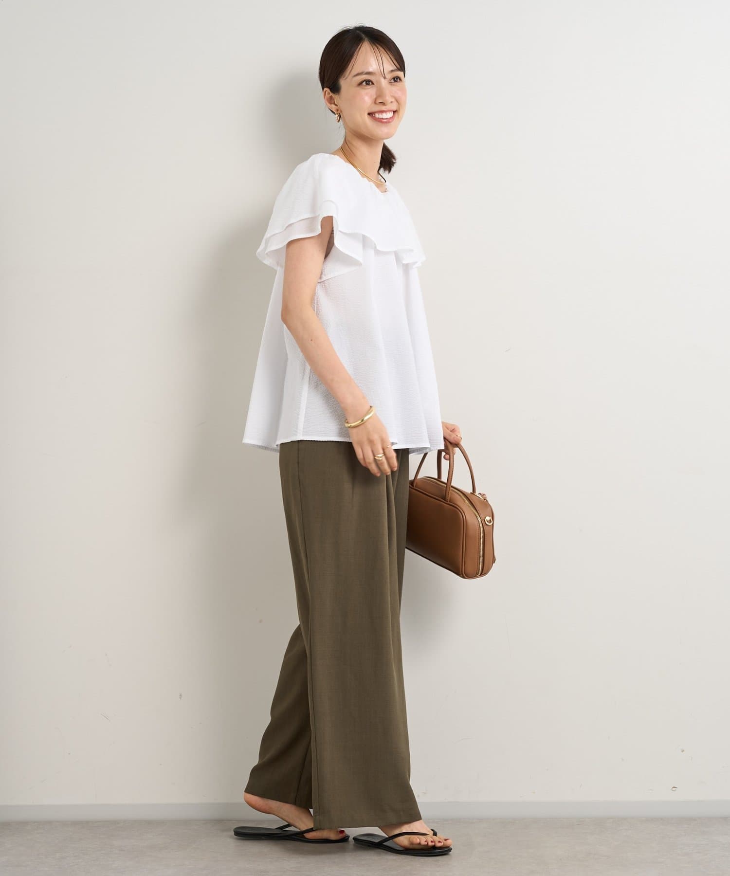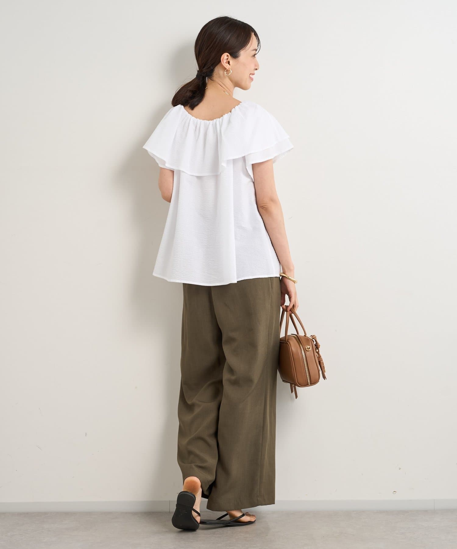 《全方向大人フェミニン見え◎》フィブリルサテンフリルブラウス