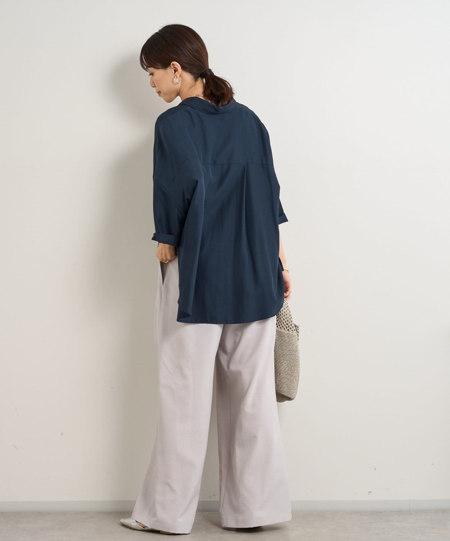 ・さっぱりとした手触りのタンブラーブッチャー素材は、シワになりにくいのも魅力です。