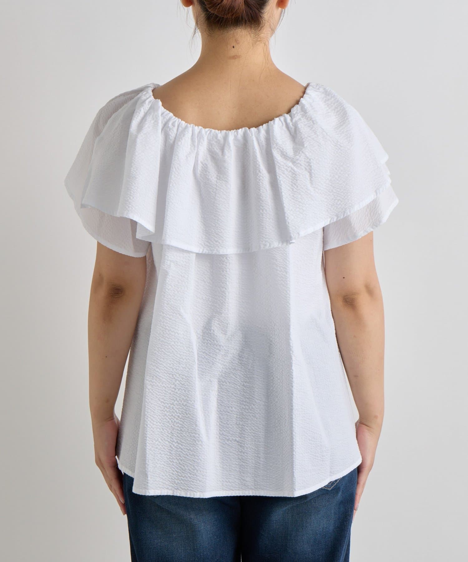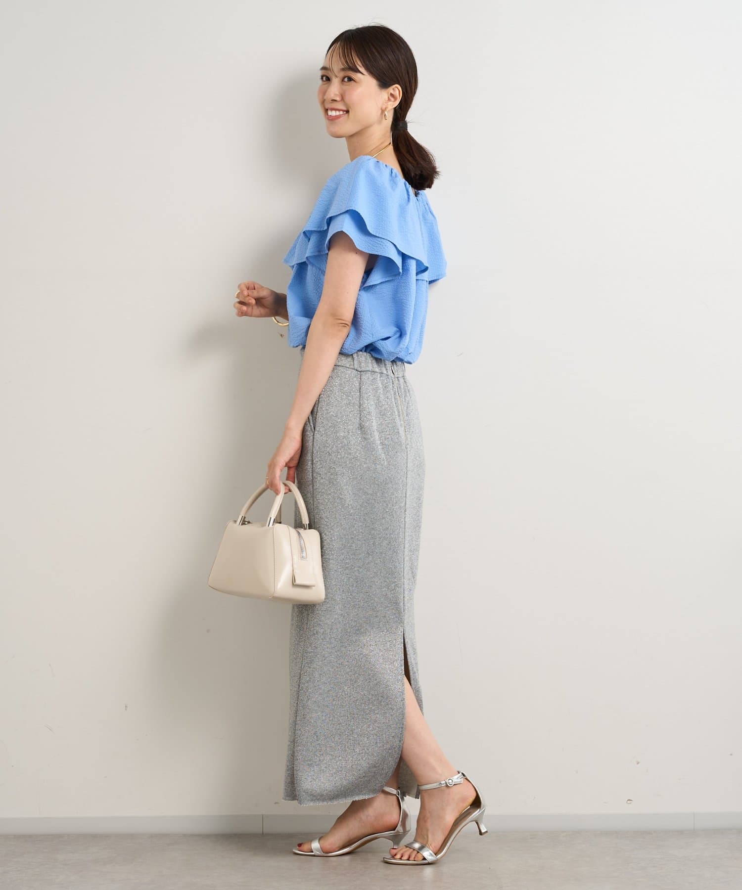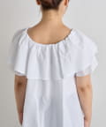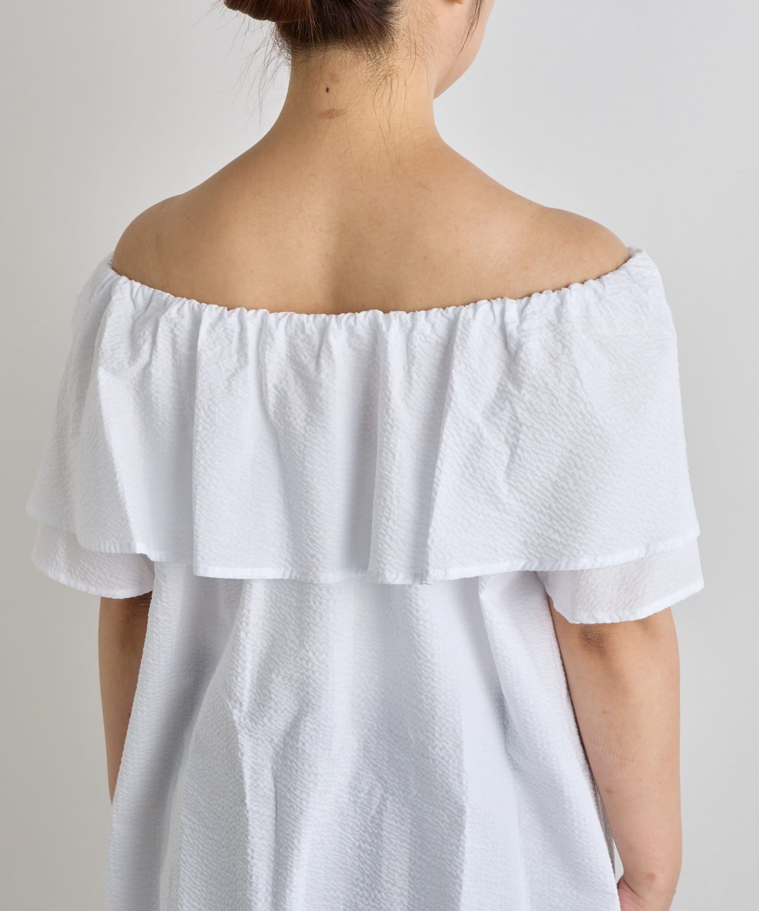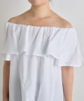 通常に着用するときも、オフショルとして着用するときも、フリルデザインによってさりげなく二の腕カバーが叶います。
