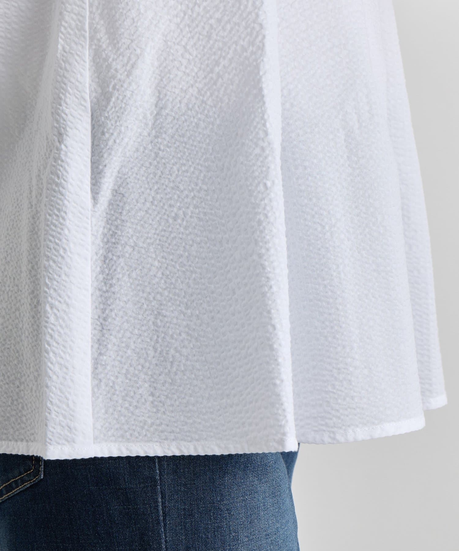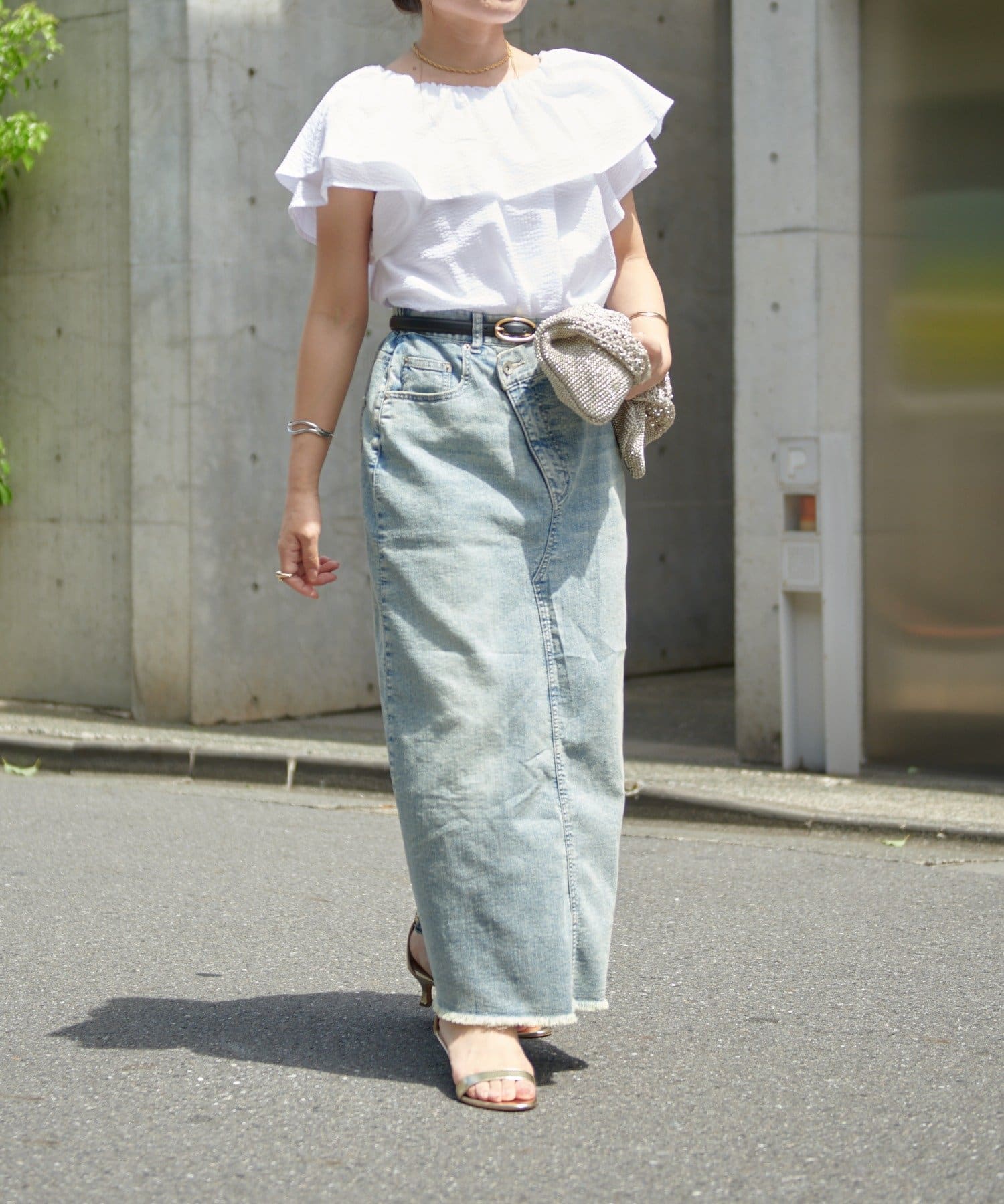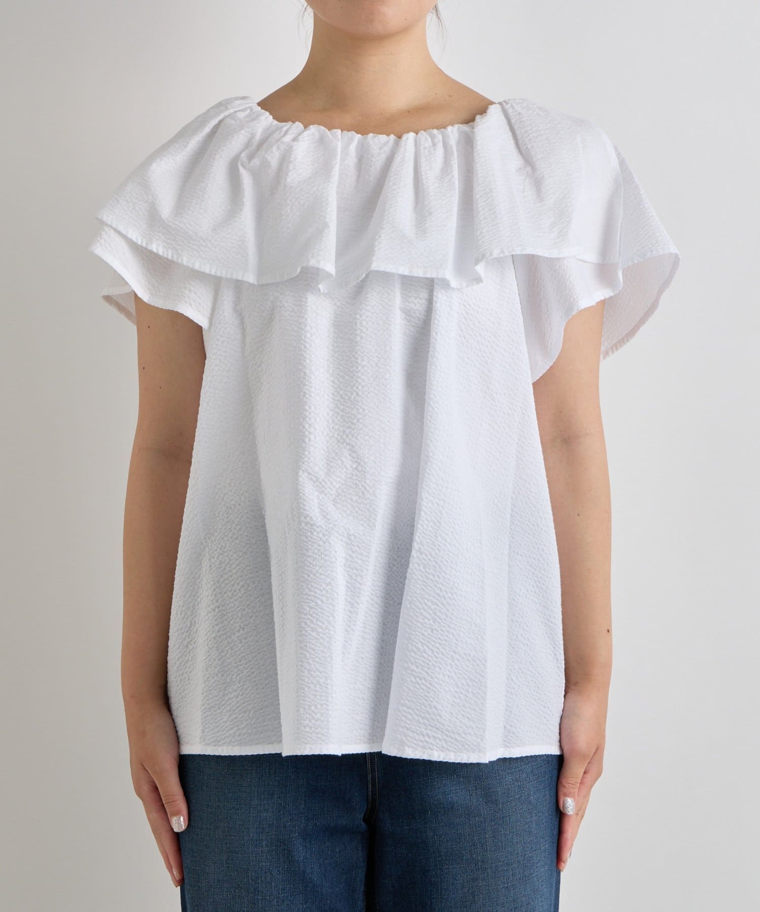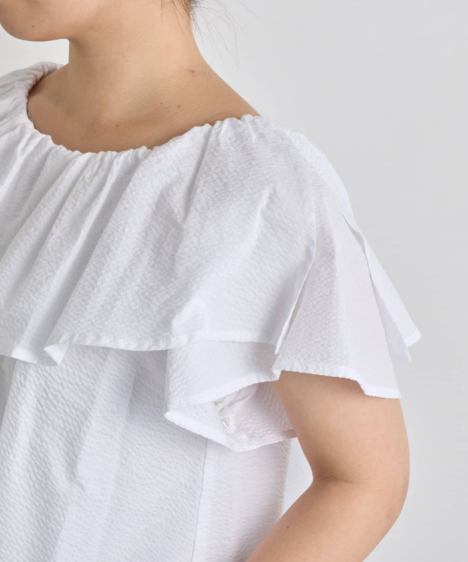 通常に着用するときも、オフショルとして着用するときも、フリルデザインによってさりげなく二の腕カバーが叶います。