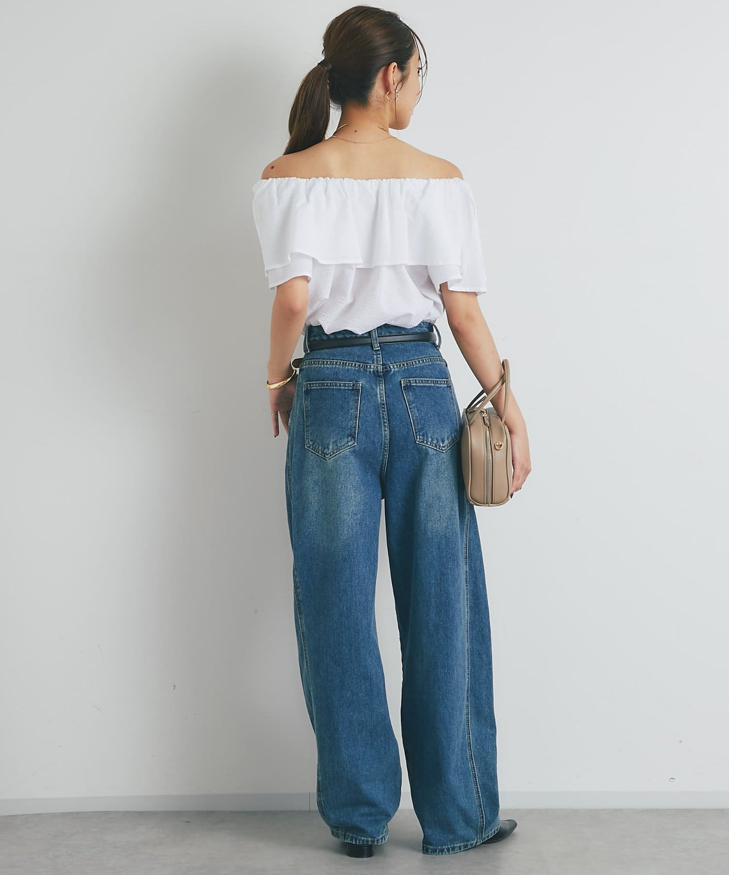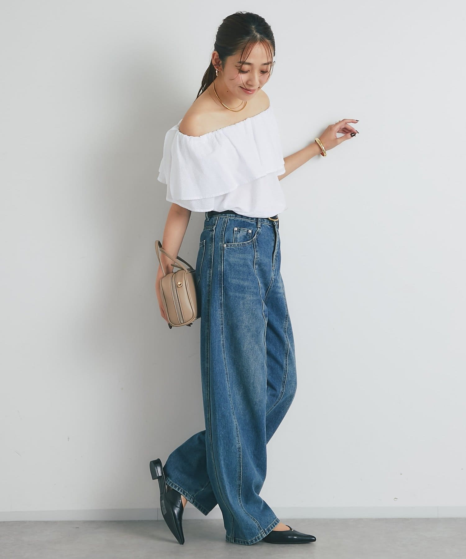 普段オフショルダーを着ない方でも取り入れやすい、シンプルなデザインも魅力です◎