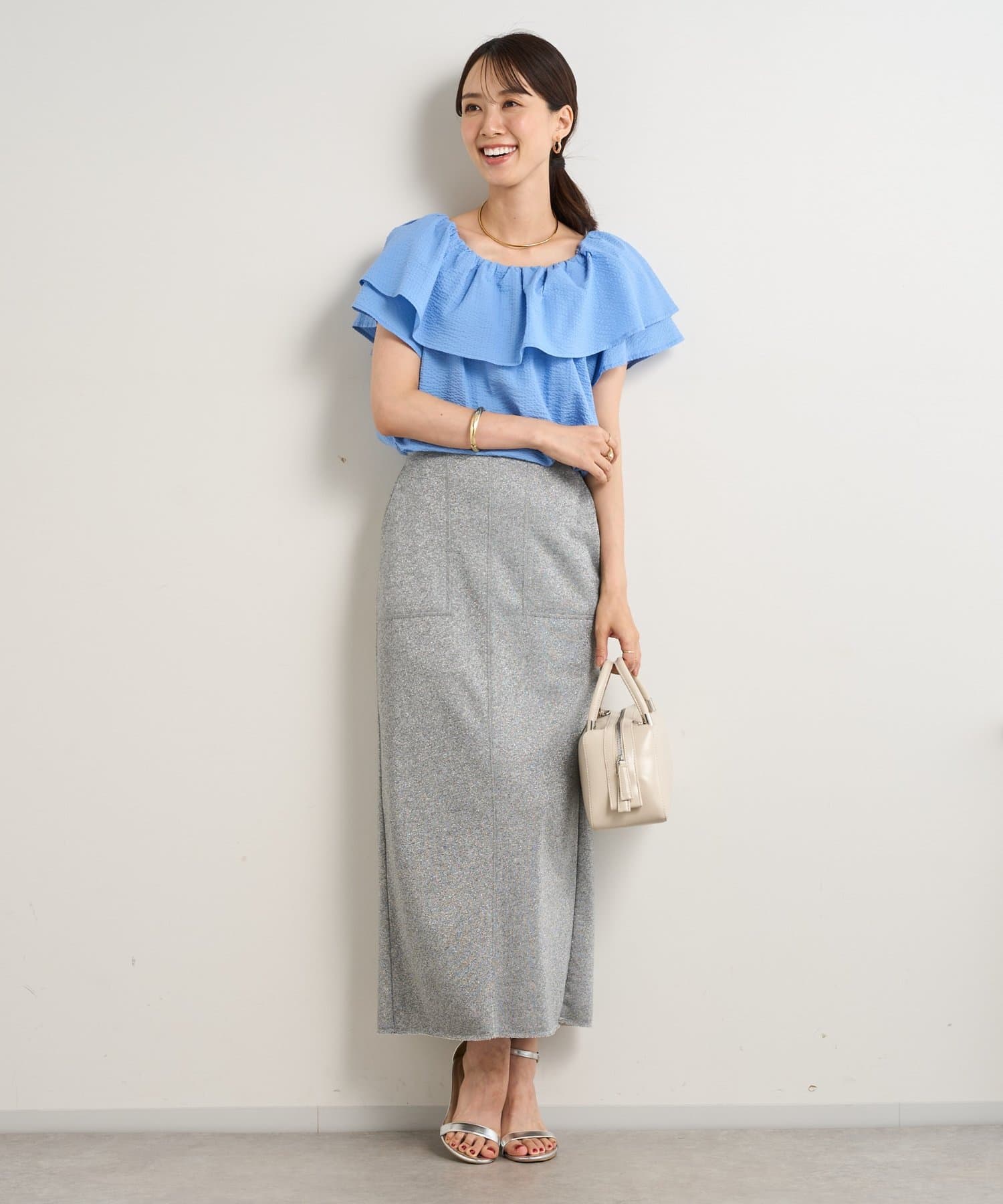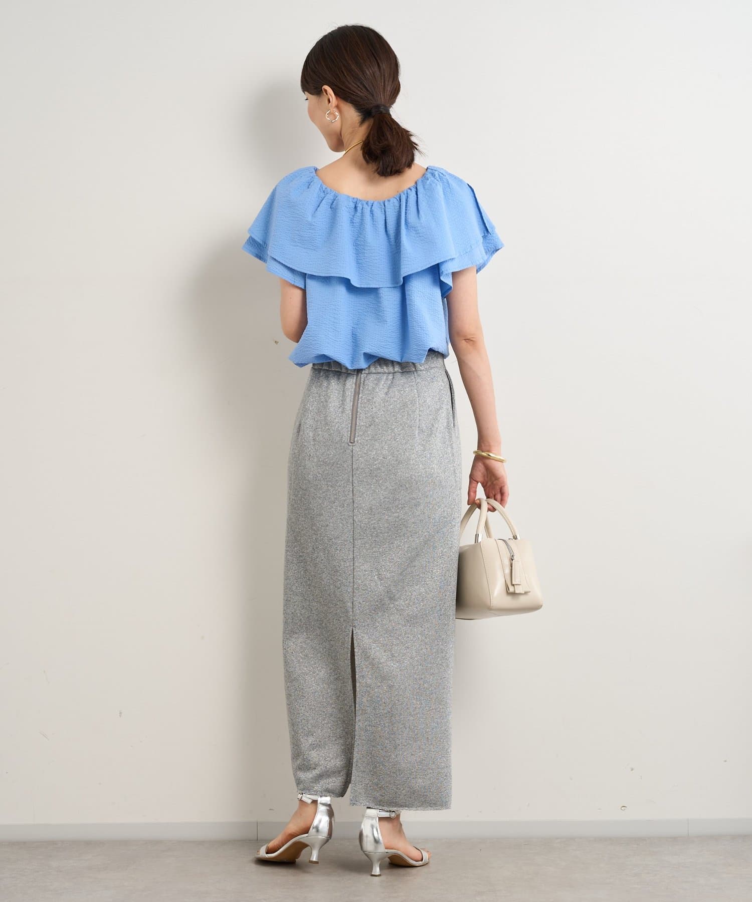 《セットアップ可能・大人のこなれカジュアルに》ラメ裏毛ナロースカート