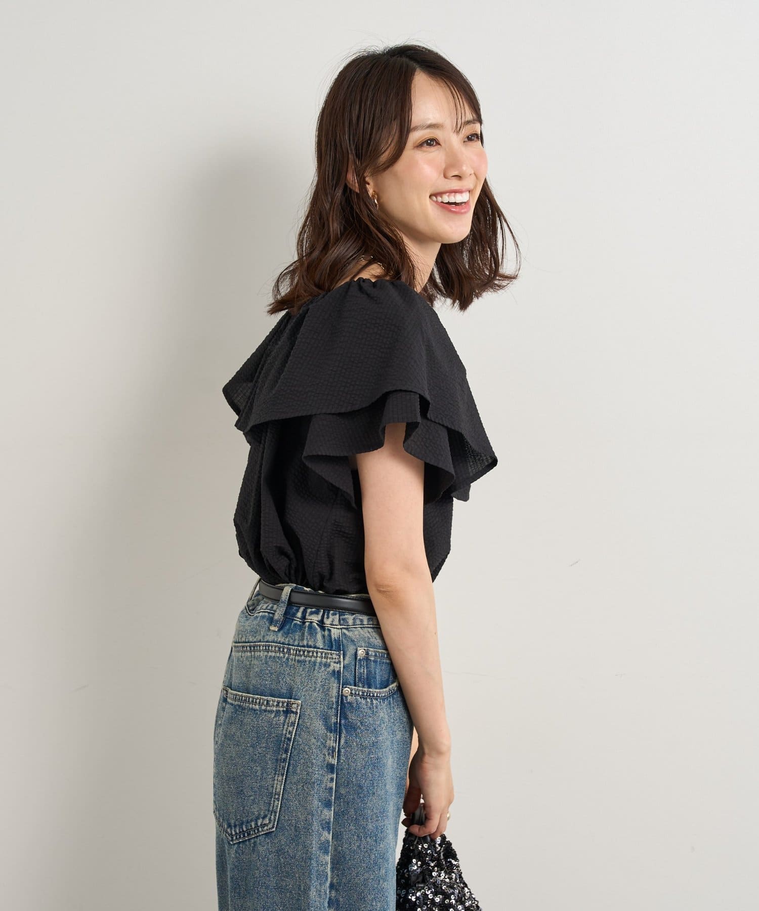 ・ボリューム感のあるフリルデザインがポイントになり、フェミニンムードを演出します。