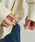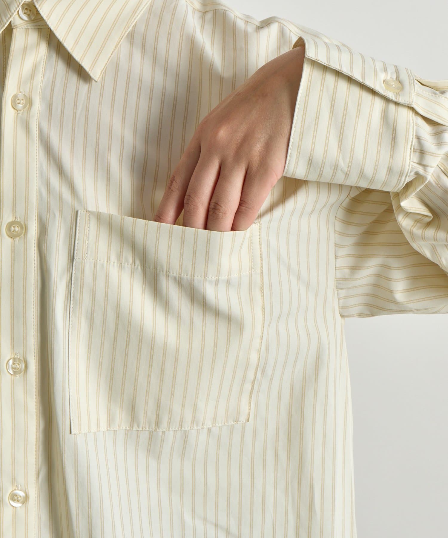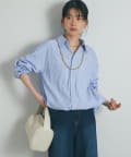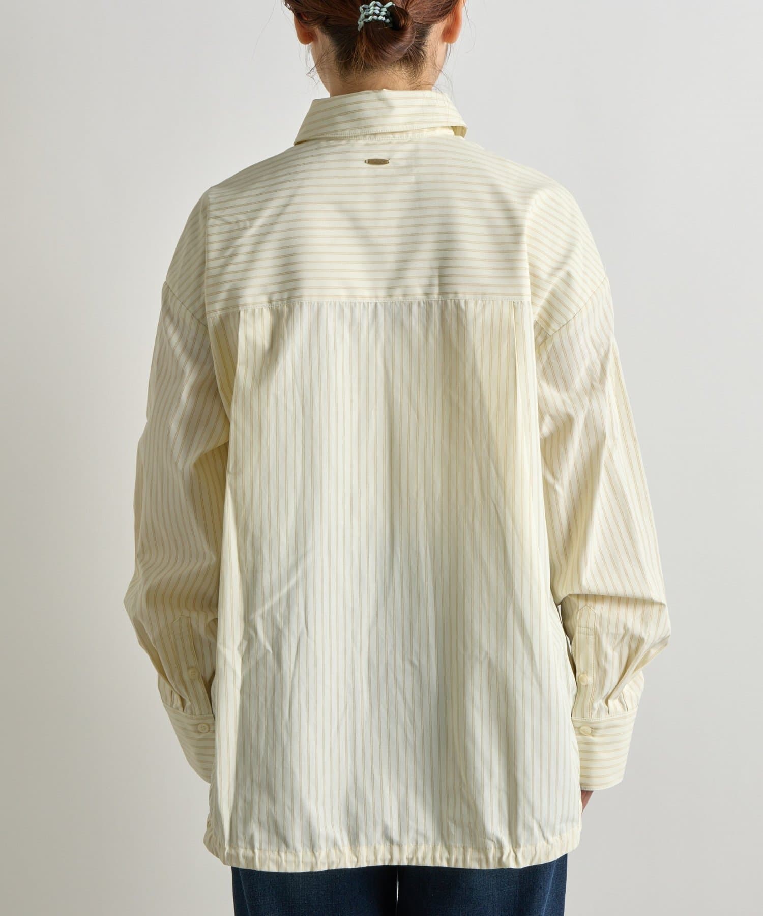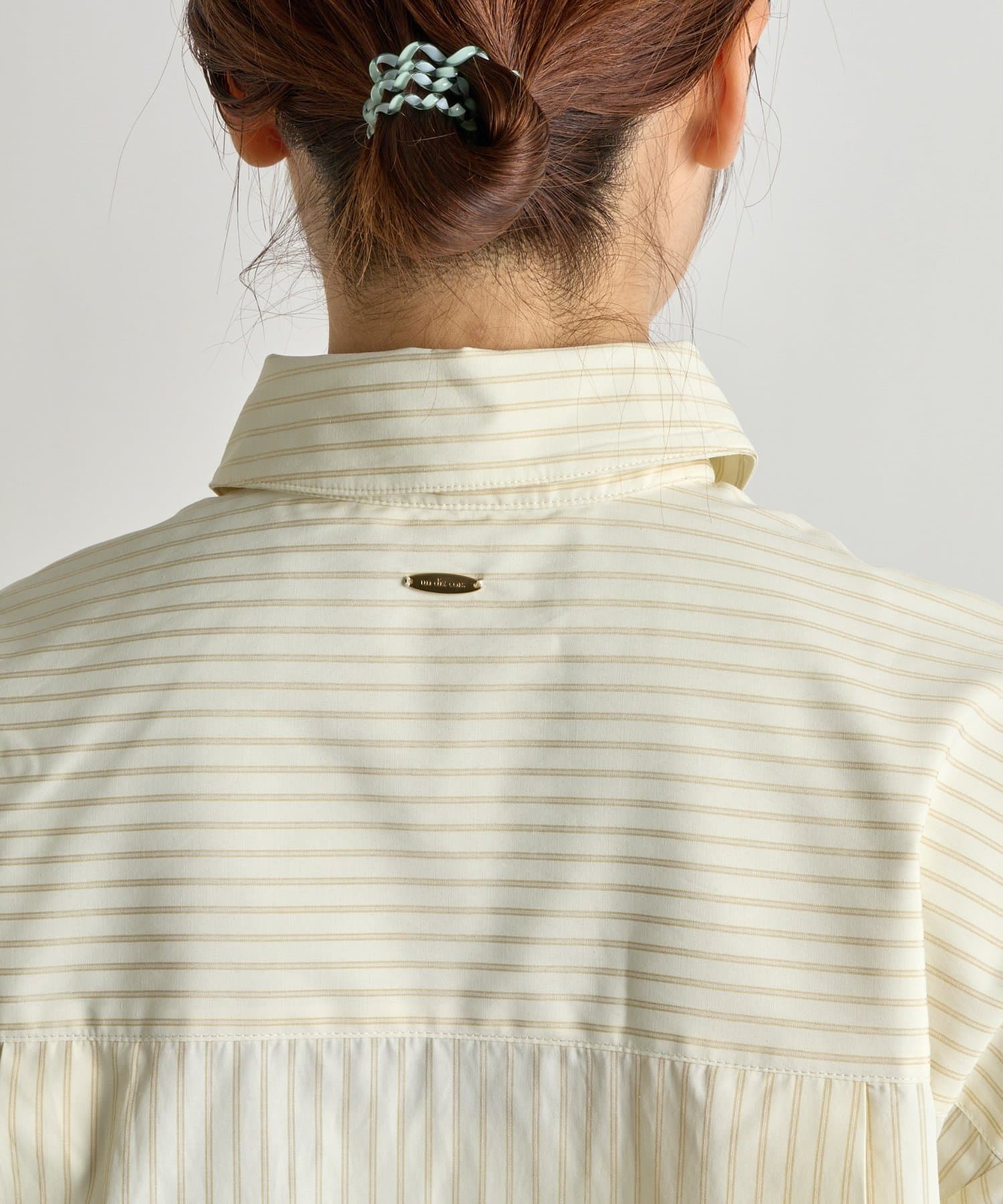 ・爽やかなストライプ柄生地で、後ろ襟元にほどこされたブランドロゴプレートもさりげなくアクセントに◎