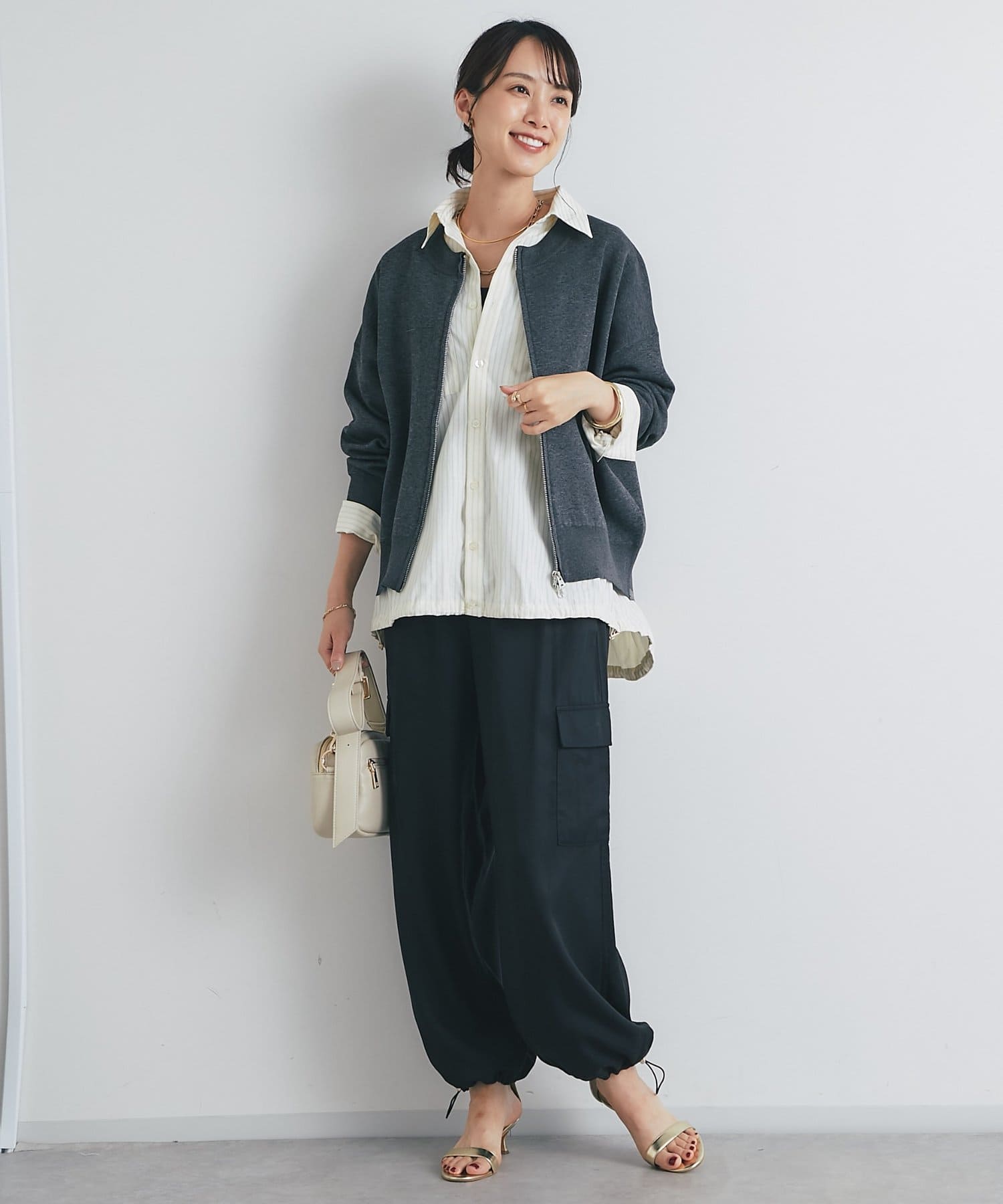 ・ドロストを絞ればウエストインをしなくてもバランスのよい着こなしに。
