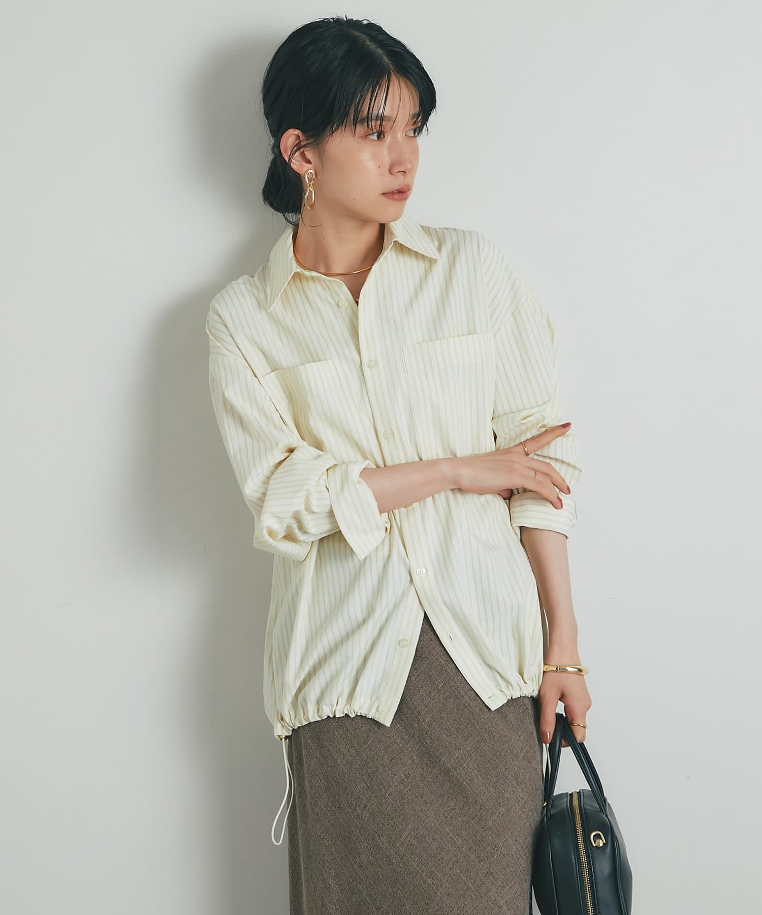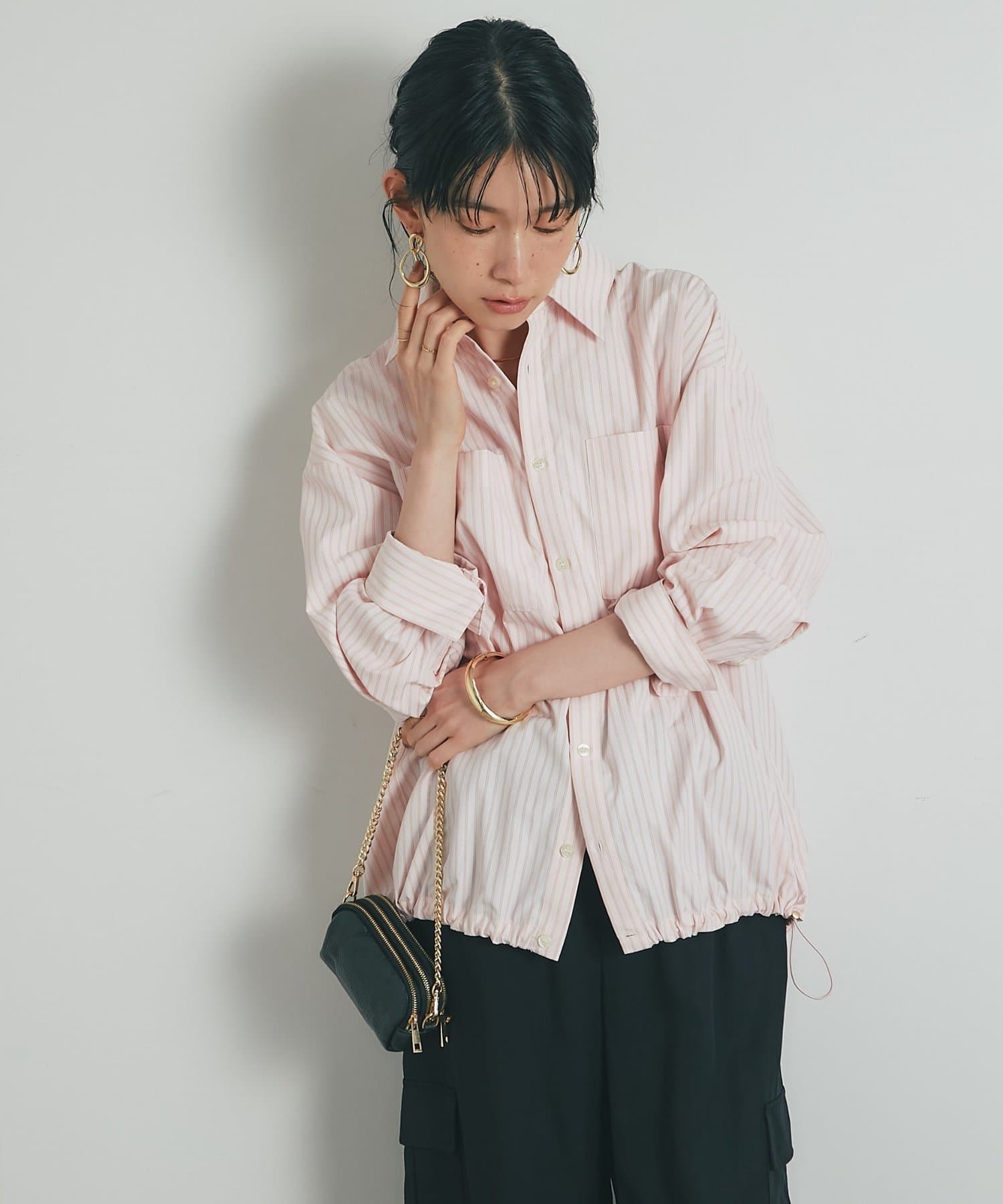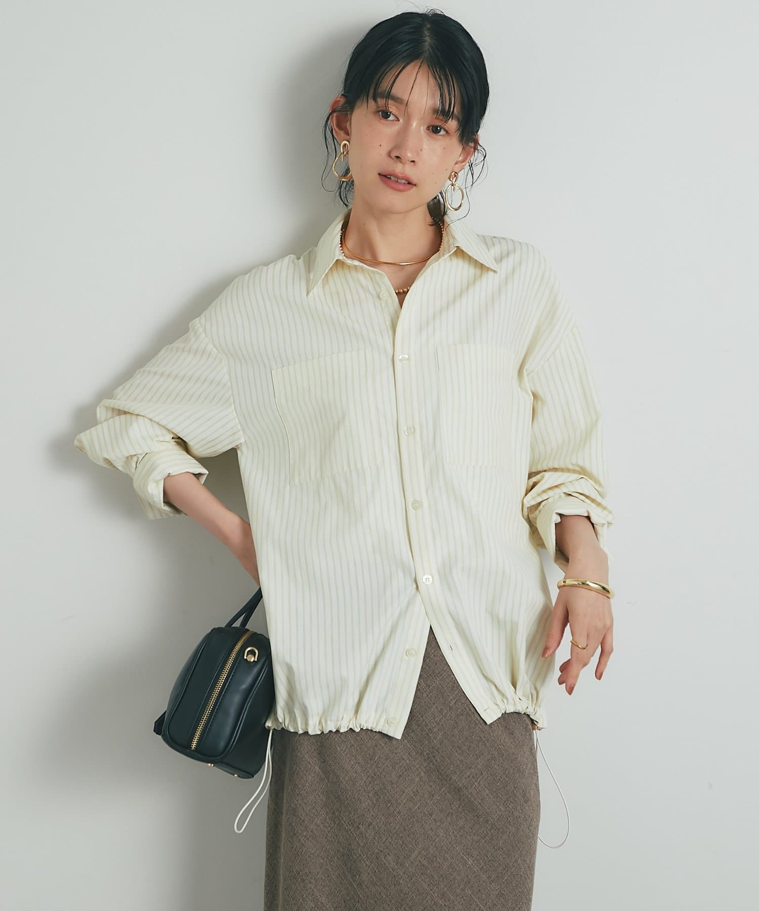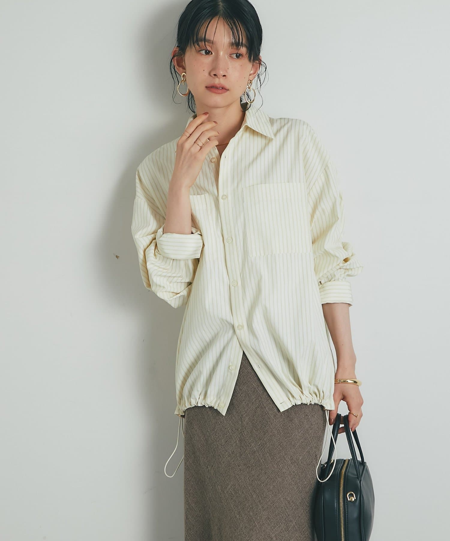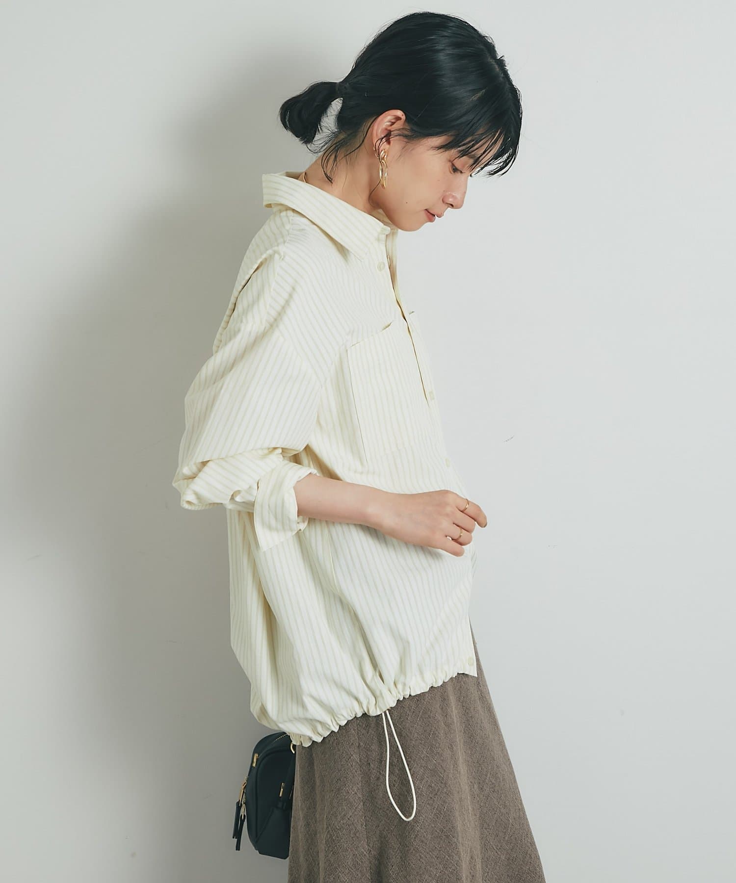 ・フロント裾のドロストを調節し、シルエットアレンジが楽しめるデザインのシャツ。