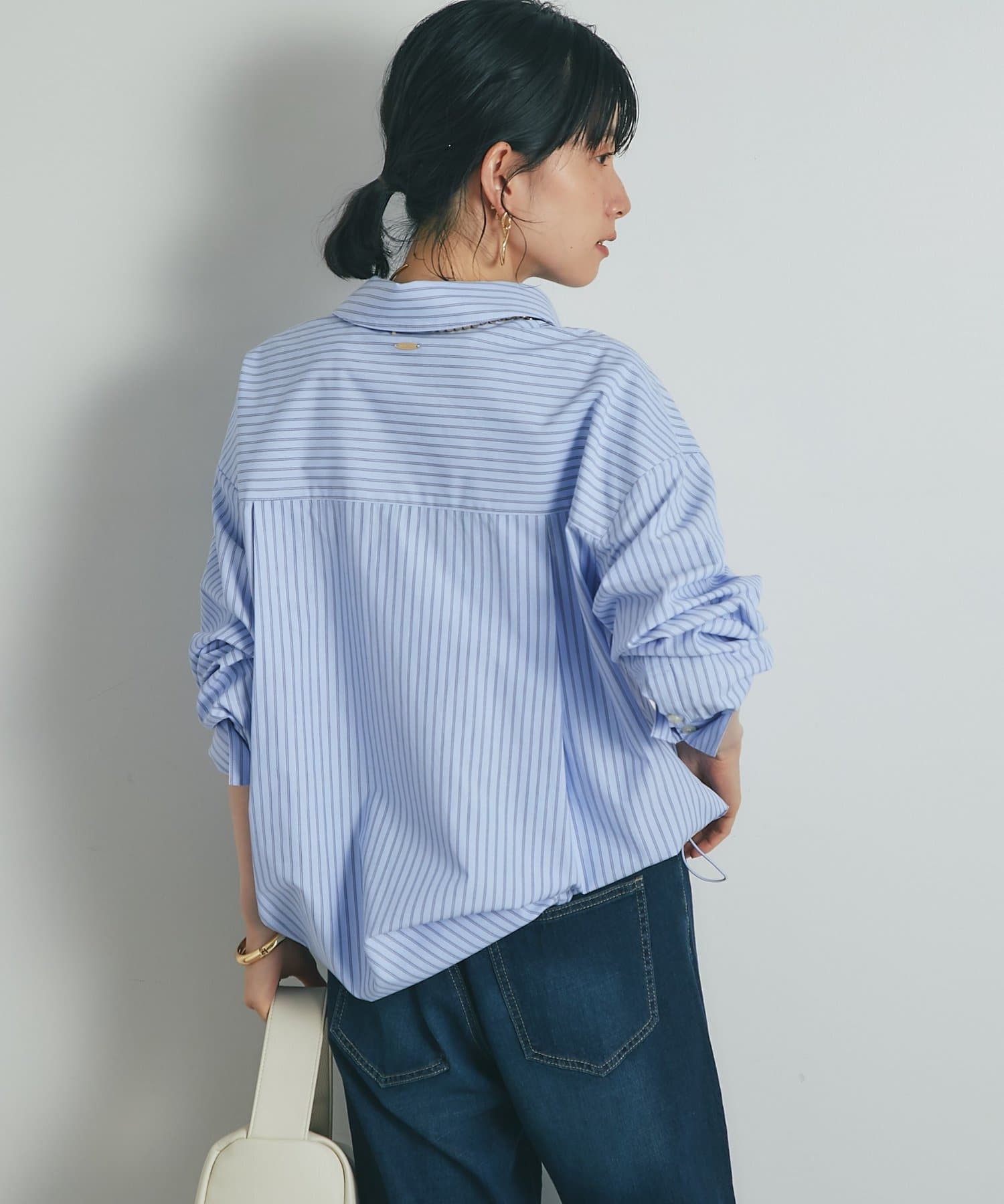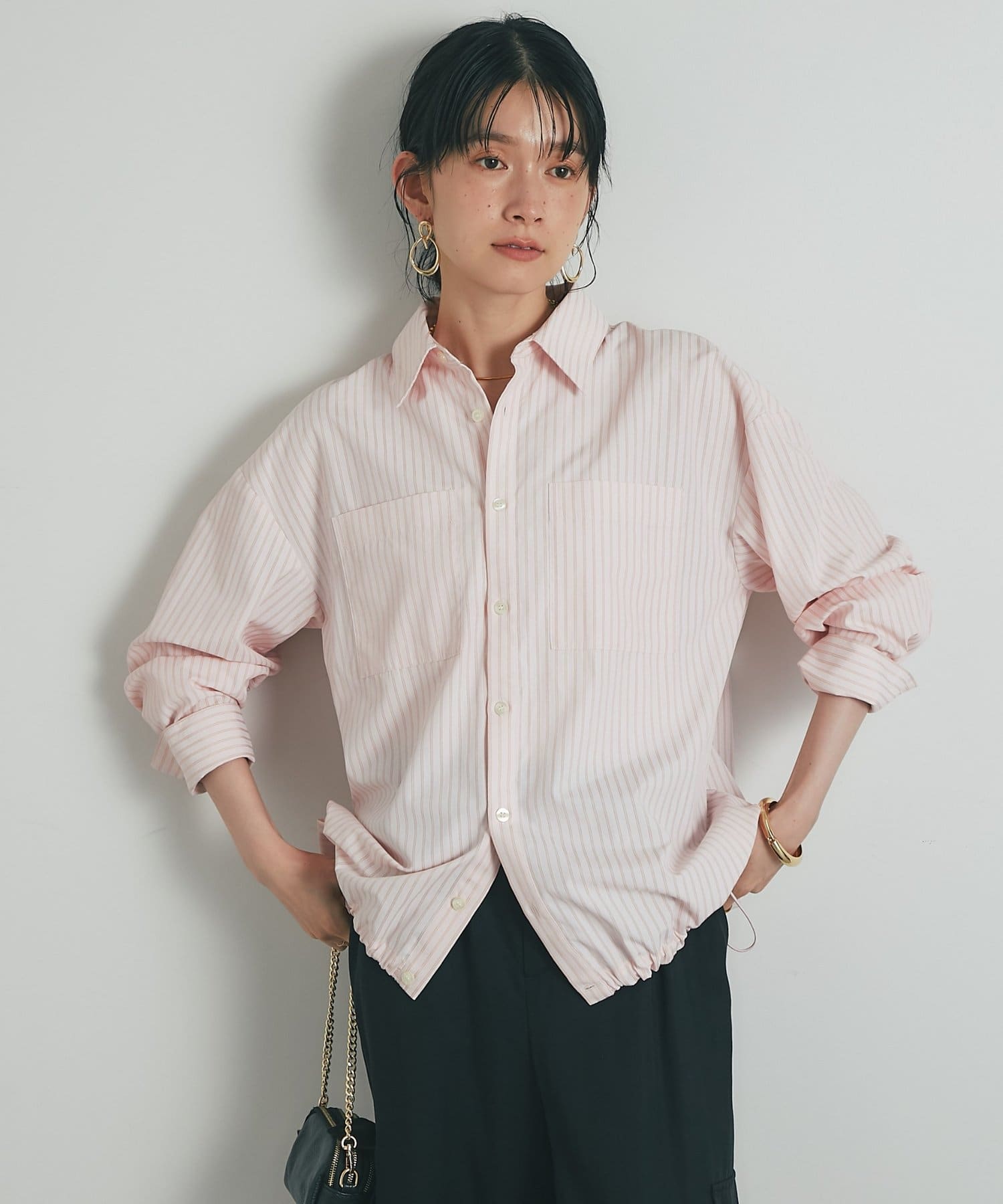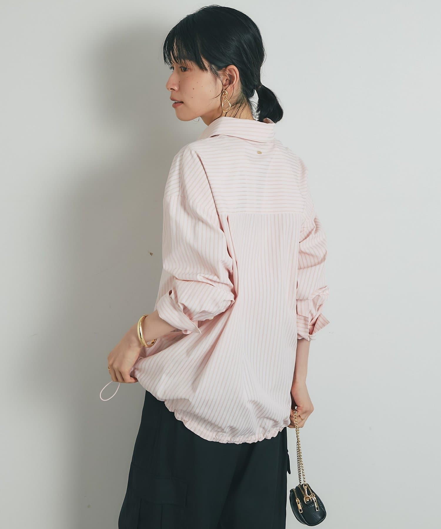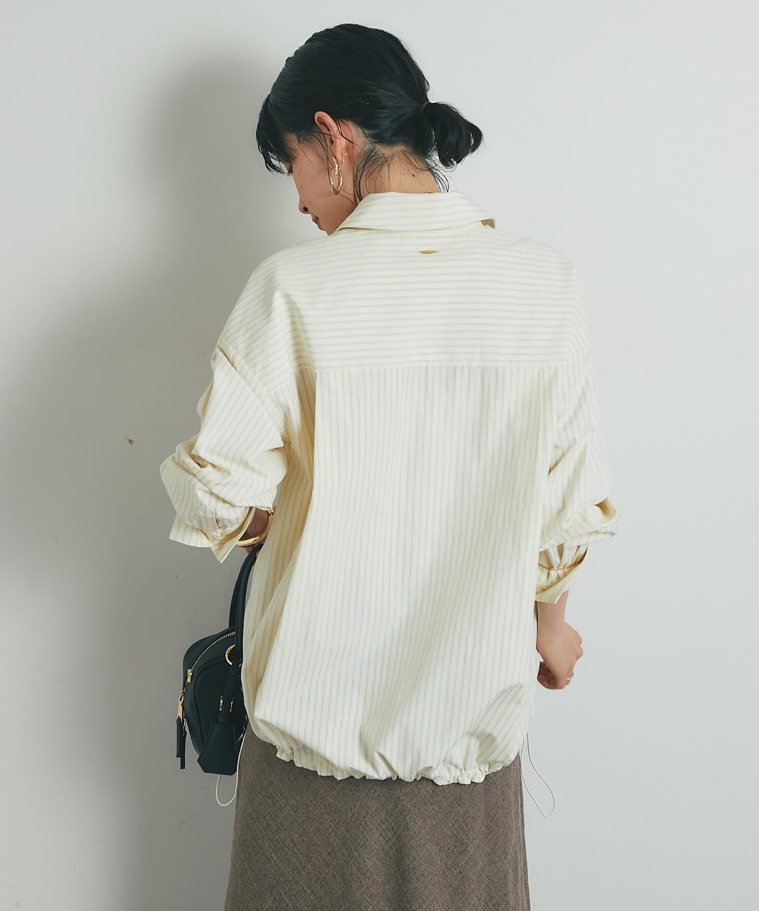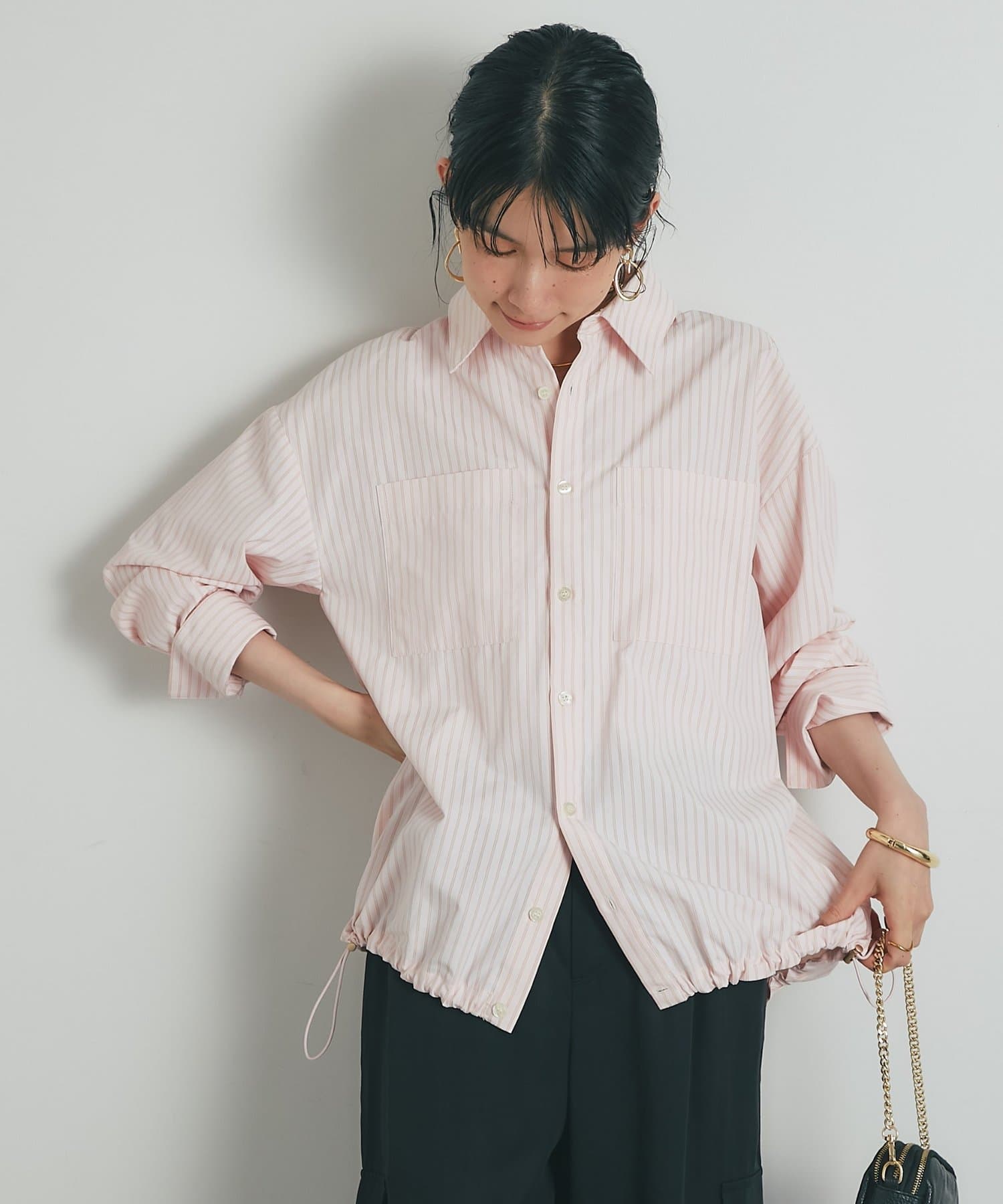 ・フロント裾のドロストを調節し、シルエットアレンジが楽しめるデザインのシャツ。