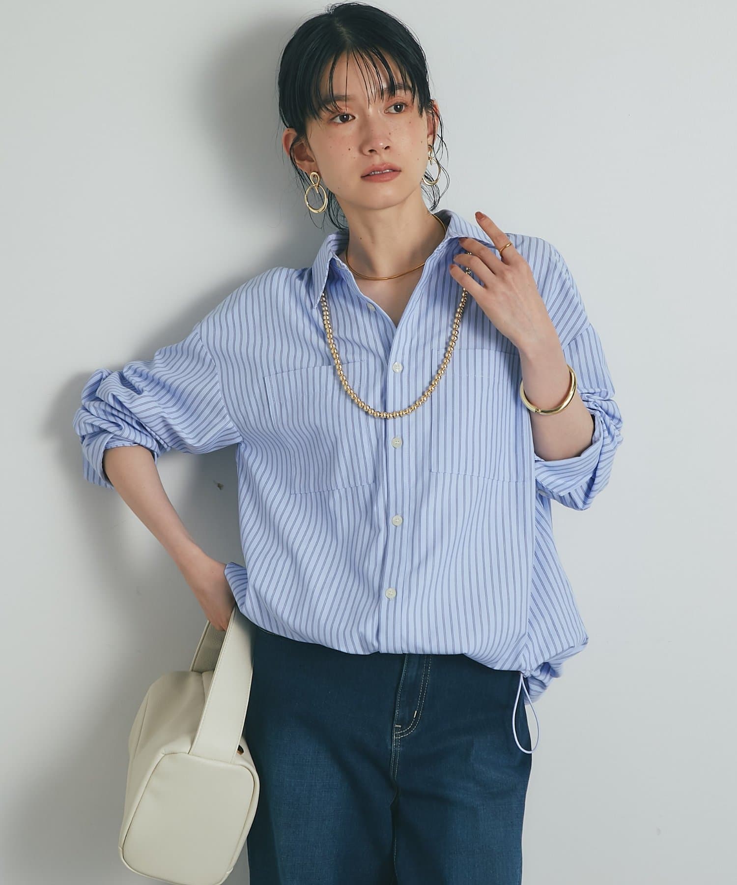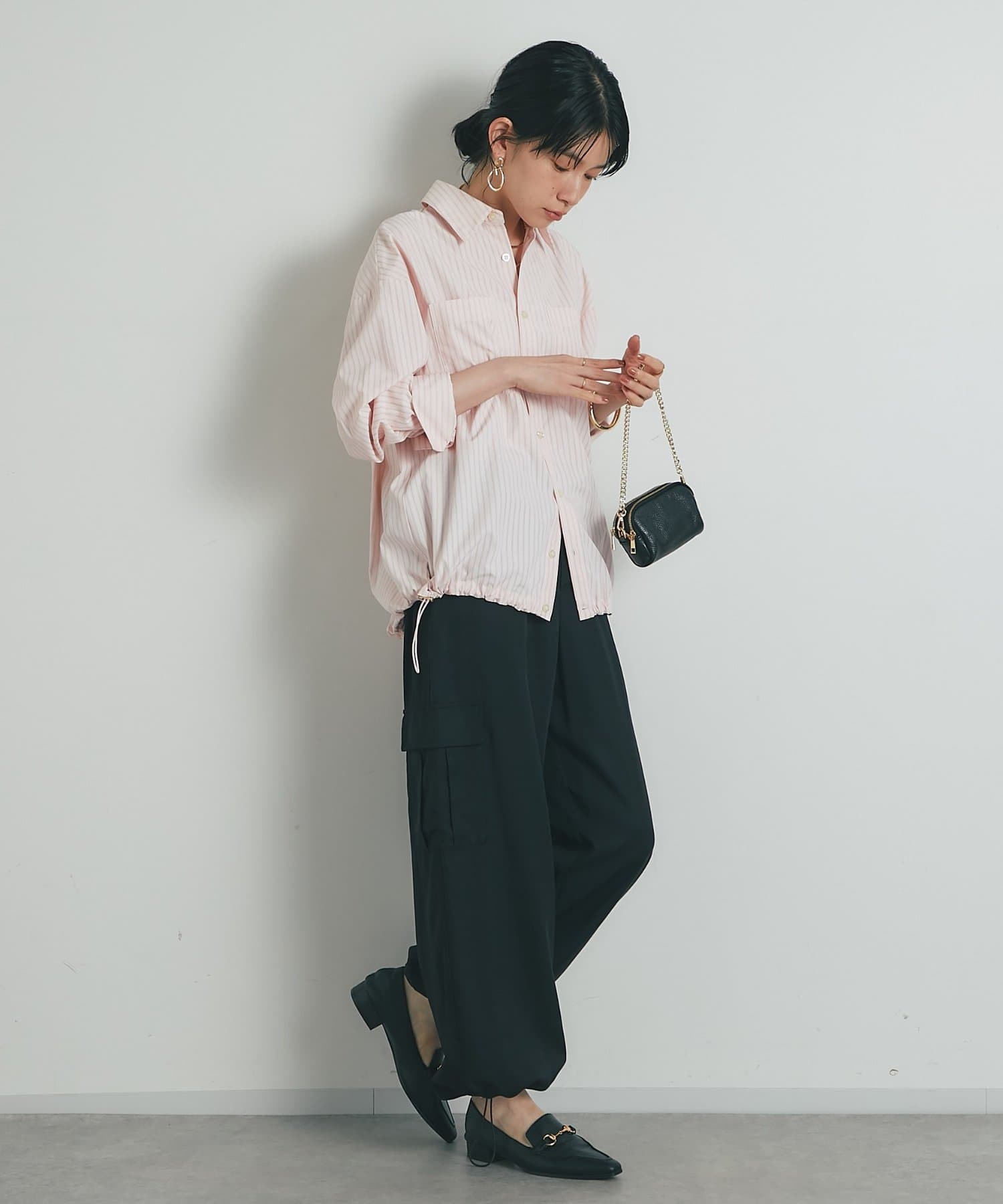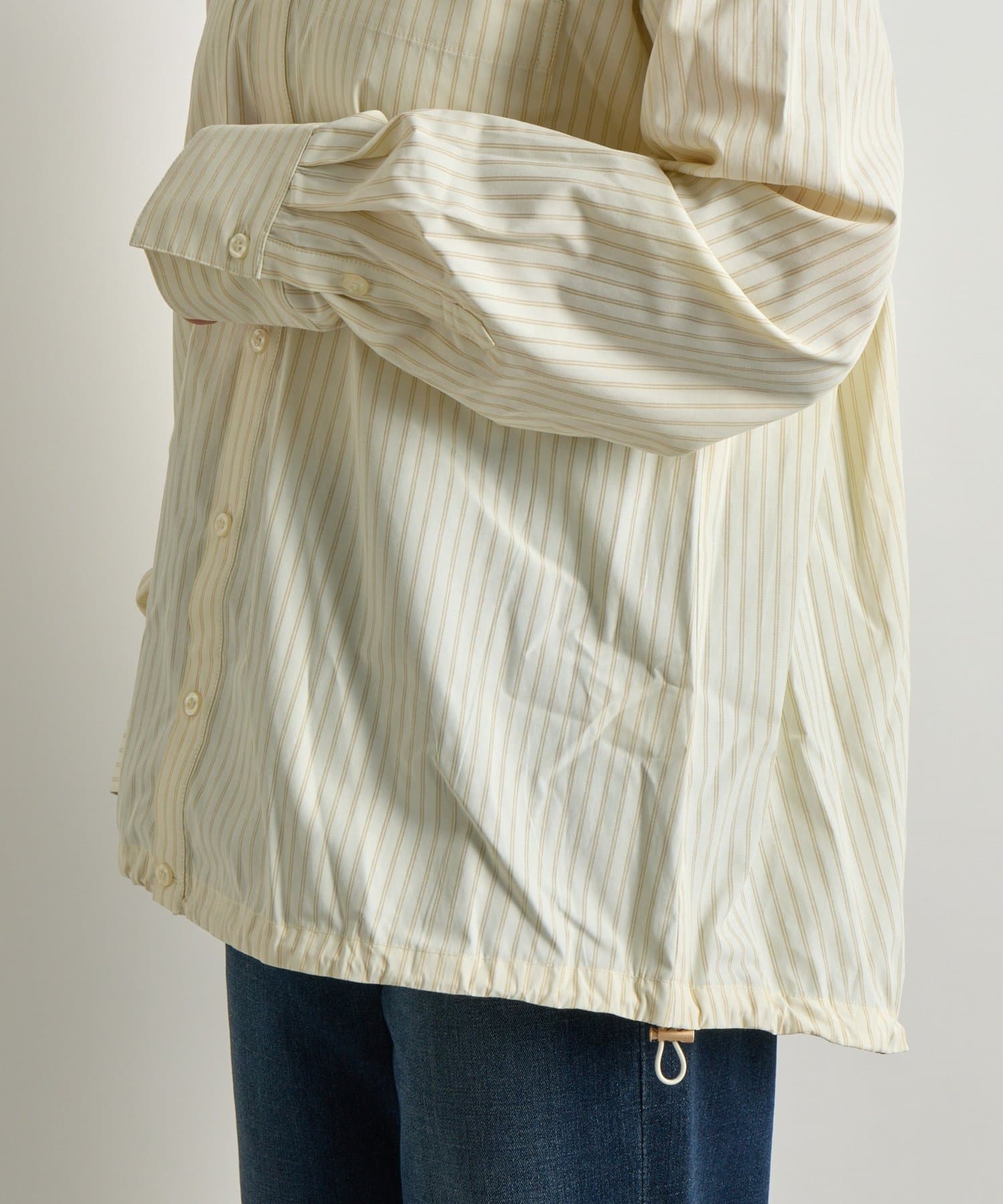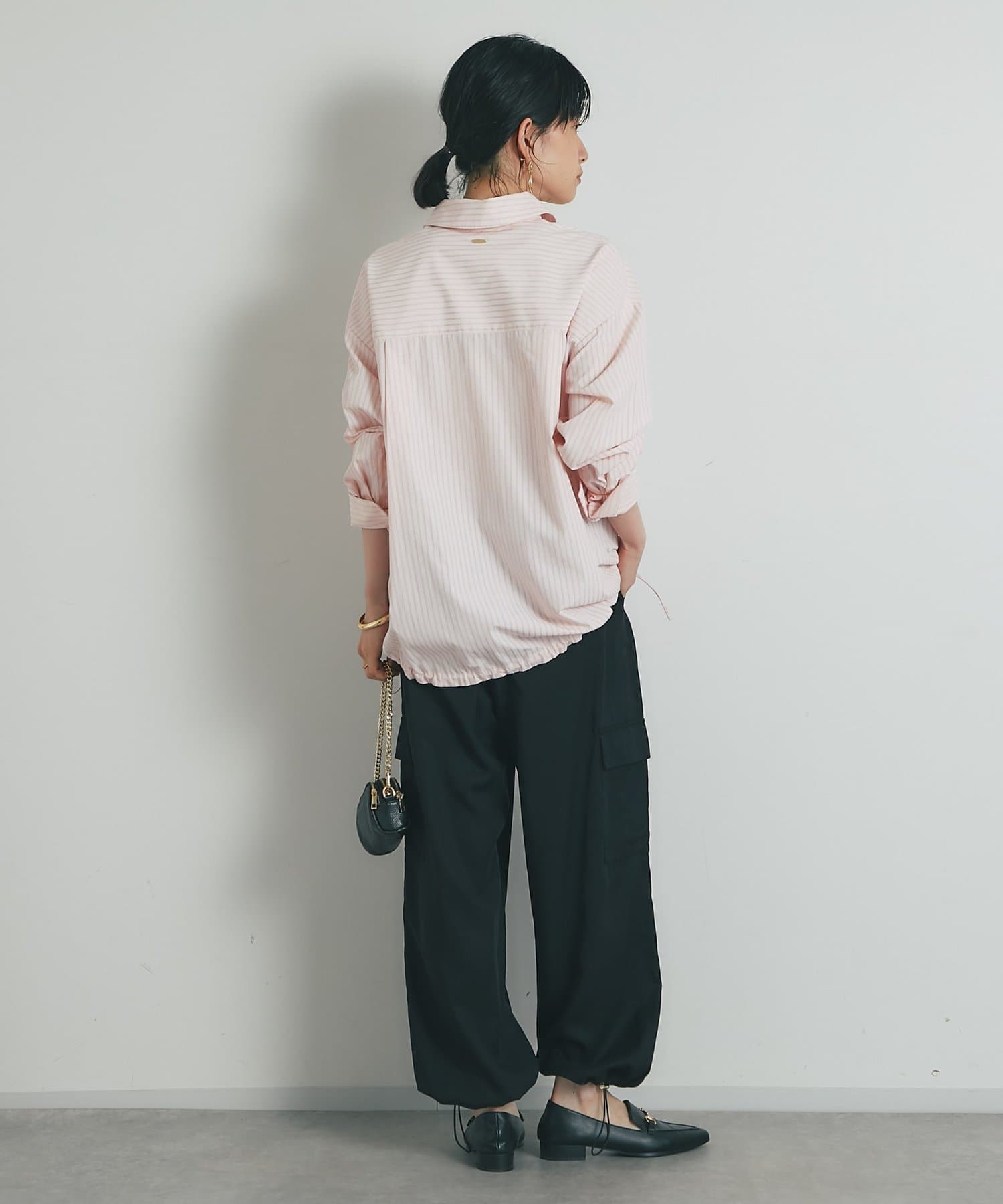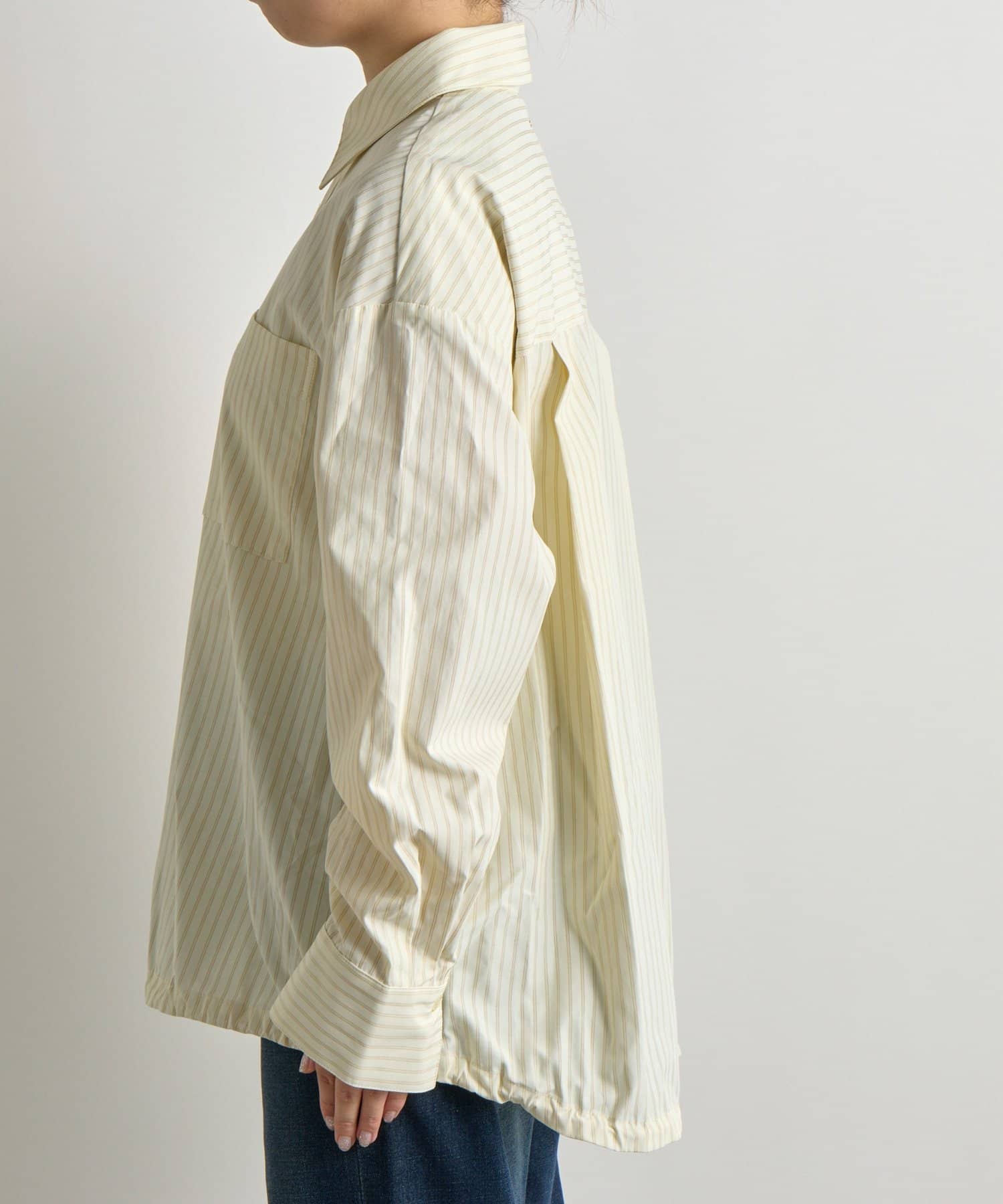 ・フロント裾のドロストを調節し、シルエットアレンジが楽しめるデザインのシャツ。