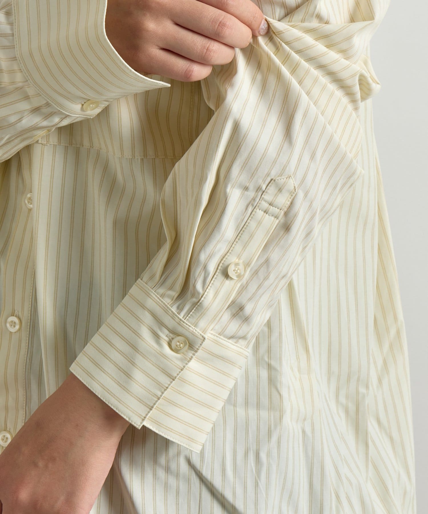綿混のさっぱりとしたストライプ柄生地で仕立てられているので、夏でも軽やかに着用いただけます。