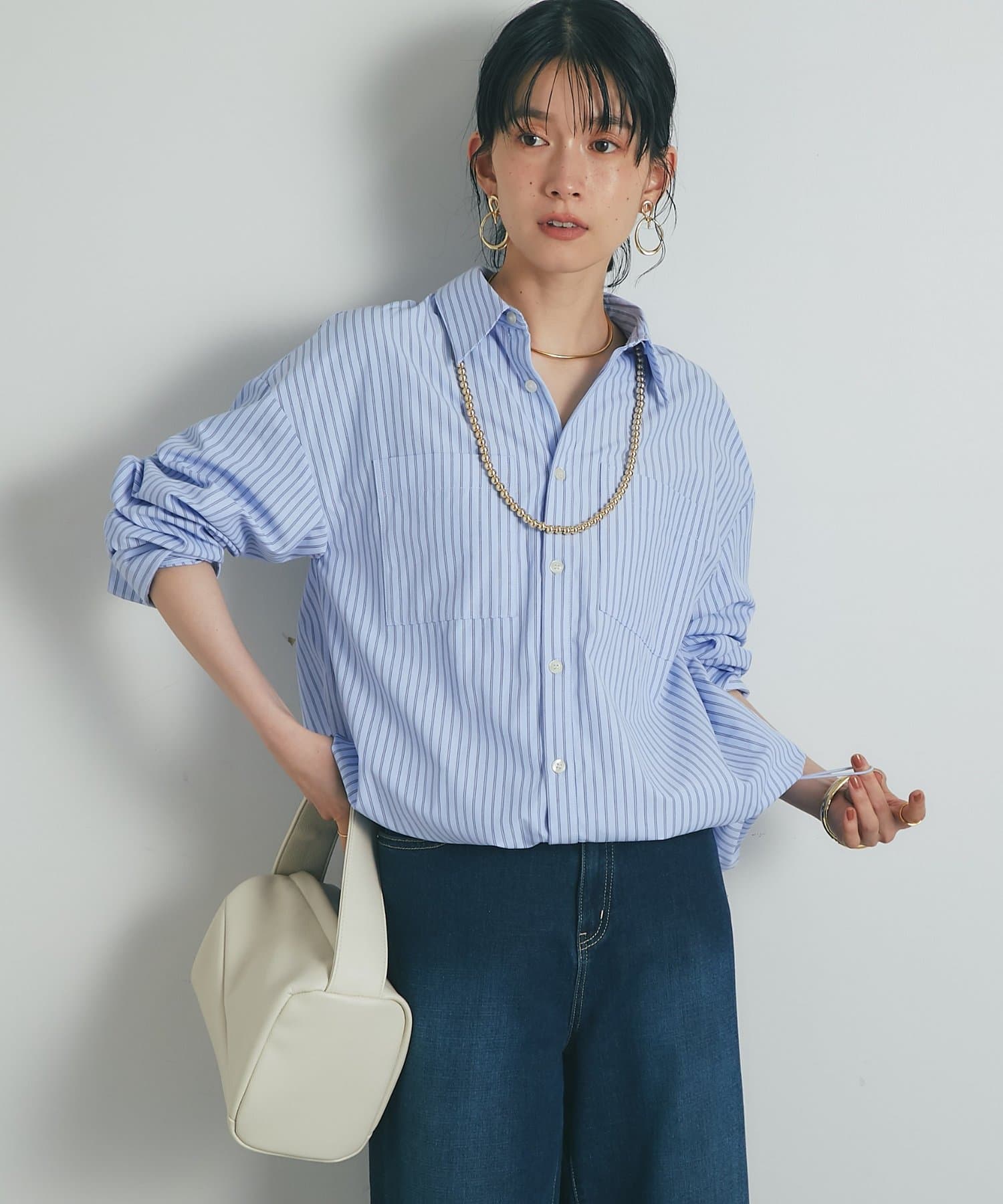 爽やかなカラーリングにストライプ柄生地のシャツで、これからのシーズンにぴったりなアイテムです!