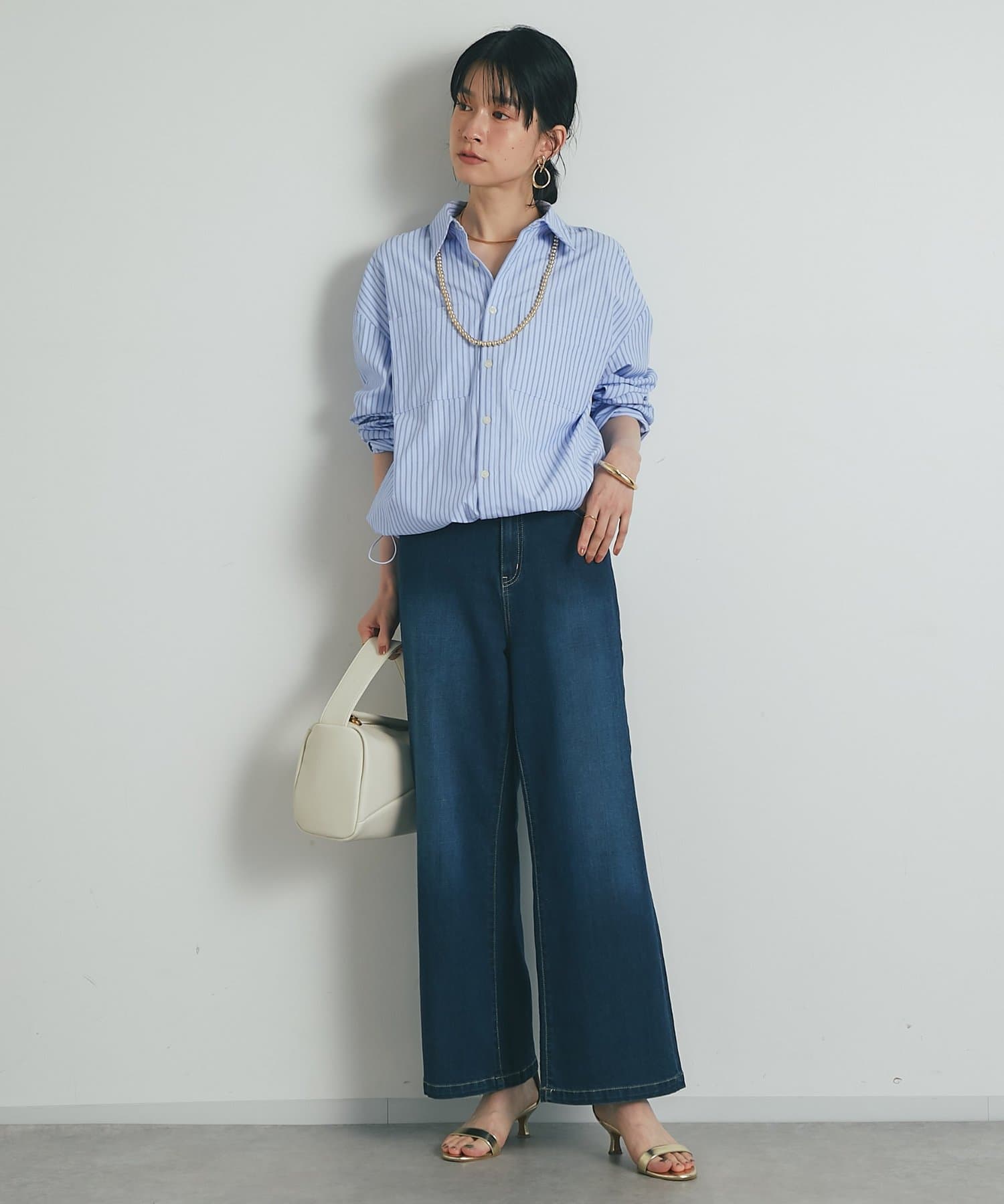 ワイドめデニムパンツに合わせるだけで、こなれ感のある大人カジュアルなコーデにまとめてくれます。