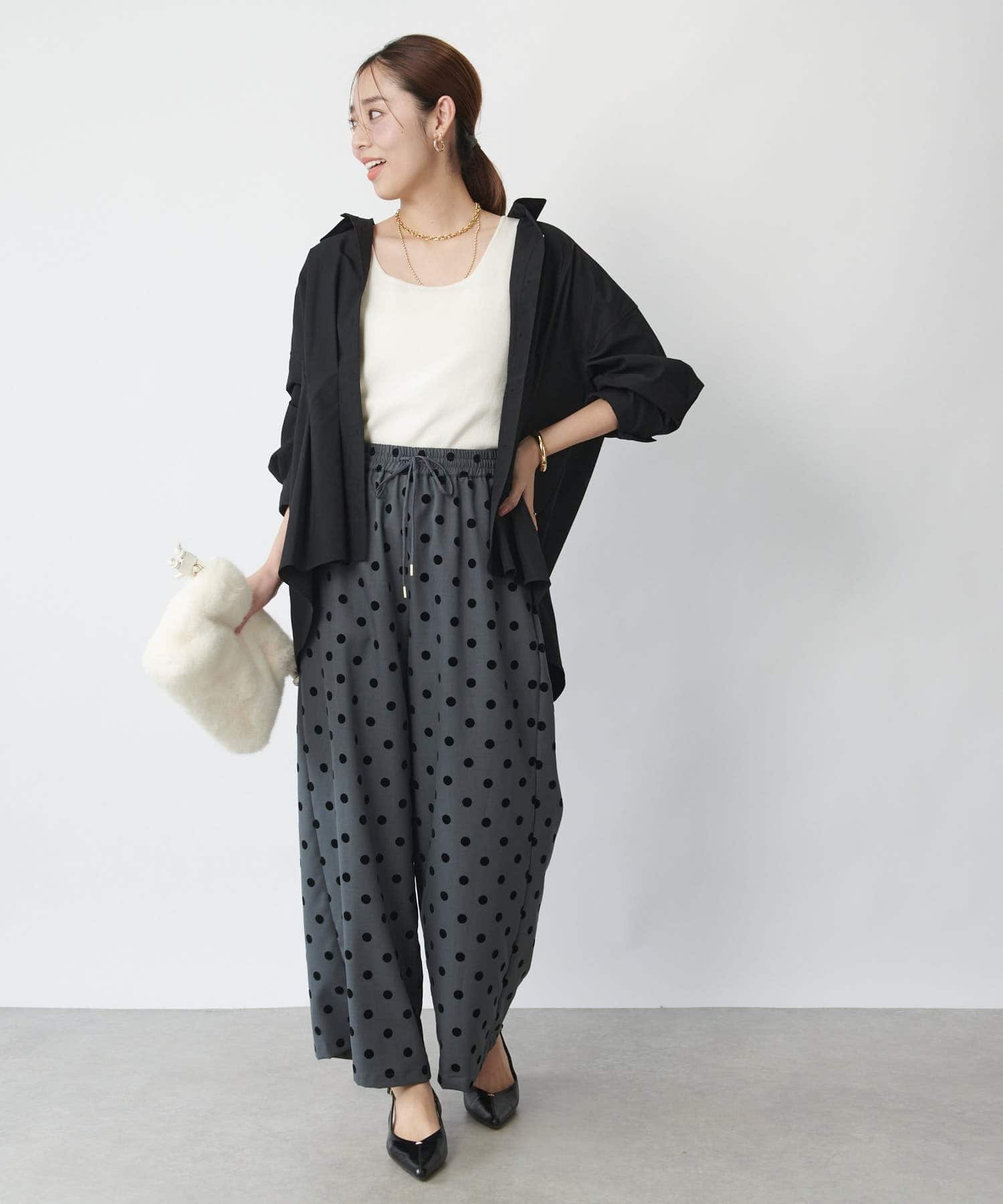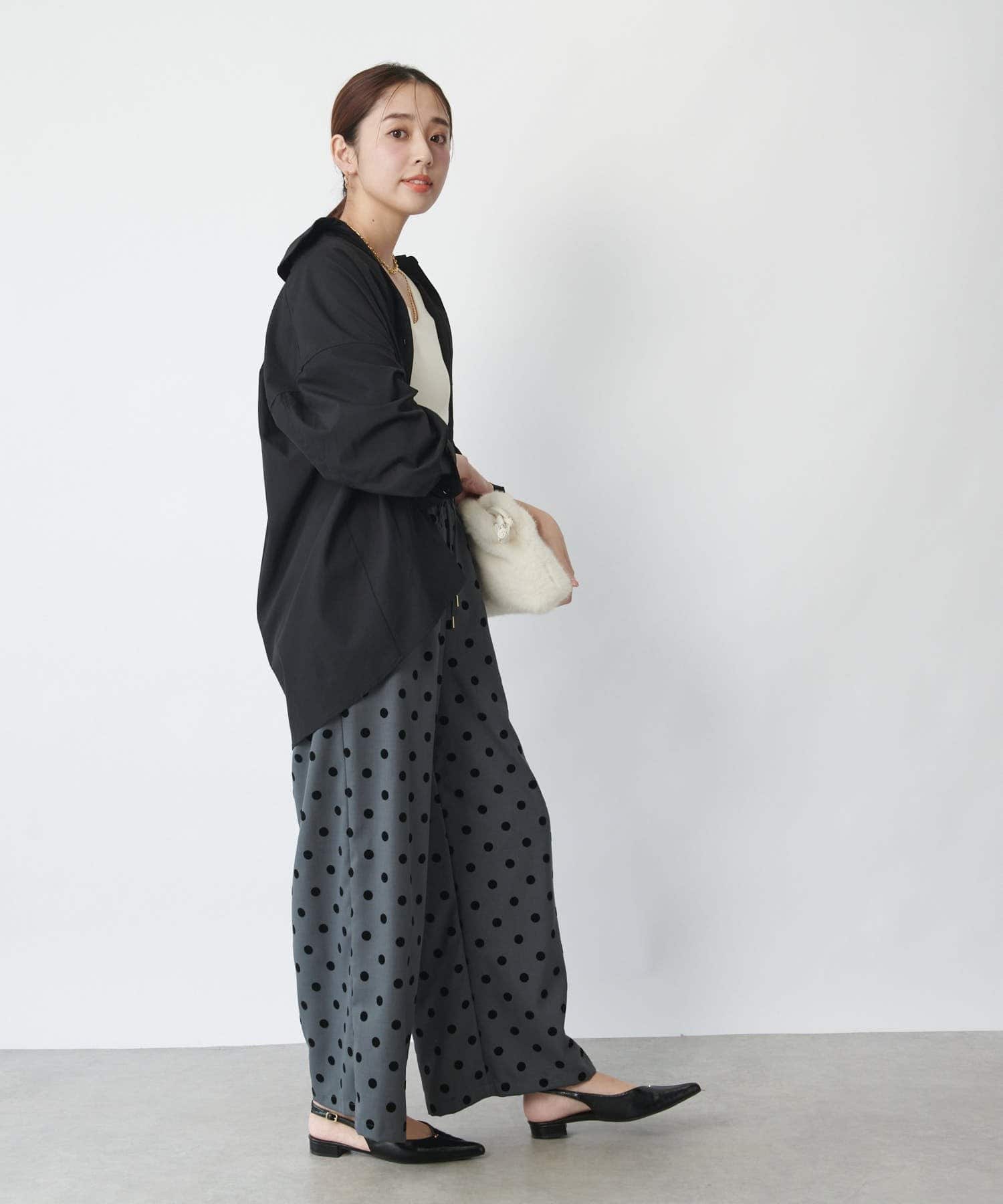 ・一見ベーシックながら、ウエストタックなど細部にこだわったデザインが光ります。