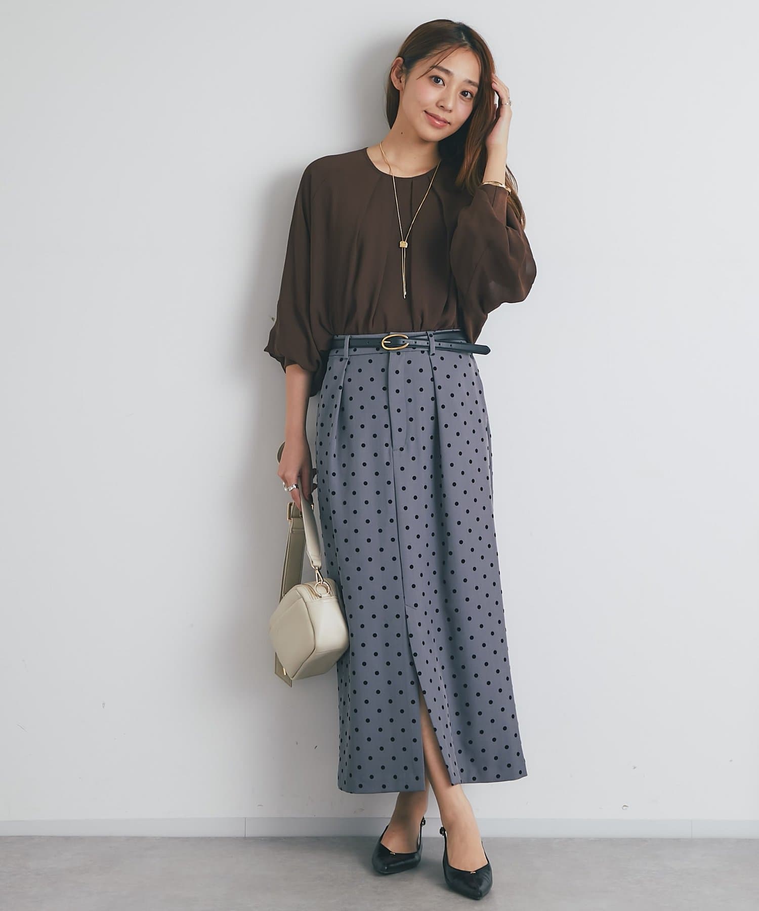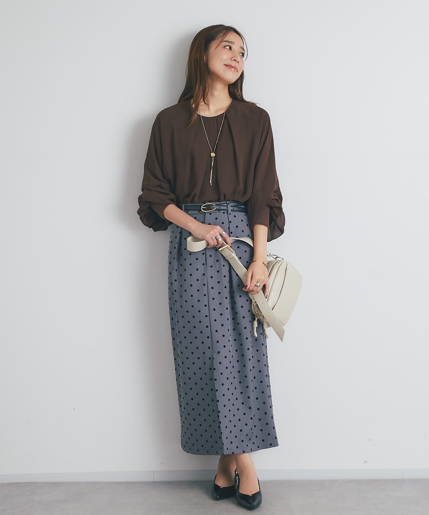 タイトスカートやとろみのあるパンツと合わせてオンスタイルにもおすすめです。
