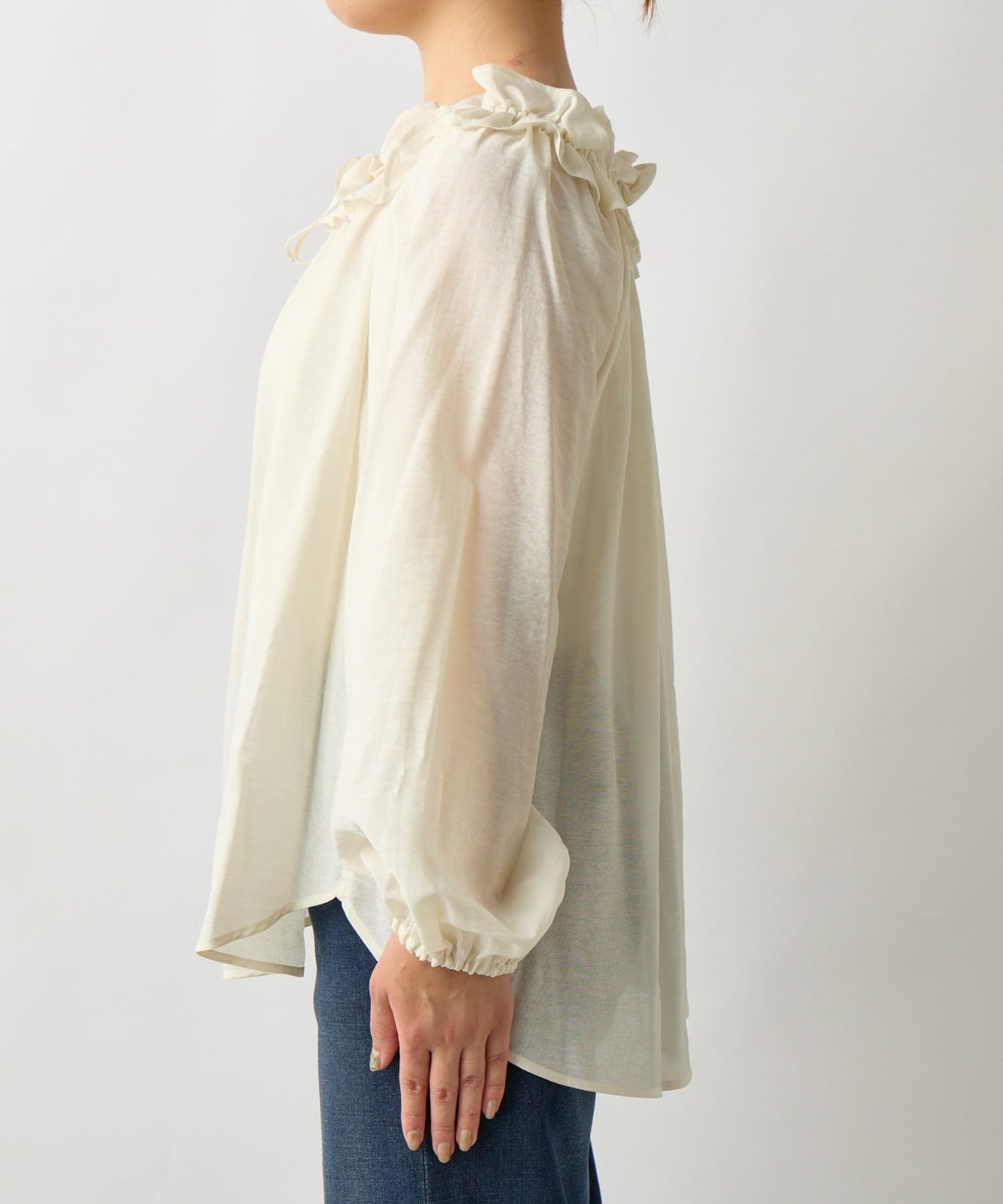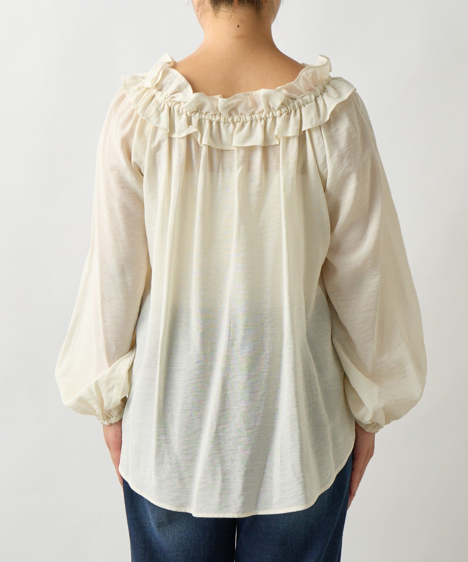 エアリーな透け感と繊細なフリルが目を惹くブラウス